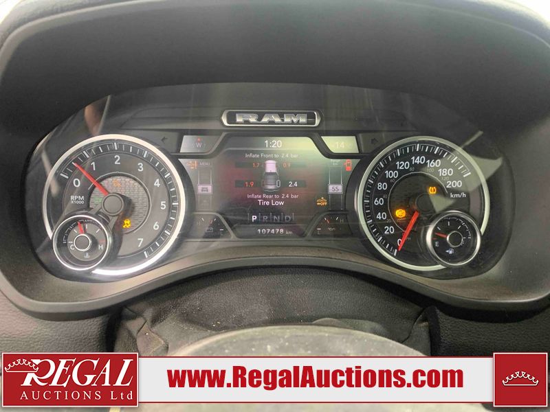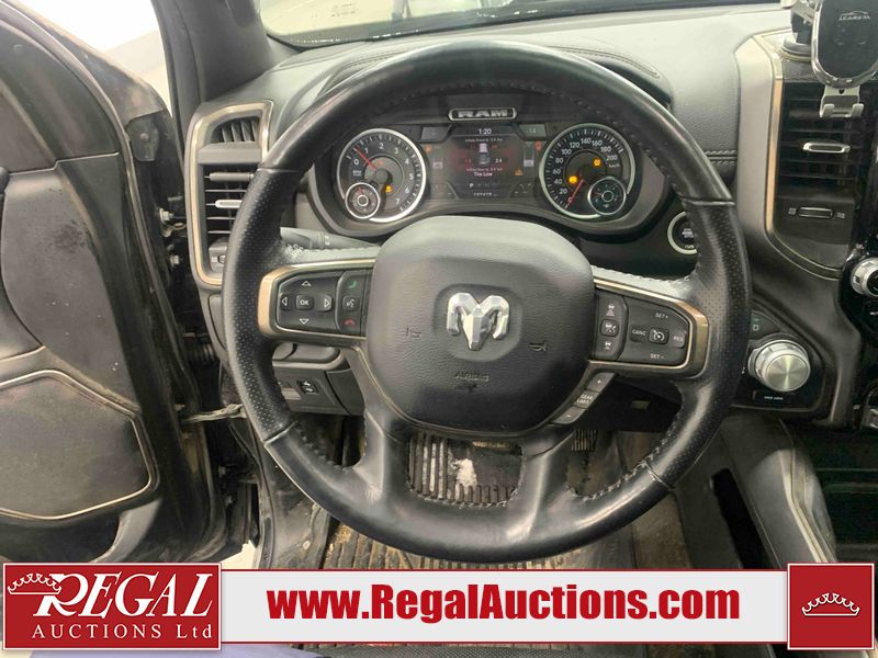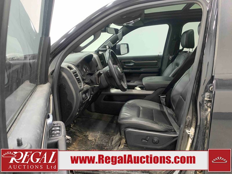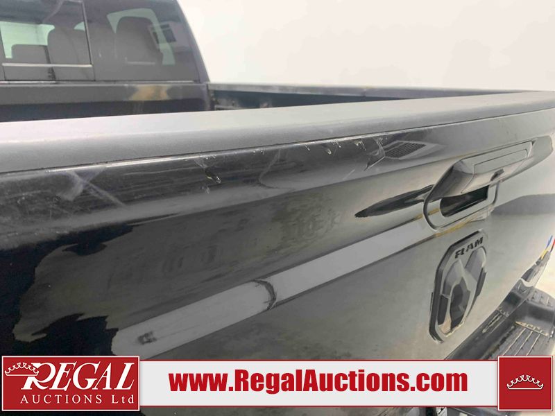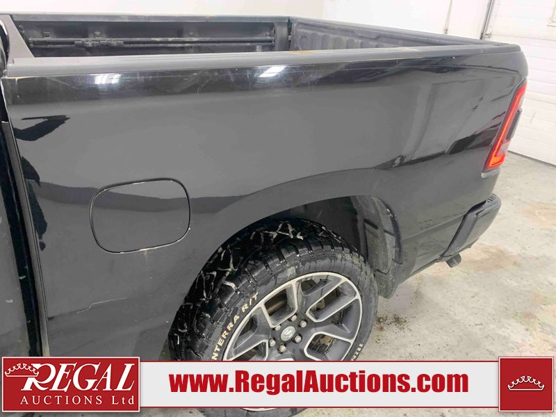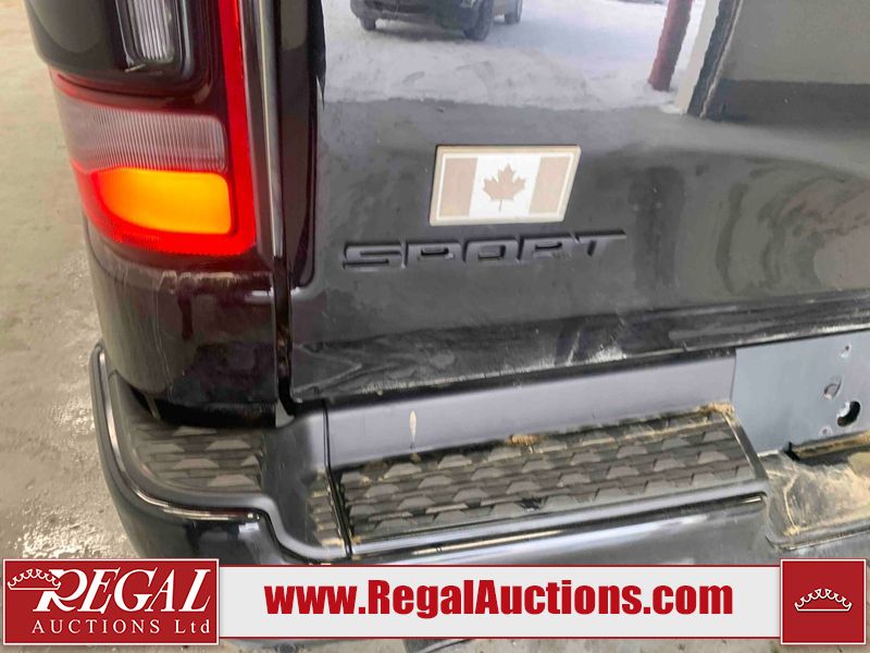 This 2020 RAM 1500 SPORT CREW CAB SWB 4WD 5.7L is powered by a 8 cylinder gasoline engine and an automatic transmission. It is equipped with four wheel drive. The truck has seats for 5 people. The mileage is average considering the truck's age. The vehicle has high value options including leather upholstery, power seats, heated seats, and navigation. The body looks to be in fair condition overall. There are moderate scratches on the tail gate and right rear fender. There are incidental chips on the front bumper, grille, hood, right rear fender, and right front fender. There is minimal dent damage on the left front door. There are scratches on the right rear door and right front door. There are very minor scratches in many areas around the body. There are very minor chips in many areas around the body. The interior looks to be in good condition overall. The carpet is dirty. The windshield and left front window is cracked. All of the tires have lots of tread remaining.
