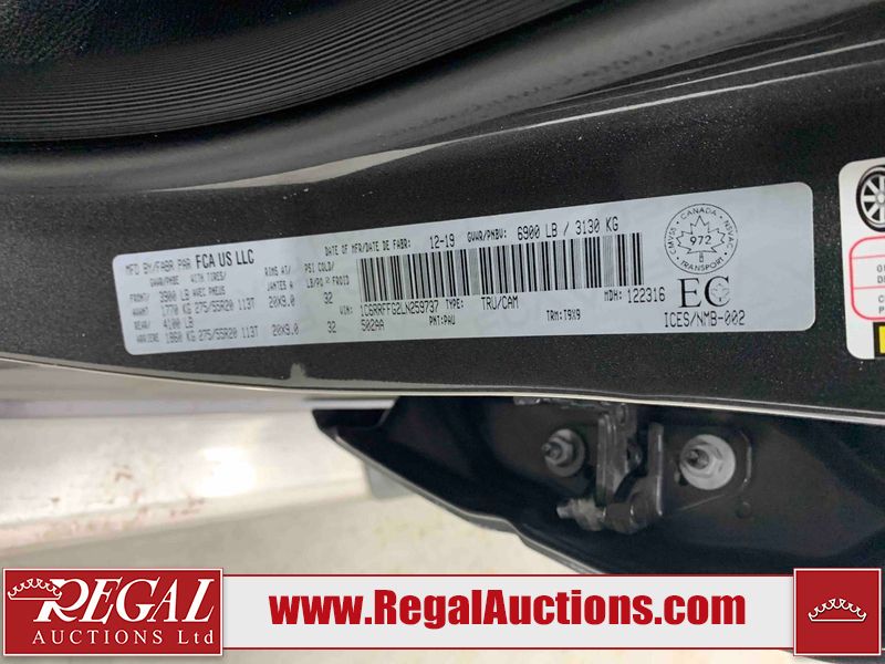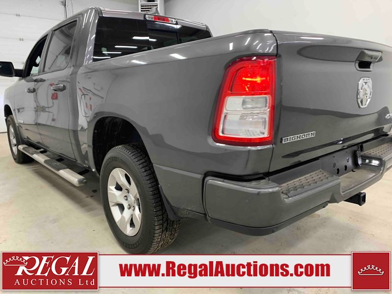 This 2020 RAM 1500 BIG HORN CREW CAB 4WD is powered by a 3.6L 6 cylinder gasoline engine and an automatic transmission. It is equipped with four wheel drive. The truck has seats for 5 people. The truck has high mileage for its age. The vehicle has high value options including power seats, heated seats, navigation, and a backup camera. The body looks to be in good condition overall. There is dent damage on the left rear door. There are very minor chips in many areas around the body. There are very minor scratches in many areas around the body. The interior looks to be in good condition overall. The windshield looks to be in good condition. All of the tires are nearly bald and should be replaced. This truck is being sold by an automotive broker. The vehicle will be sold with the following declarations: Claims Total $5000 - $9999 (See Footnote 1) and Out of Province - BC (See Footnote 2). Footnotes: 1) The vehicle's total recorded insurance claims history is between $5,000 - $9,999. This is the amount of money that was paid out by an insurance company for repairs to cover claims against the vehicle's insurance policy. This information is provided by CarFax. 2) The vehicle's last registered jurisdiction is British Columbia. The purchaser must have the vehicle undergo and pass an Out of Province inspection before it can be registered in Alberta. Regal Auctions Ltd. makes no guarantee or warranty, either express or implied, with respect to the data provided in this report. The information has been provided from the consignor and from sources generally believed to be reliable, however the accuracy of this information cannot be guaranteed by Regal Auctions.
