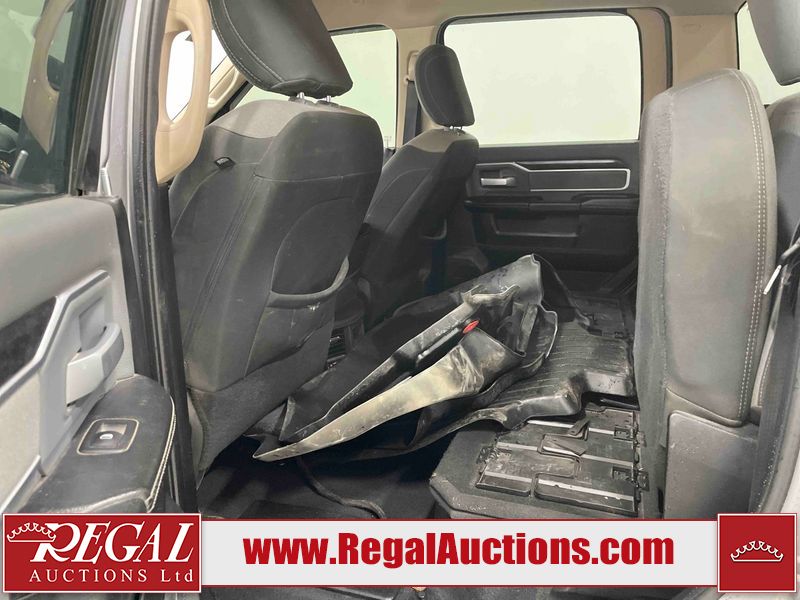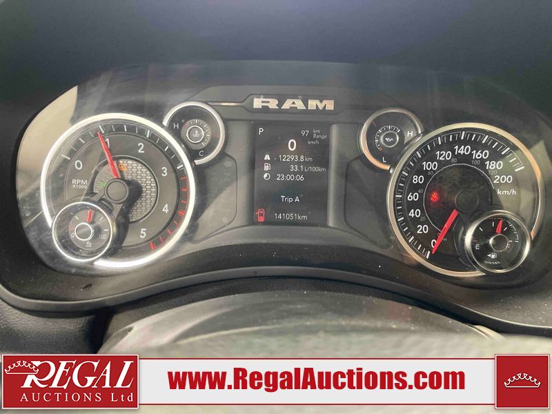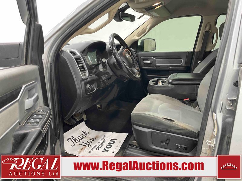This 2020 RAM 3500 BIGHORN CREWB CAB 4WD LWB 6.7L is powered by a turbocharged 8 cylinder diesel engine and an automatic transmission. It is equipped with four wheel drive. The truck has seats for 4 people. The mileage is average considering the truck's age. The vehicle has high value options including power seats and a backup camera. The body looks to be in fair condition overall. There are minimal scratches on the front bumper, hood, left rear fender, rear bumper, tail gate, and right rear fender. There is incidental dent damage on the front bumper and tail gate. There are chips on the grille, hood, roof, left rear door, left rear fender, rear bumper, tail gate, and right rear fender. There are very minor chips in many areas around the body. There are very minor scratches in many areas around the body. The interior looks to be in fair condition overall. The driver's seat is torn. two passenger seats are missing. The windshield is cracked. Windows are tinted front and back as well with the windshield. The driver side mirror is broken. All of the tires have lots of tread remaining.