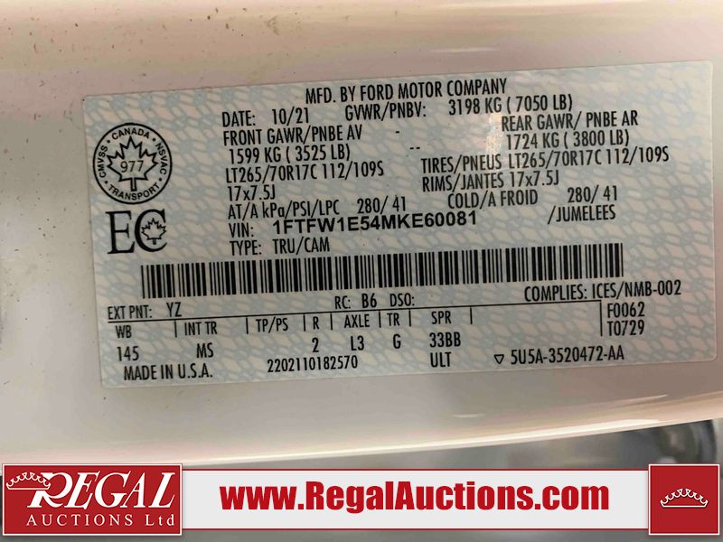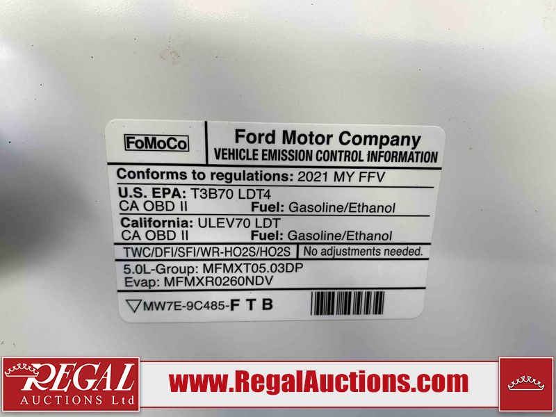This 2021 FORD F-150 XLT 4D CREW CAB 4WD is powered by a 5.0L 8 cylinder gasoline engine and an automatic transmission. It is equipped with four wheel drive. The truck has seats for 6 people. The mileage is average considering the truck's age. The vehicle has high value options including power seats, navigation, and a backup camera. The Check Engine light is on. The body looks to be in good condition overall. There are chips on the front bumper. There is rust on the front bumper. There are very minor chips in many areas around the body. There are very minor scratches on the rear bumper. The interior looks to be in good condition overall. The windshield looks to be in good condition. All of the tires have lots of tread remaining. This truck is being sold by an automotive broker. Regal Auctions Ltd. makes no guarantee or warranty, either express or implied, with respect to the data provided in this report. The information has been provided from the consignor and from sources generally believed to be reliable, however the accuracy of this information cannot be guaranteed by Regal Auctions.