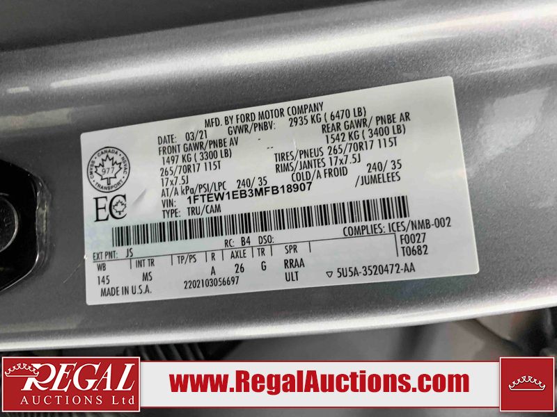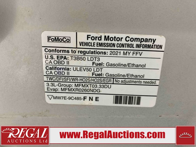 This 2021 FORD F-150 XLT CREW CAB 4WD is powered by a turbocharged 3.3L V6 gasoline engine and an automatic transmission. It is equipped with four-wheel drive. The truck has seats for 6 people. The truck has high mileage for its age. The vehicle has high-value options including a backup camera. The Check Engine light is on. The body looks to be in fair condition overall. The fascia is cracked on the front bumper. There are chips on the hood, roof, left front door, left rear door, and right front door. There are minor scratches on the left rear door and tailgate. There is minimal paint peeling on the right rear fender. There is very minor dent damage on the front bumper. There are very minor chips in many areas around the body. There are very minor scratches in many areas around the body. The interior looks to be in fair condition overall. The driver's seat and doors are torn. The driver's seat is stained. The doors are worn. The windshield looks to be in good condition. All of the tires have lots of tread remaining. This truck is being sold by an automotive broker. The vehicle will be sold with the following declarations: Claims Total $5000 - $9999 (See Footnote 1) and Out of Province - SK (See Footnote 2). Footnotes: 1) The vehicle's total recorded insurance claims history is between $5,000 - $9,999. This is the amount of money that was paid out by an insurance company for repairs to cover claims against the vehicle's insurance policy. This information is provided by CarFax. 2) The vehicle's last registered jurisdiction is Saskatchewan. The purchaser must have the vehicle undergo and pass an Out of Province inspection before it can be registered in Alberta. Regal Auctions Ltd. makes no guarantee or warranty, either express or implied, with respect to the data provided in this report. The information has been provided from the consignor and from sources generally believed to be reliable, however the accuracy of this information cannot be guaranteed by Regal Auctions.