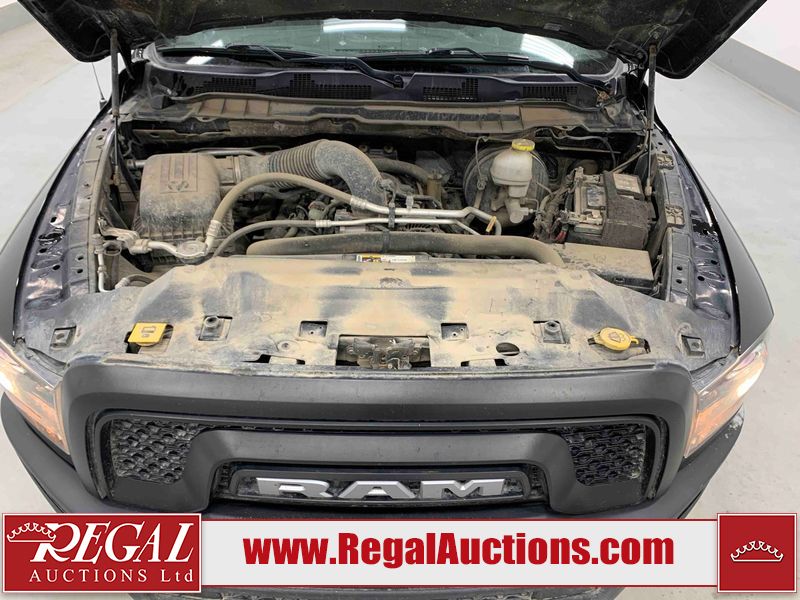 This 2021 RAM 1500 CLASSIC Warlock CREW CAB SWB 4WD 5.7L is powered by a 8 cylinder gasoline engine and an automatic transmission. It is equipped with four wheel drive. The truck has seats for 6 people. The truck has high mileage for its age. The vehicle has high value options including navigation and a backup camera. The Check Engine light is on. The vehicle has some mechanical problems. There is blue smoke coming from the engine. The exhaust is noisy. The body looks to be in rough condition overall. There is extensive paint peeling on the front bumper. There is a fair amount of hail on the hood and roof. There are some scratches on the tail gate and right rear door. There is moderate paint peeling on the right rear door. There are minor chips on the front bumper, hood, left front fender, left rear door, left rear fender, tail gate, right rear fender, and right front door. There are scratches on the front bumper and right front door. There is minor dent damage on the left rear fender and right rear door. There are very minor chips in many areas around the body. There are very minor scratches in many areas around the body. There is very minor dent damage in many areas around the body. The left side side step is broken and in the bed. The interior looks to be in fair condition overall. The driver's seat is stained. There are a fair amount of cigarette burns on the passenger seat. The doors are dirty. The dashboard, driver's seat, and passenger seat are dirty. The carpet is dirty. The windshield is cracked. All of the tires have lots of tread remaining.