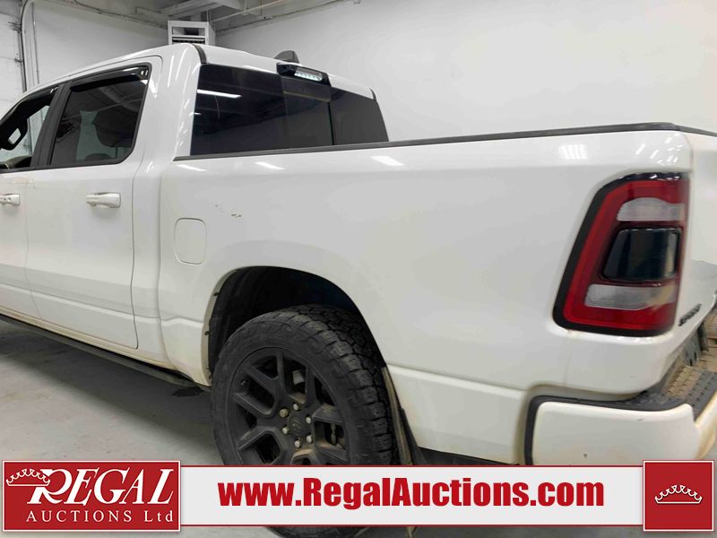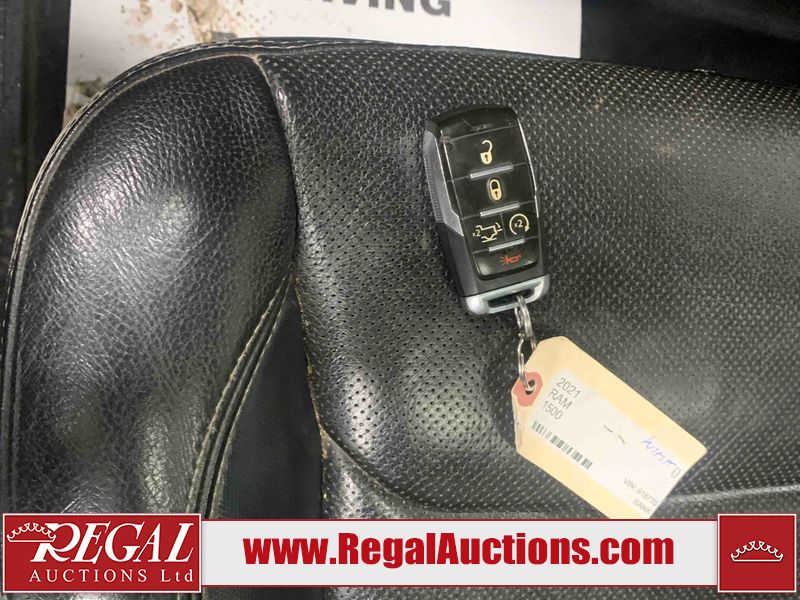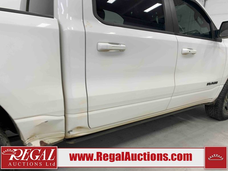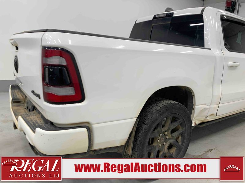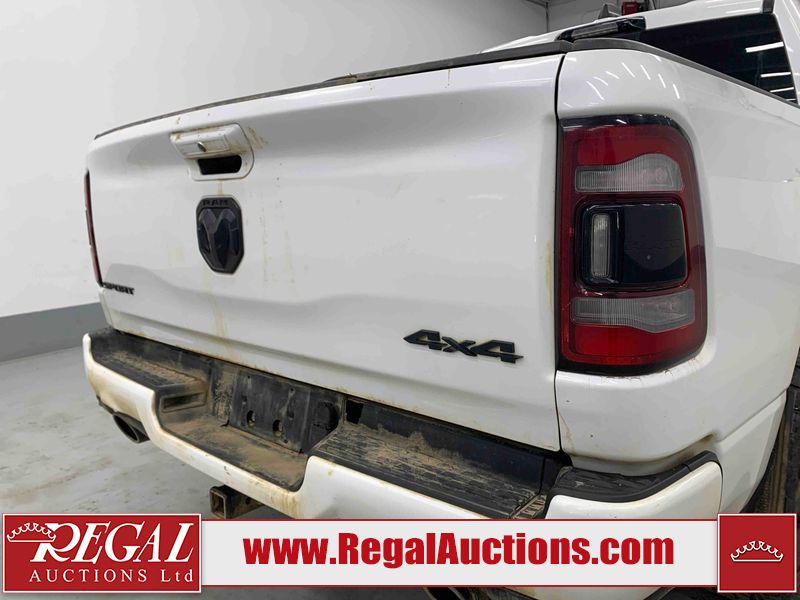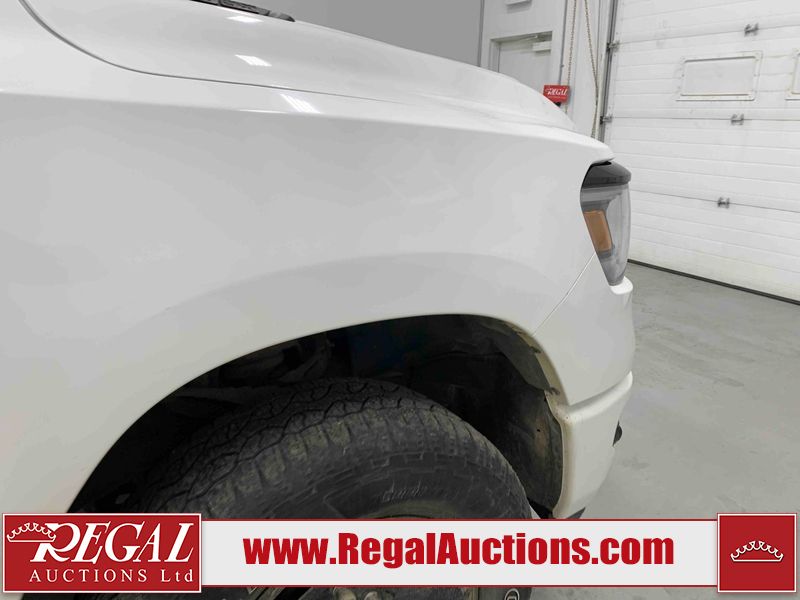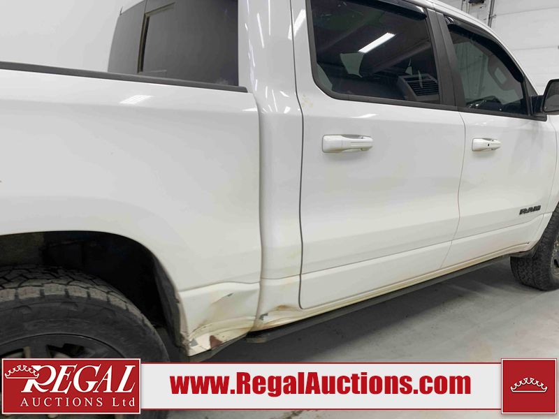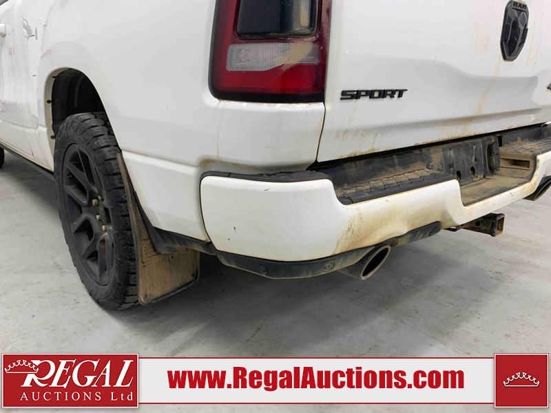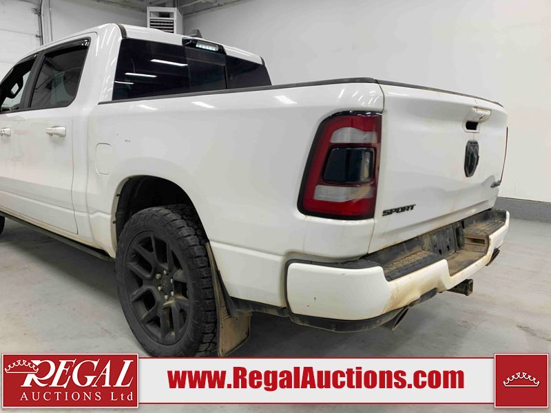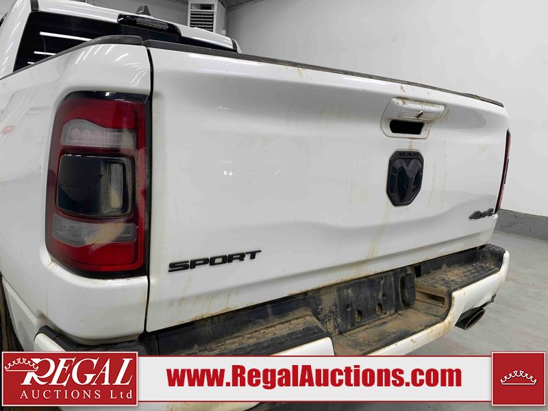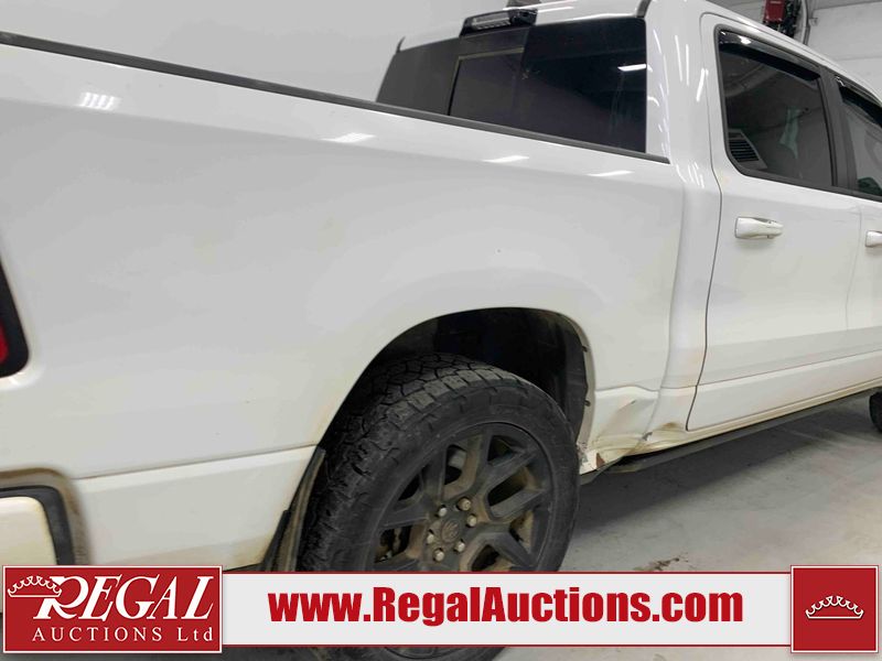 This 2021 RAM 1500 SPORT CREW CAB SWB 4WD 5.7L is powered by a 8 cylinder gasoline engine and an automatic transmission. It is equipped with four wheel drive. The truck has seats for 5 people. The truck has high mileage for its age. The vehicle has high value options including leather upholstery, power seats, heated seats, navigation, and a backup camera. The Check Engine and Tire Pressure lights are on. The vehicle has some mechanical problems. The engine has a top end tick. The body looks to be in fair condition overall. There is considerable dent damage on the right rear fender. There are minimal chips on the front bumper, hood, rear bumper, and tail gate. There are scratches on the front bumper, rear bumper, tail gate, right rear fender, and right rear door. There is paint peeling on the right rear fender and right rear door. There is rust on the right rear fender. There is dent damage on the right rear door. There are very minor chips in many areas around the body. There are very minor scratches in many areas around the body. The interior looks to be in fair condition overall. The driver's seat is worn. The dashboard, driver's seat, passenger seat, rear seats, and doors are dirty. The carpet is dirty. The windshield is damaged. All of the tires have lots of tread remaining.