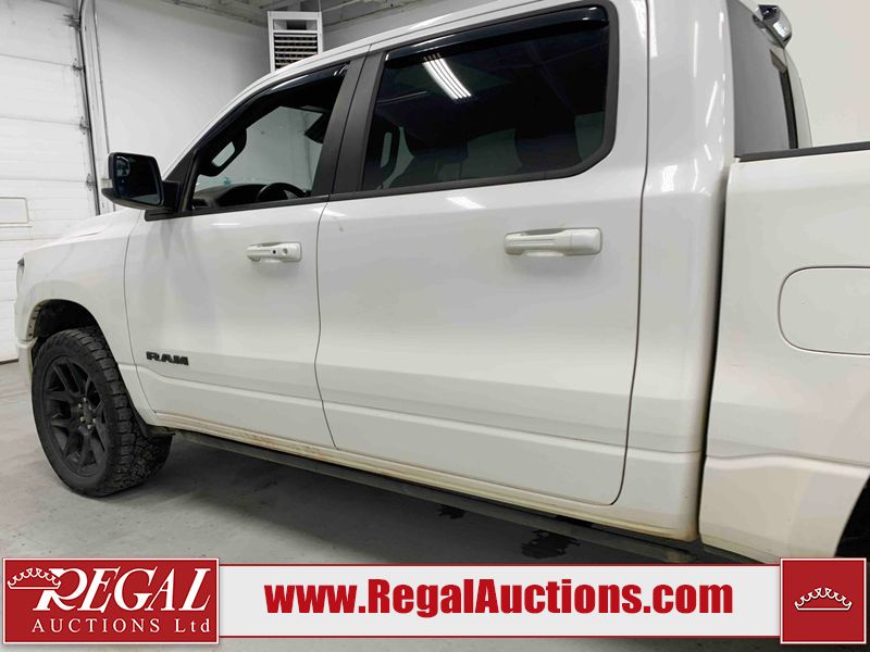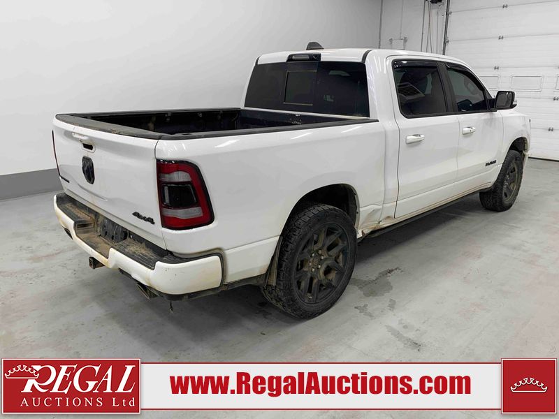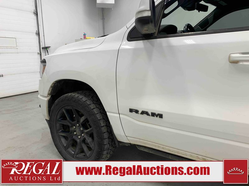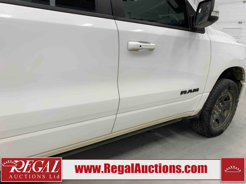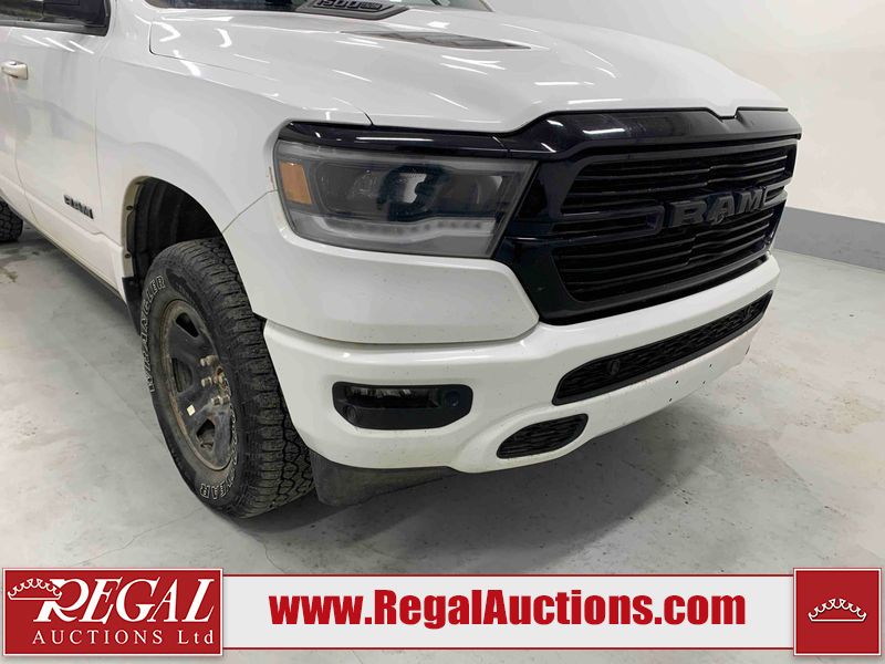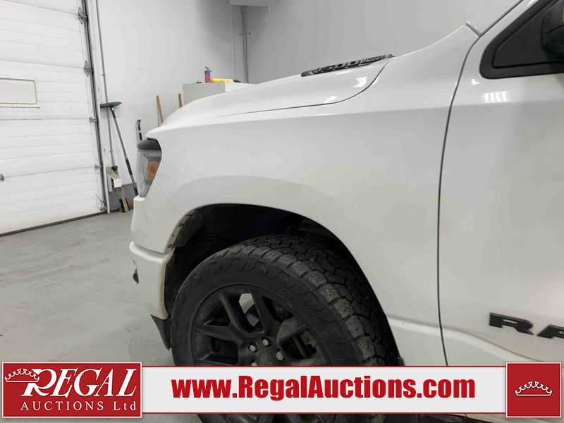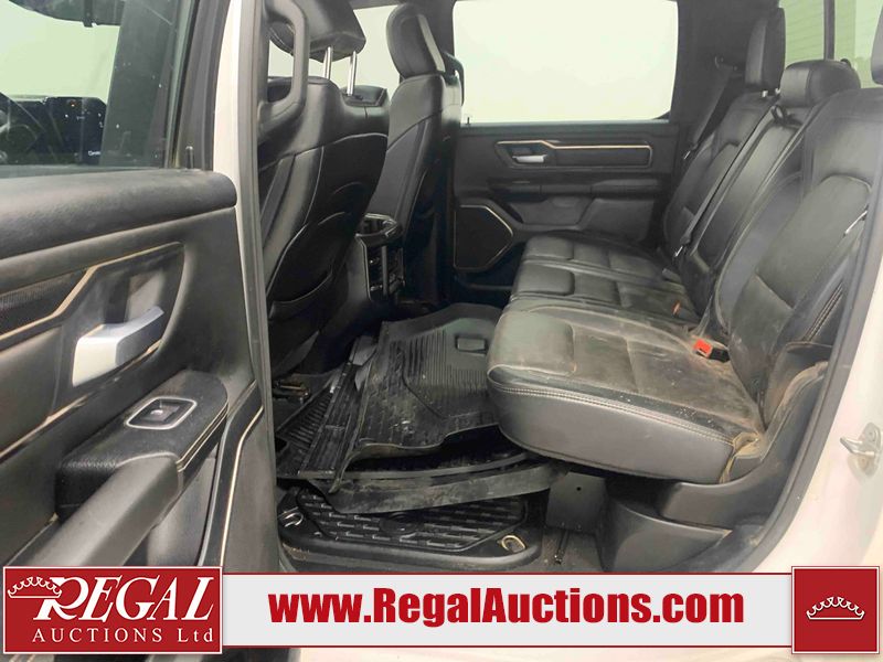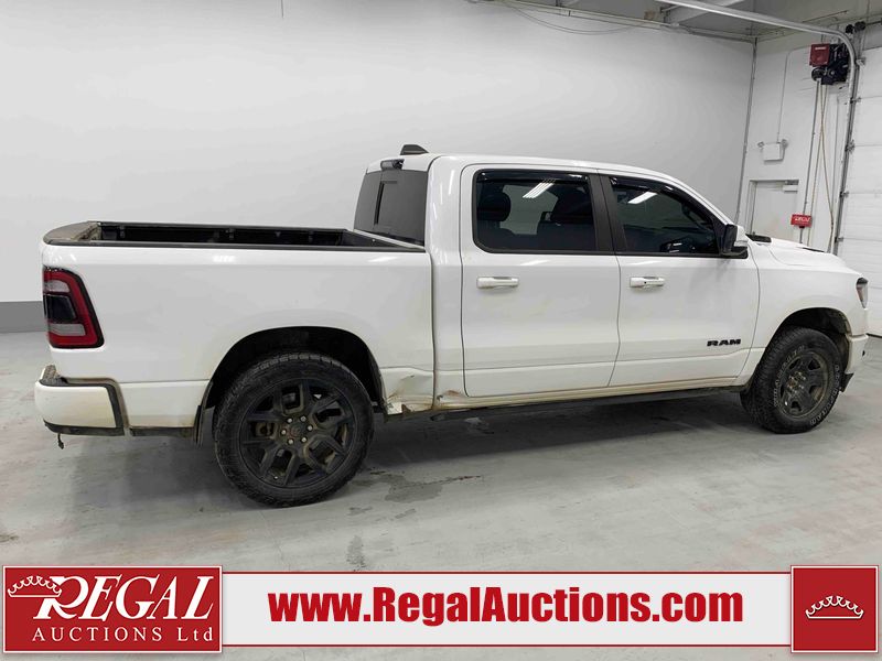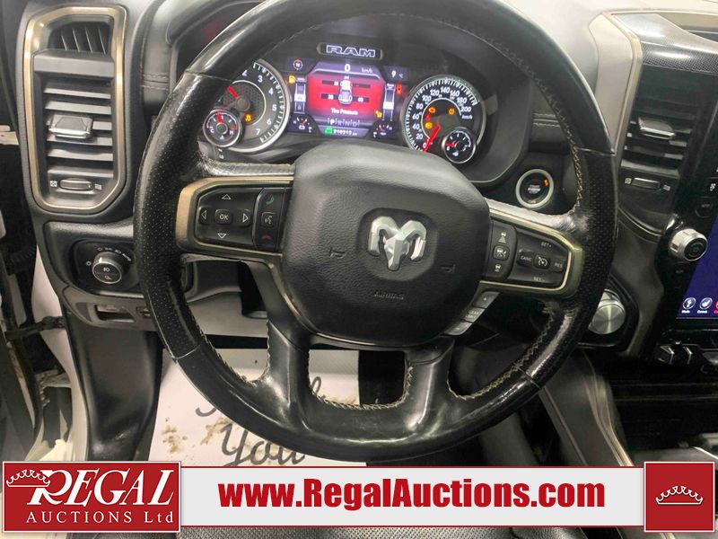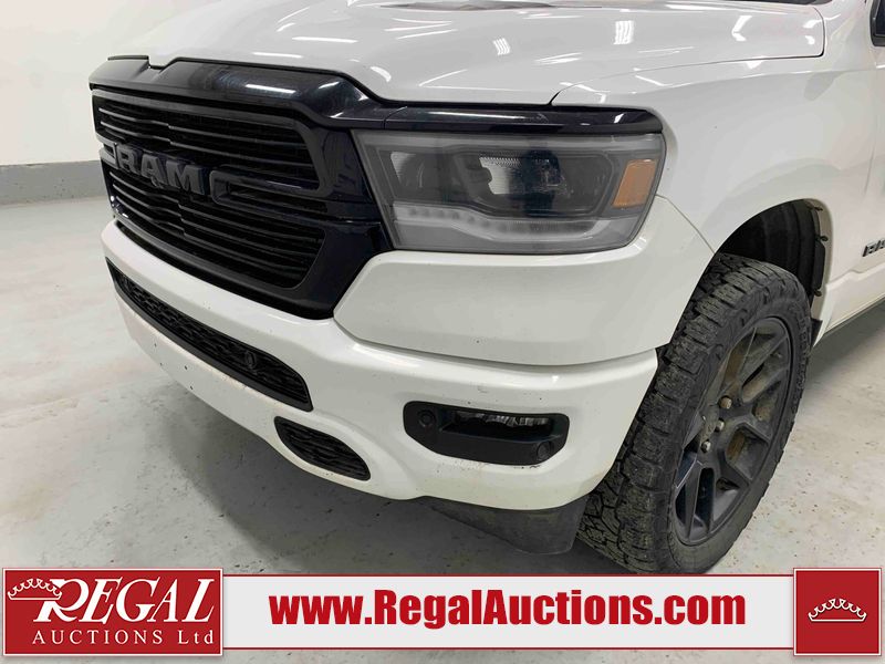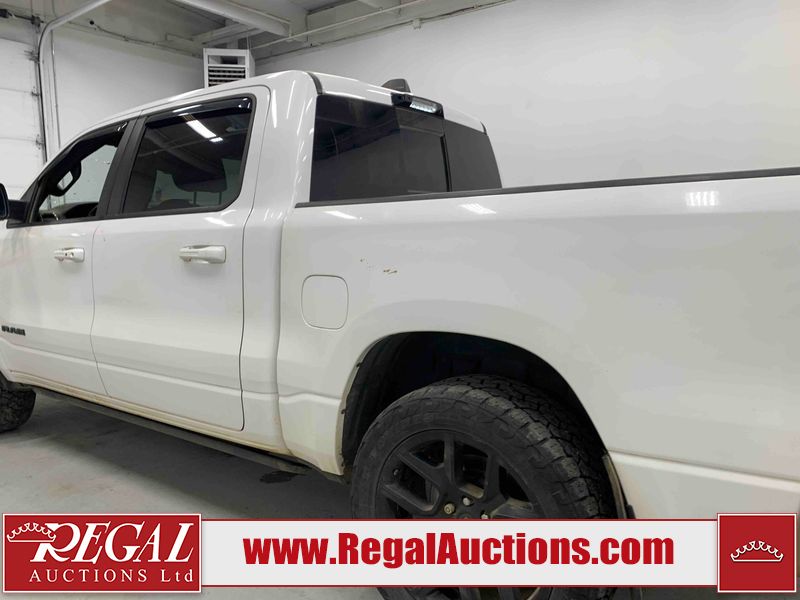 This 2021 RAM 1500 SPORT CREW CAB SWB 4WD 5.7L is powered by a 8 cylinder gasoline engine and an automatic transmission. It is equipped with four wheel drive. The truck has seats for 5 people. The truck has high mileage for its age. The vehicle has high value options including leather upholstery, power seats, heated seats, navigation, and a backup camera. The Check Engine and Tire Pressure lights are on. The vehicle has some mechanical problems. The engine has a top end tick. The body looks to be in fair condition overall. There is considerable dent damage on the right rear fender. There are minimal chips on the front bumper, hood, rear bumper, and tail gate. There are scratches on the front bumper, rear bumper, tail gate, right rear fender, and right rear door. There is paint peeling on the right rear fender and right rear door. There is rust on the right rear fender. There is dent damage on the right rear door. There are very minor chips in many areas around the body. There are very minor scratches in many areas around the body. The interior looks to be in fair condition overall. The driver's seat is worn. The dashboard, driver's seat, passenger seat, rear seats, and doors are dirty. The carpet is dirty. The windshield is damaged. All of the tires have lots of tread remaining.