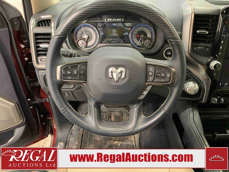 This 2021 RAM 1500 LIMITED CREW CAB SWB 4WD 3.0L is powered by a turbocharged 6 cylinder diesel engine and an automatic transmission. It is equipped with four wheel drive. The truck has seats for 5 people. The truck has low mileage for its age. LIMITED is a very popular trim level. The vehicle has high value options including leather upholstery, power seats, heated seats, navigation, and a backup camera. The body looks to be in fair condition overall. The front bumper is cracked. There are very minor chips in many areas around the body. There are very minor scratches in many areas around the body. The interior looks to be in good condition overall. The carpet is dirty. The windshield is chipped. All of the tires are nearly bald and should be replaced.
