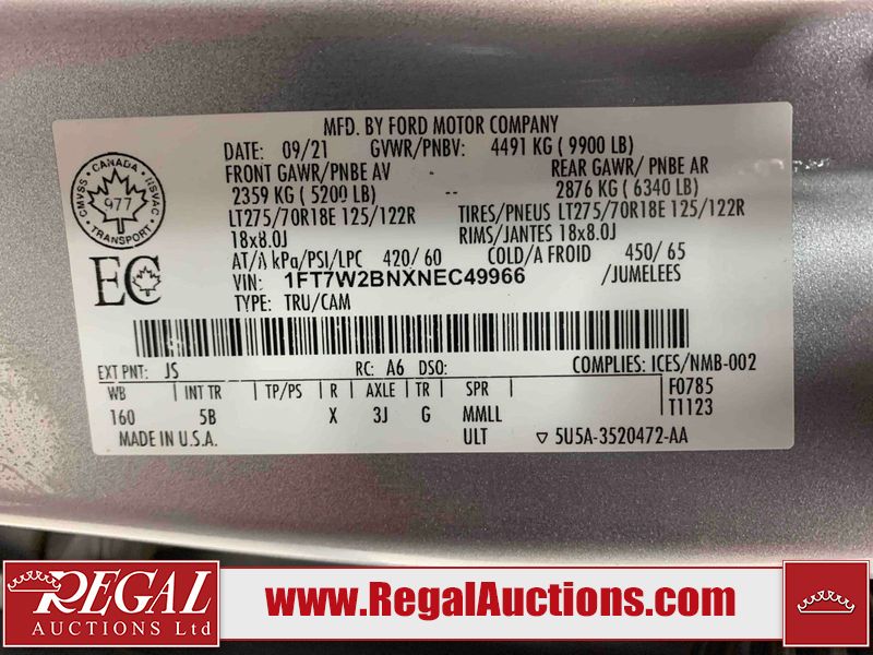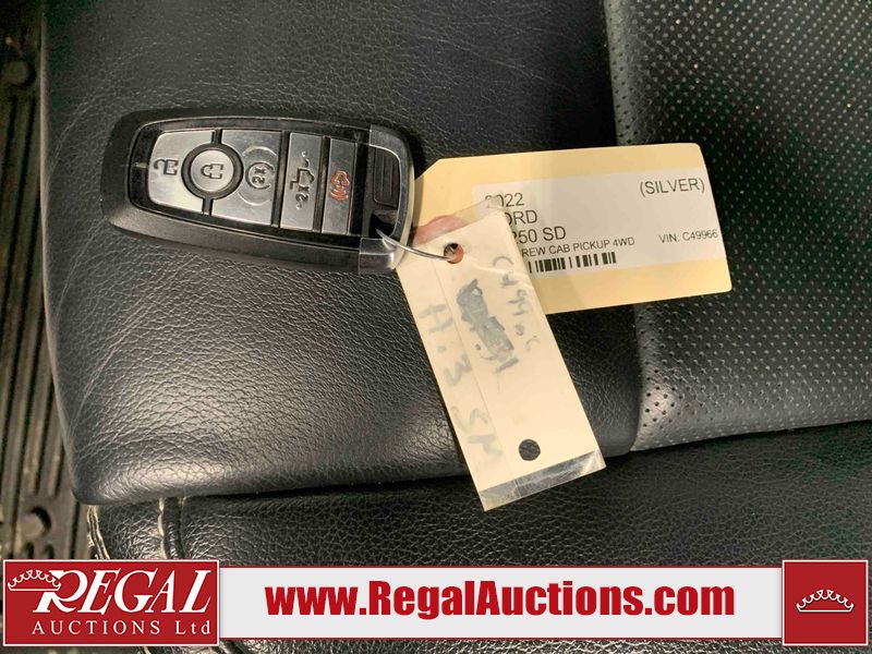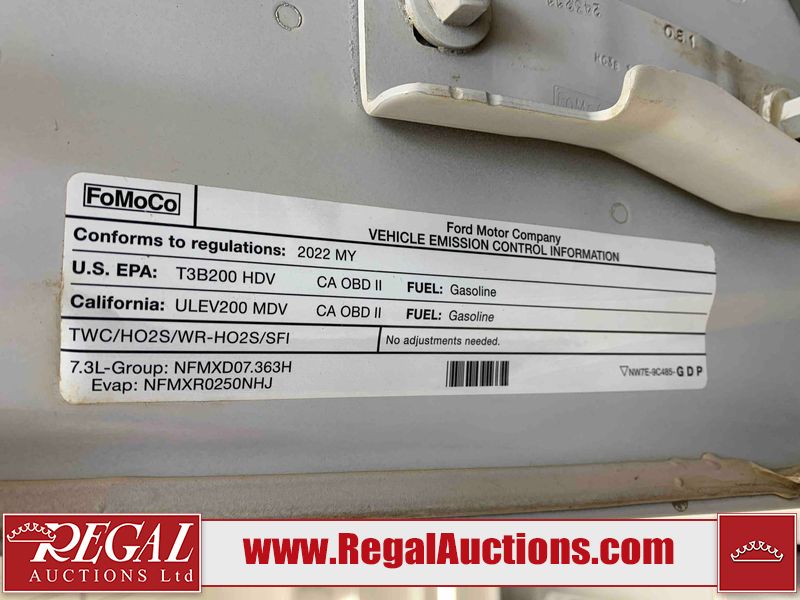 This 2022 FORD F-250 SD LARIAT 4D CREW CAB PICKUP 4WD is powered by a 7.3L V8 gasoline engine and an automatic transmission. It is equipped with four-wheel drive. The truck has seats for 5 people. The truck has high mileage for its age. LARIAT is a very popular trim level. The vehicle has high-value options, including leather upholstery, power seats, heated seats, navigation, and a backup camera. The body looks to be in fair condition overall. There is severe dent damage on the hood. There is slight rust on the front bumper. There are minimal chips on the front bumper, grille, and left rear fender. There are minor scratches on the left front door, left rear door, left rear fender, tail gate, right rear fender, right rear door, and right front door. There is dent damage on the right rear fender. There are very minor chips in a few areas around the body. There are very minor scratches in a few areas around the body. There is very minor dent damage in a few areas around the body. The taillights are broken. The interior looks to be in good condition overall. The windshield looks to be in good condition. The signal lens on the driver mirror is cracked. All of the tires have lots of tread remaining. This truck is being sold by an automotive broker. Regal Auctions Ltd. makes no guarantee or warranty, either express or implied, with respect to the data provided in this report. The information has been provided from the consignor and from sources generally believed to be reliable, however the accuracy of this information cannot be guaranteed by Regal Auctions.