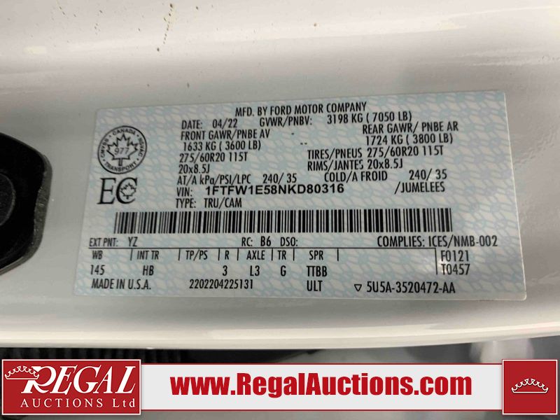 2022 FORD F150 LARIAT SUPERCREW SWB 4WD 5.0L