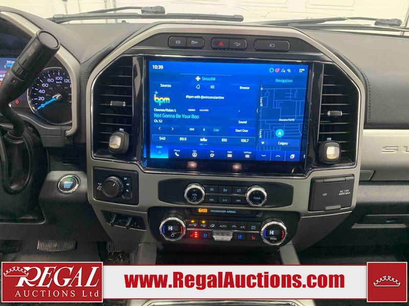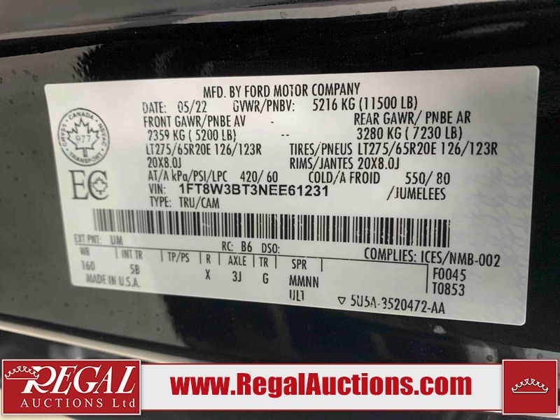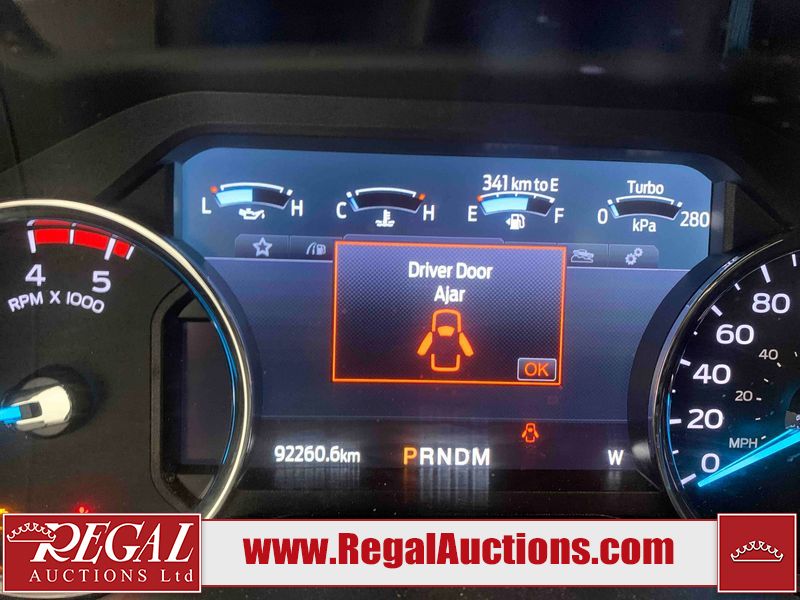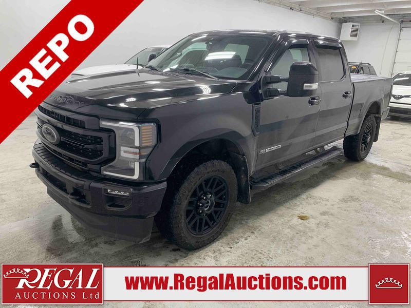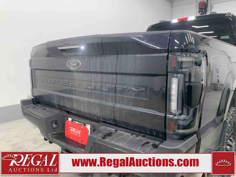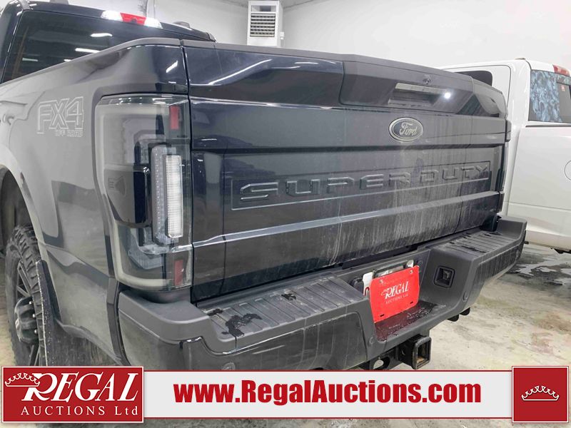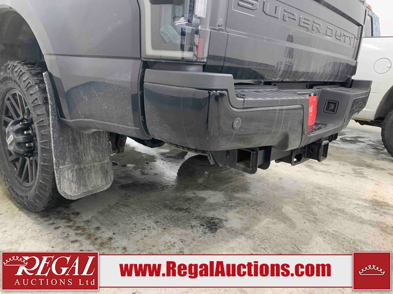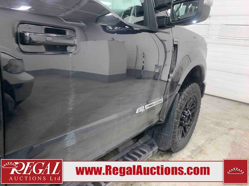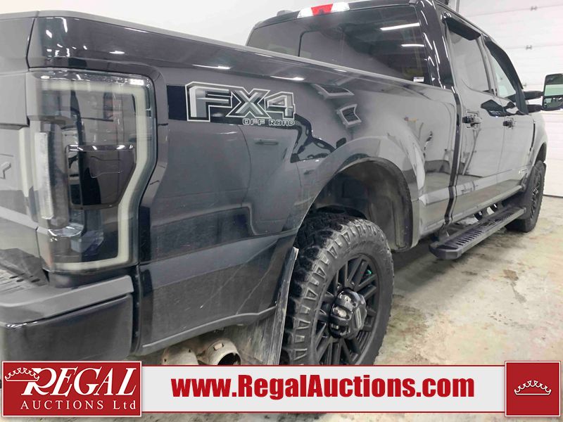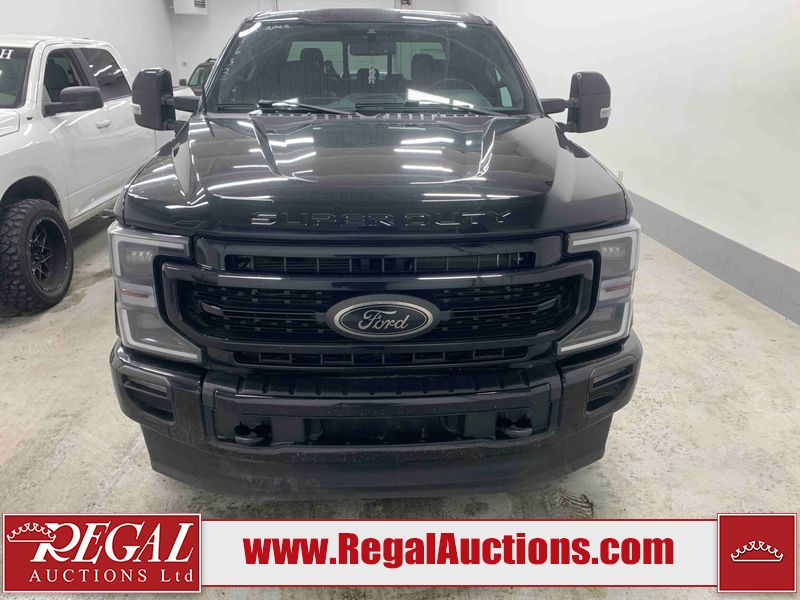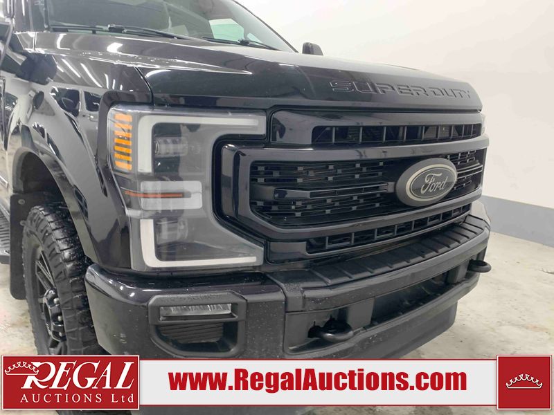 This 2022 FORD SUPER DUTY LARIAT SUPER CAB SWB SRD 4WD 6.7L is powered by a turbocharged 8 cylinder diesel engine and an automatic transmission. It is equipped with four wheel drive. The truck has seats for 5 people. The mileage is average considering the truck's age. LARIAT is a very popular trim level. The vehicle has high value options including leather upholstery, power seats, heated seats, navigation, and a backup camera. The body looks to be in fair condition overall. There are conspicuous chips on the front bumper. There are incidental scratches on the front bumper, left front fender, and rear bumper. There is minor rust on the front bumper and rear bumper. There are chips on the grille, hood, left rear fender, rear bumper, and right rear fender. There are very minor scratches in many areas around the body. There are very minor chips in many areas around the body. The interior looks to be in good condition overall. The front right passenger window is cracked. The windshield is damaged. All of the tires have lots of tread remaining. Aftermarket wheels are installed. The factory set is missing.