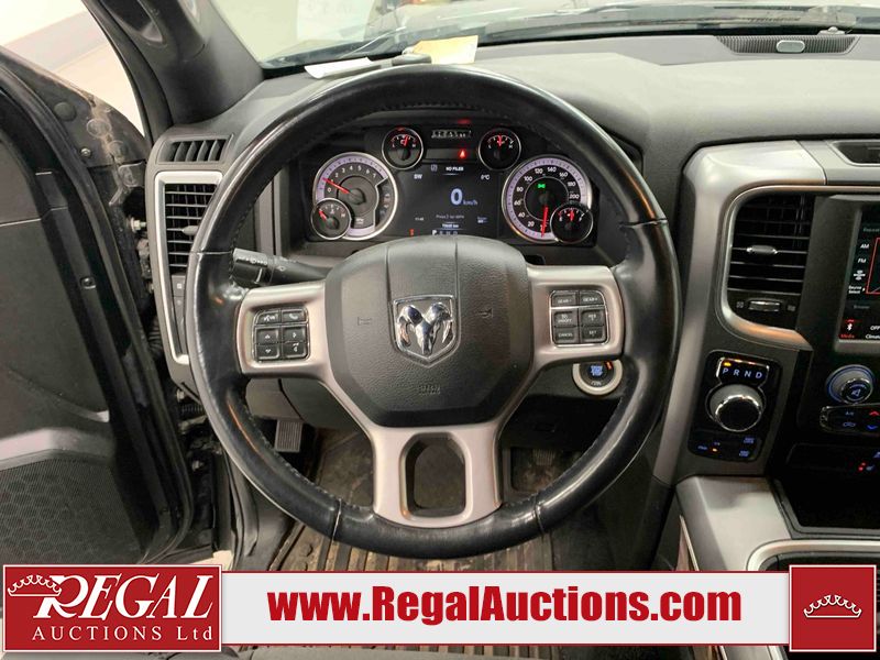 This 2022 RAM 1500 CLASSIC WARLOCK CREW CAB SWB 4WD 3.6L is powered by a 6 cylinder gasoline engine and an automatic transmission. It is equipped with four wheel drive. The truck has seats for 5 people. The mileage is average considering the truck's age. The vehicle has high value options including power seats, heated seats, and a backup camera. The body looks to be in good condition overall. There are minimal chips on the hood. There are incidental scratches on the tail gate. There are very minor chips in many areas around the body. There are very minor scratches in many areas around the body. The interior looks to be in good condition overall. The carpet is dirty. The windshield is cracked. The tires are all worn.