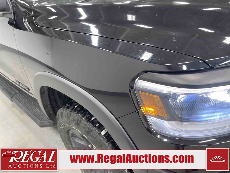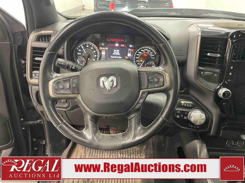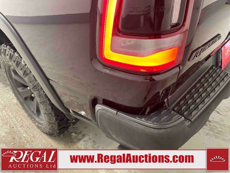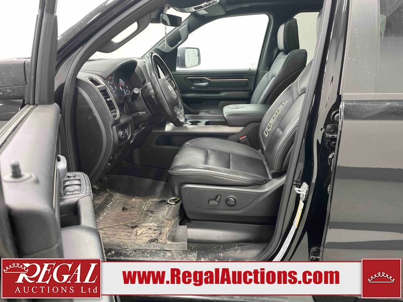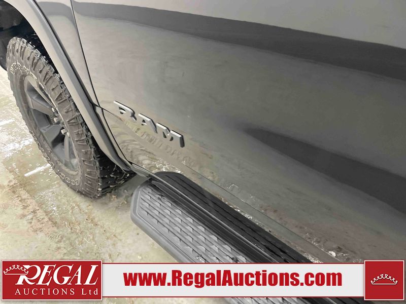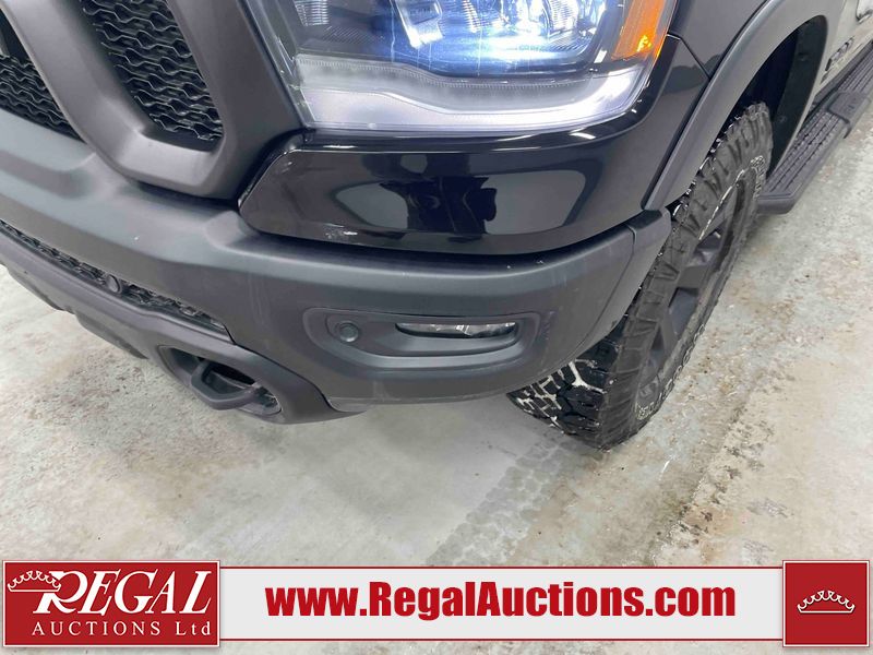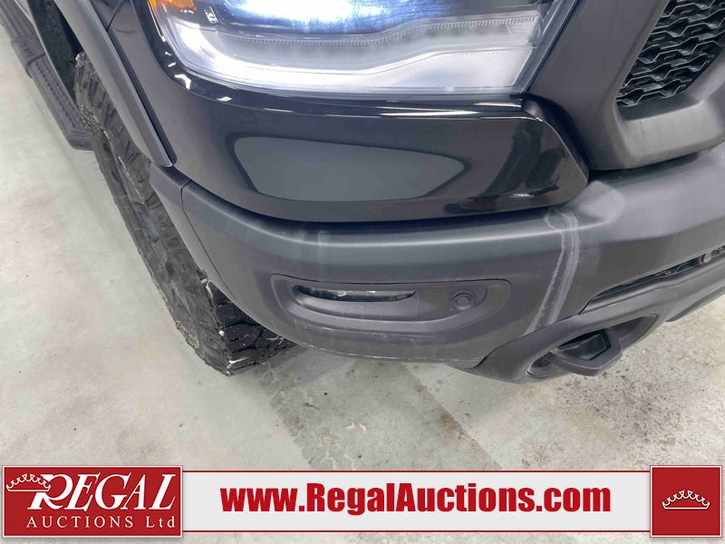This 2022 RAM 1500 REBEL CREW CAB SWB 4WD 5.7L is powered by a 8 cylinder gasoline engine and an automatic transmission. It is equipped with four wheel drive. The truck has seats for 5 people. The truck has low mileage for its age. The vehicle has high value options including leather upholstery, power seats, heated seats, navigation, and a backup camera. The ABS, Brake system, Stability Control, and Forward Collision lights are on. The body looks to be in good condition overall. There are scratches on the front bumper and right rear door. There are very minor chips in many areas around the body. There are very minor scratches in many areas around the body. The interior looks to be in fair overall condition. The driver's seat is worn. The carpet is dirty. The windshield is chipped. All of the tires have lots of tread remaining.