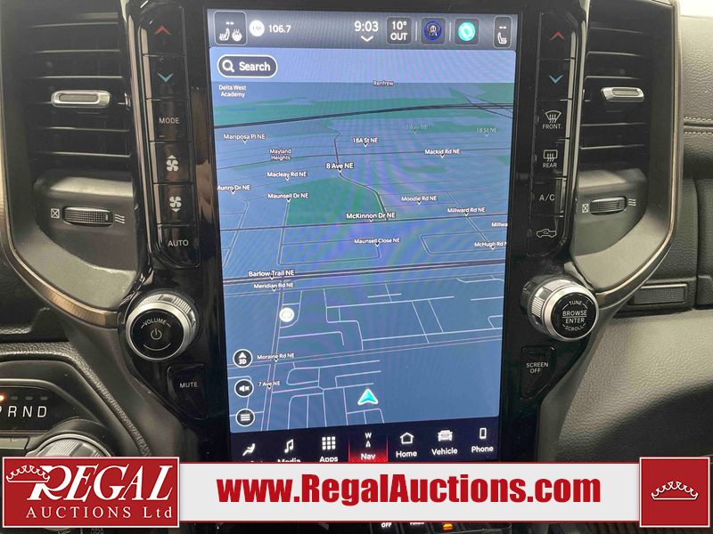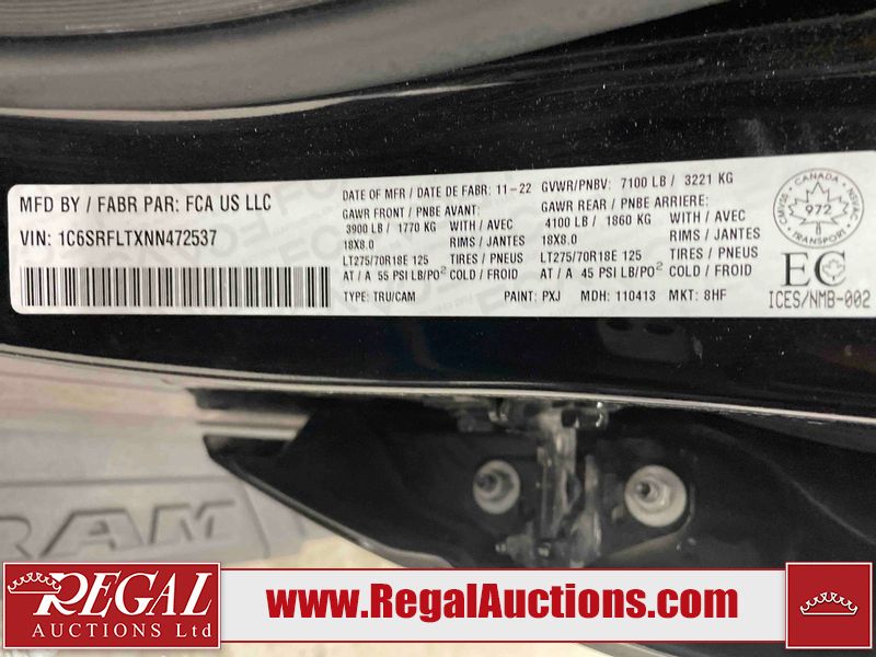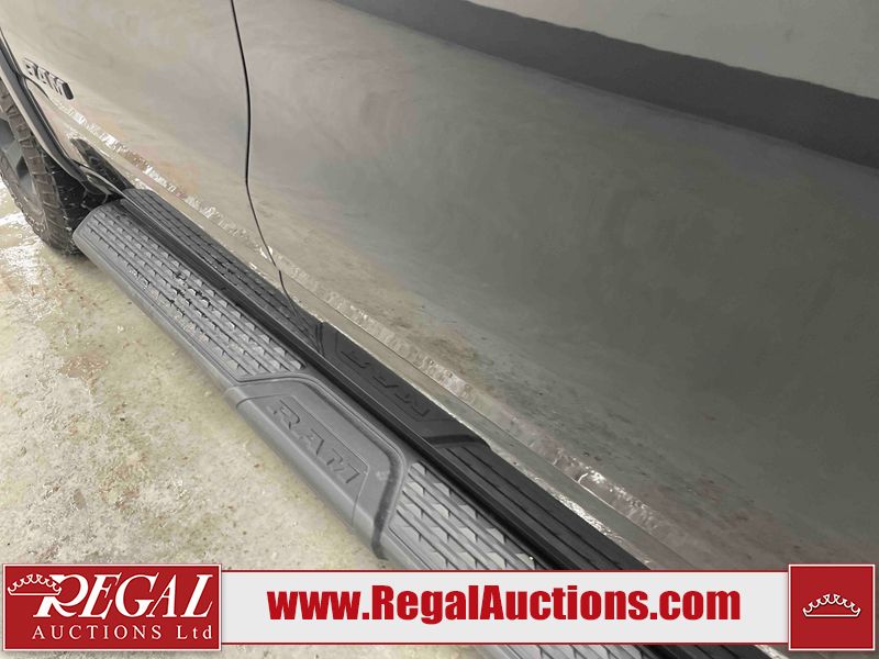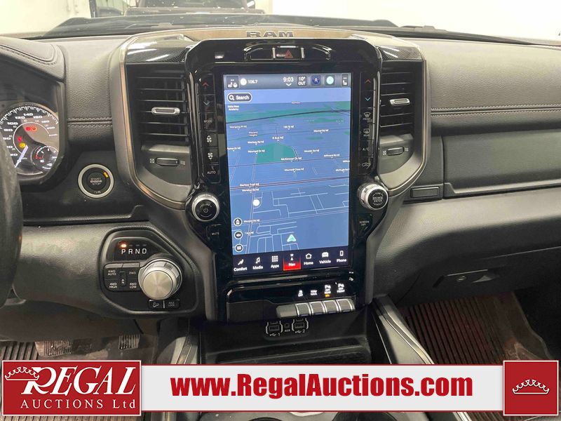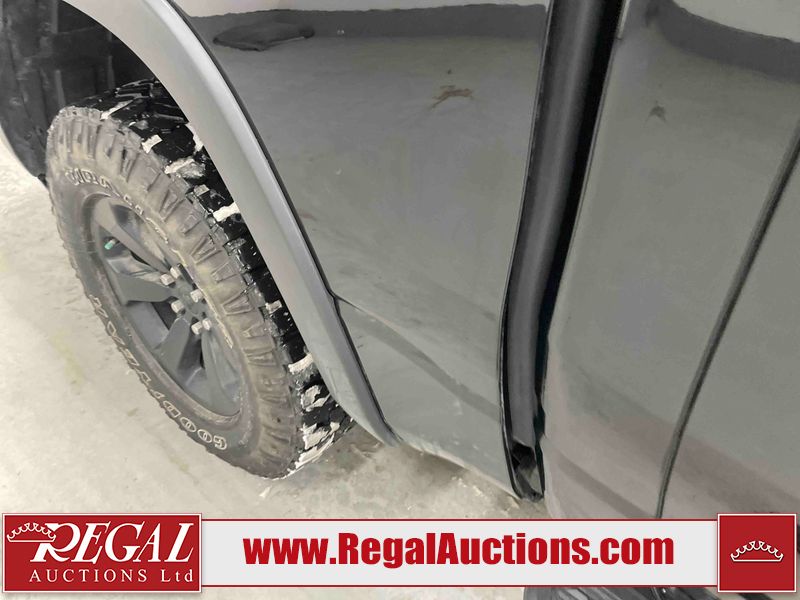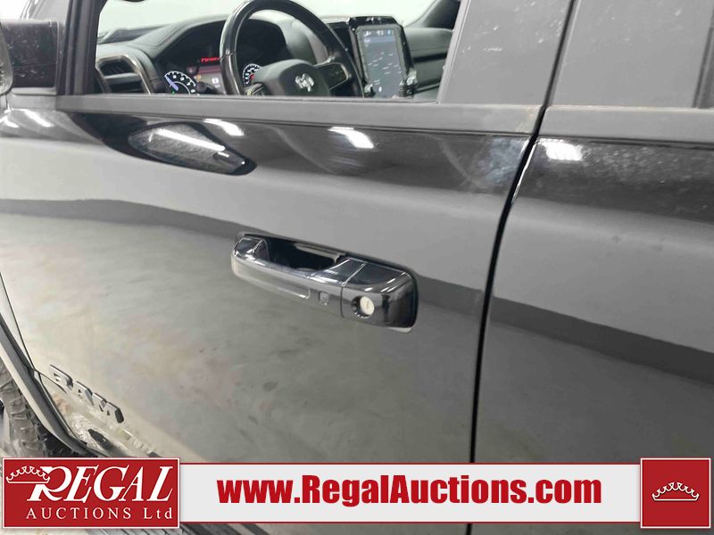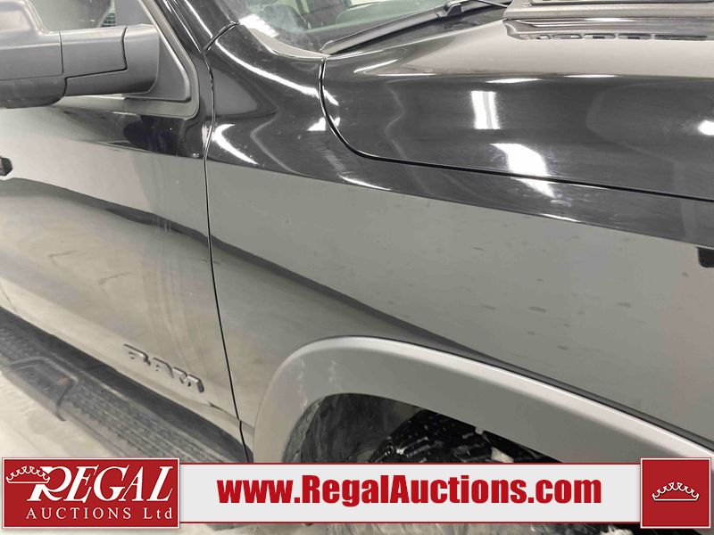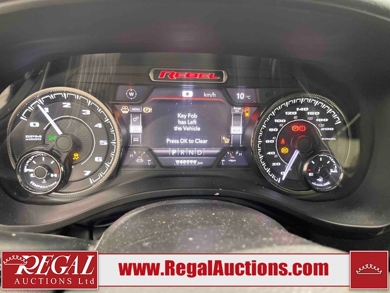 This 2022 RAM 1500 REBEL CREW CAB SWB 4WD 5.7L is powered by a 8 cylinder gasoline engine and an automatic transmission. It is equipped with four wheel drive. The truck has seats for 5 people. The truck has low mileage for its age. The vehicle has high value options including leather upholstery, power seats, heated seats, navigation, and a backup camera. The ABS, Brake system, Stability Control, and Forward Collision lights are on. The body looks to be in good condition overall. There are scratches on the front bumper and right rear door. There are very minor chips in many areas around the body. There are very minor scratches in many areas around the body. The interior looks to be in fair overall condition. The driver's seat is worn. The carpet is dirty. The windshield is chipped. All of the tires have lots of tread remaining.