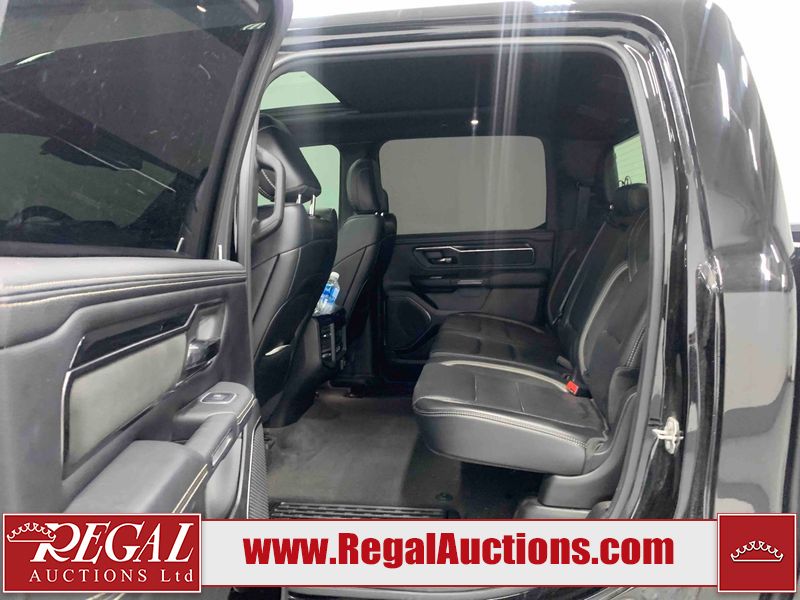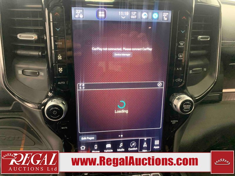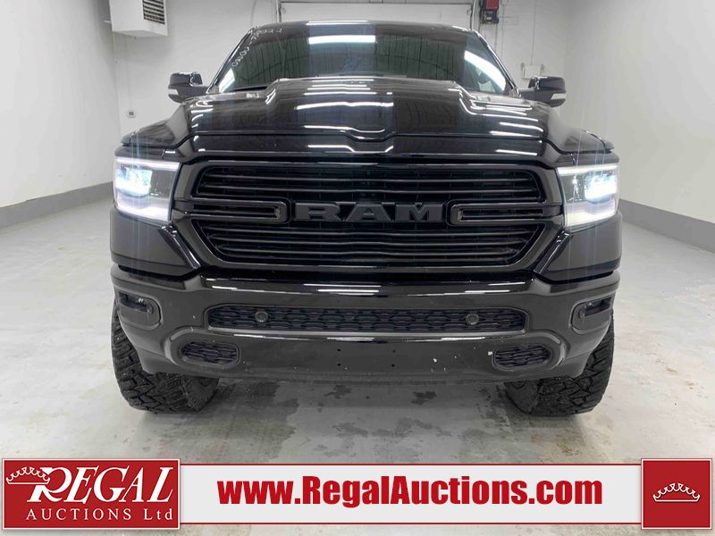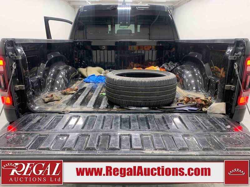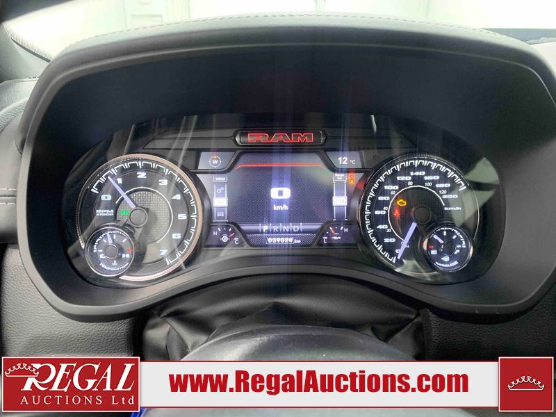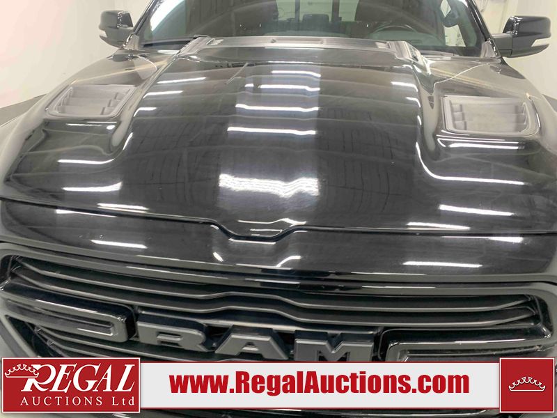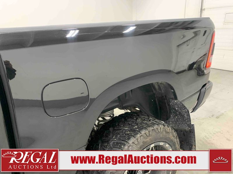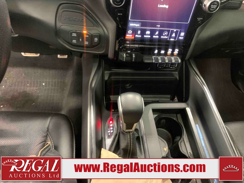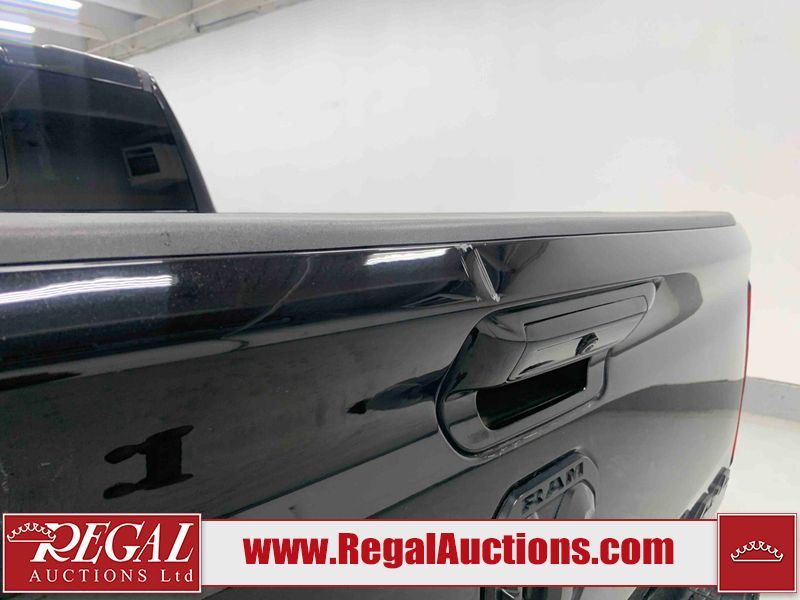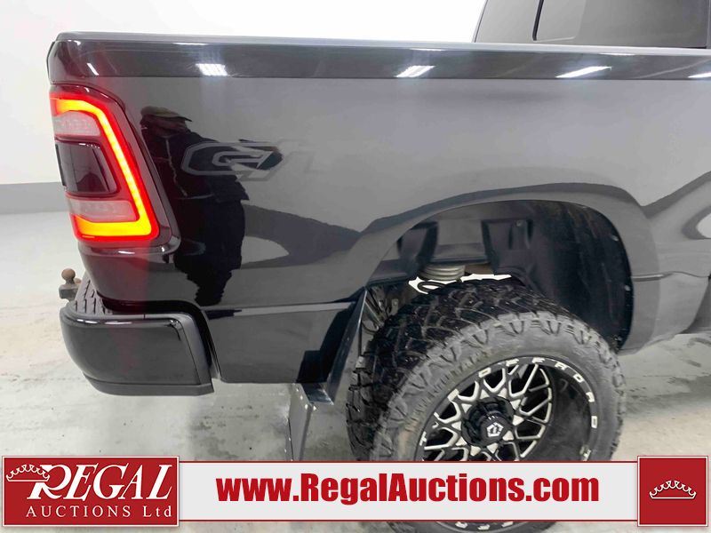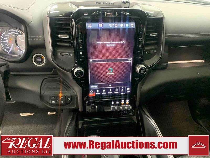 This 2022 RAM 1500 SPORT CREW CAB SWB 4WD 5.7L is powered by a 8 cylinder gasoline engine and an automatic transmission. It is equipped with four wheel drive. The truck has seats for 5 people. The truck has low mileage for its age. The vehicle has high value options including leather upholstery, power seats, heated seats, navigation, and a backup camera. The Check Engine light is on. The body looks to be in fair condition overall. There are chips on the front bumper, hood, roof, and right rear fender. There is slight paint peeling on the front bumper. There are scratches on the tail gate. There is incidental dent damage on the tail gate. There are very minor scratches in many areas around the body. There are very minor chips in many areas around the body. The interior looks to be in good condition overall. The carpet is dirty. All of the tires have lots of tread remaining. Aftermarket suspension has been installed. Aftermarket alloy rims with tires have been mounted, the factory alloys are missing.