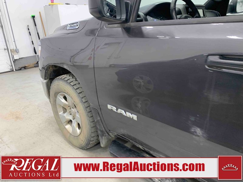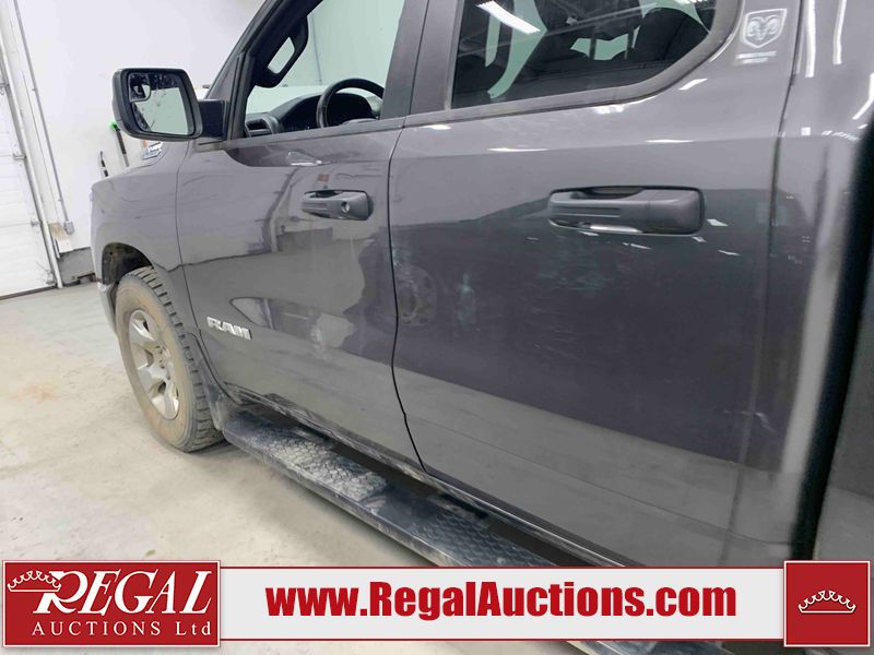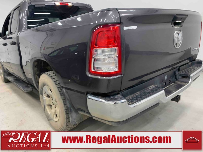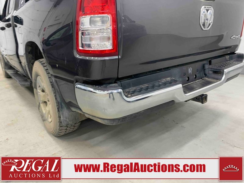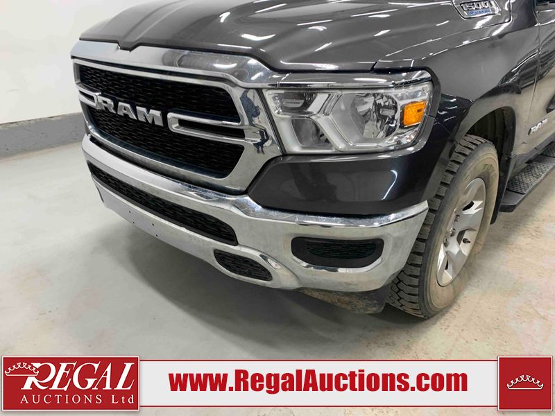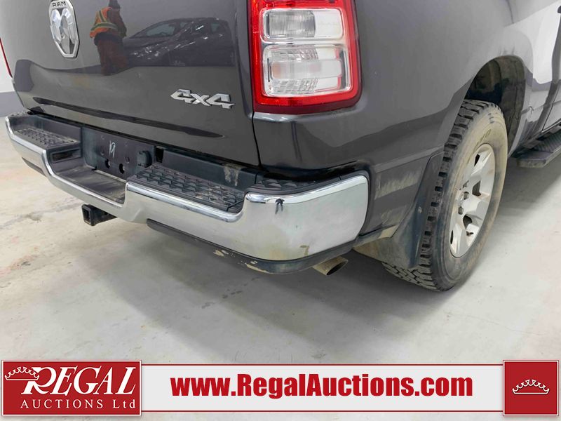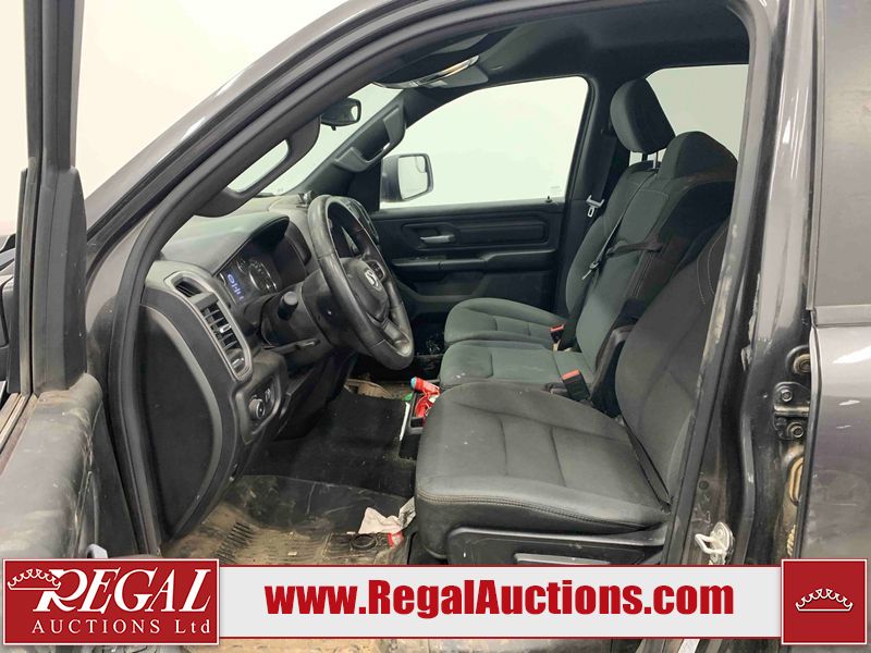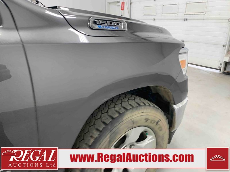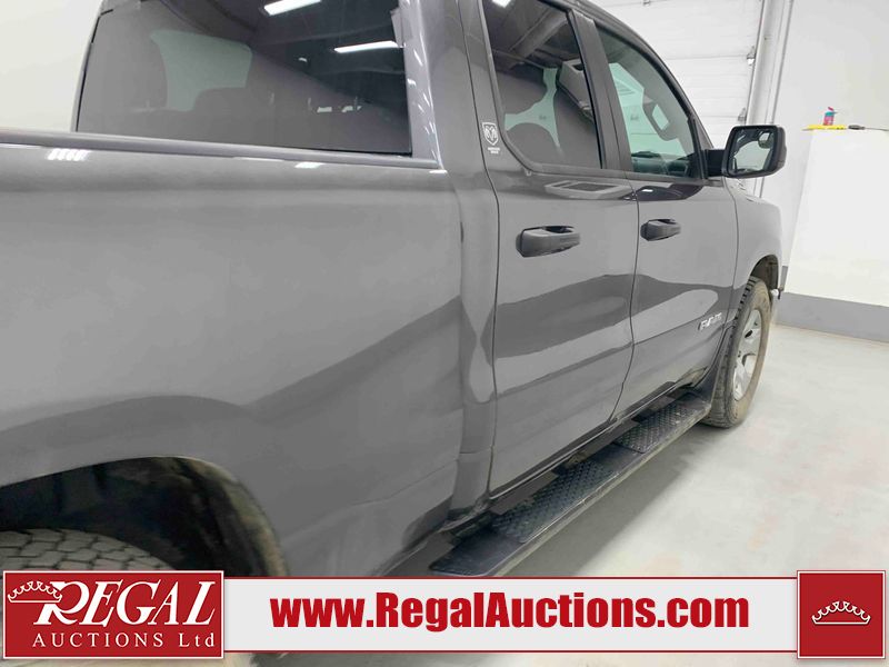 This 2022 RAM 1500 TRADESMAN CREW CAB 4WD 3.6L is powered by a 6 cylinder e-torque gasoline engine and an automatic transmission. It is equipped with four wheel drive. The truck has seats for 6 people. The truck has low mileage for its age. The vehicle has high value options including a backup camera. The body looks to be in fair condition overall. There are scratches on the front bumper and right rear fender. There are minimal chips on the front bumper and grille. There is incidental dent damage on the left front door, left rear door, left rear fender, and right rear door. There are very minor scratches in many areas around the body. There are very minor chips in many areas around the body. The interior looks to be in fair condition overall. The driver's seat and passenger seat are stained. The carpet is dirty. The windshield is cracked. All of the tires have lots of tread remaining.