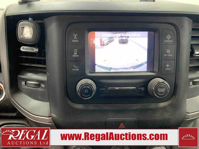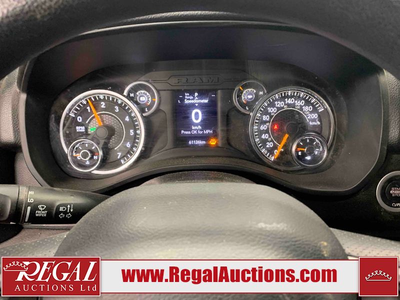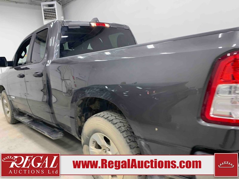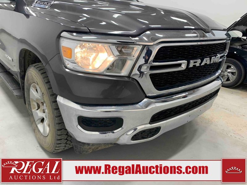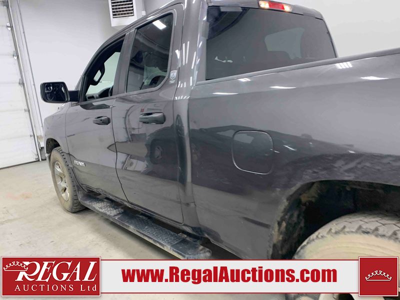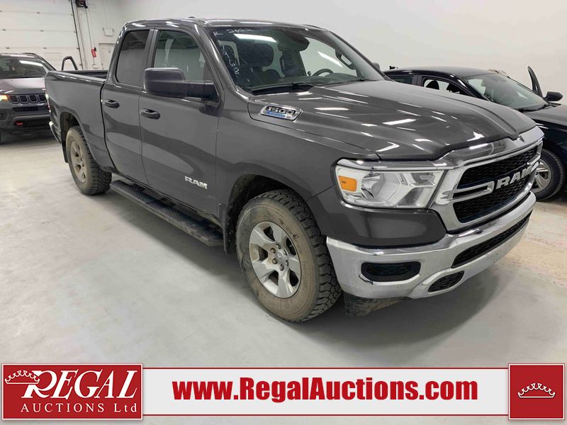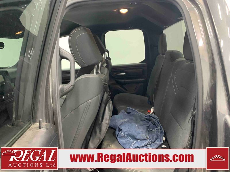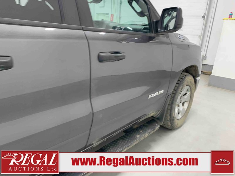 This 2022 RAM 1500 TRADESMAN CREW CAB 4WD 3.6L is powered by a 6 cylinder e-torque gasoline engine and an automatic transmission. It is equipped with four wheel drive. The truck has seats for 6 people. The truck has low mileage for its age. The vehicle has high value options including a backup camera. The body looks to be in fair condition overall. There are scratches on the front bumper and right rear fender. There are minimal chips on the front bumper and grille. There is incidental dent damage on the left front door, left rear door, left rear fender, and right rear door. There are very minor scratches in many areas around the body. There are very minor chips in many areas around the body. The interior looks to be in fair condition overall. The driver's seat and passenger seat are stained. The carpet is dirty. The windshield is cracked. All of the tires have lots of tread remaining.