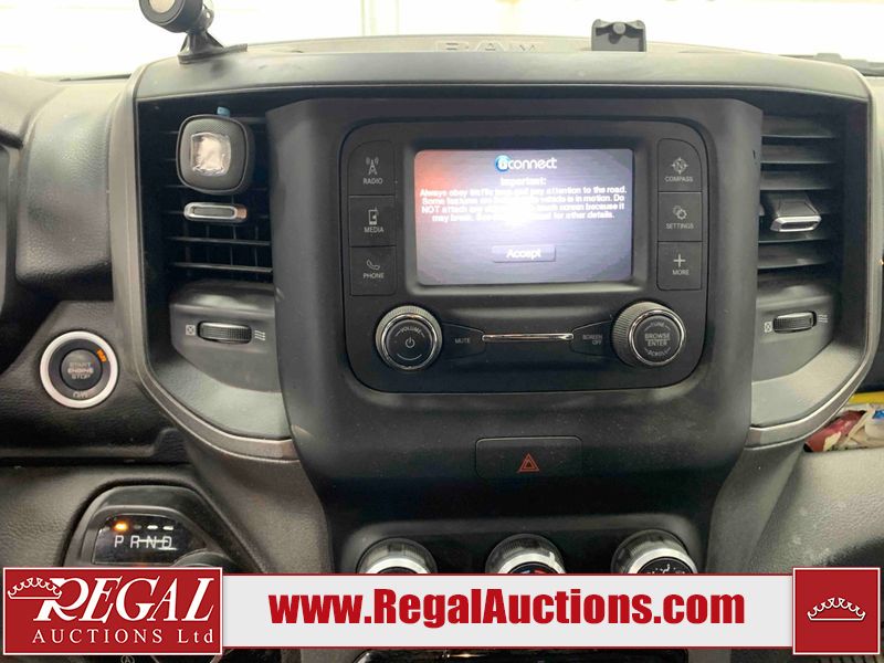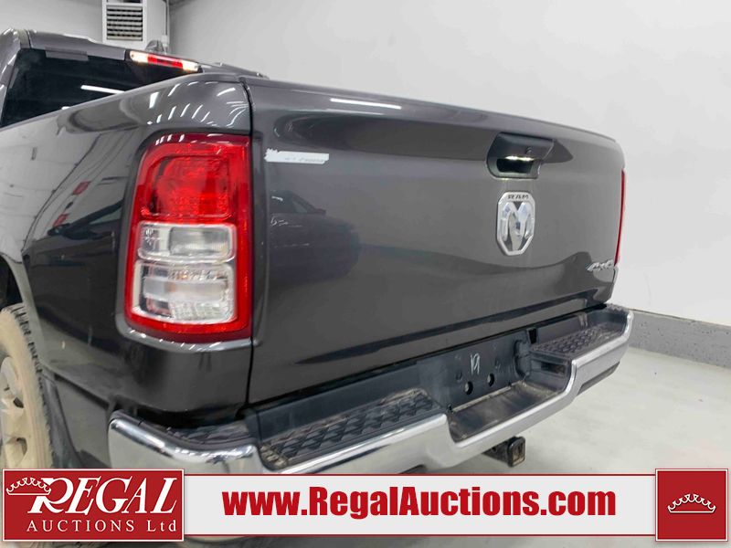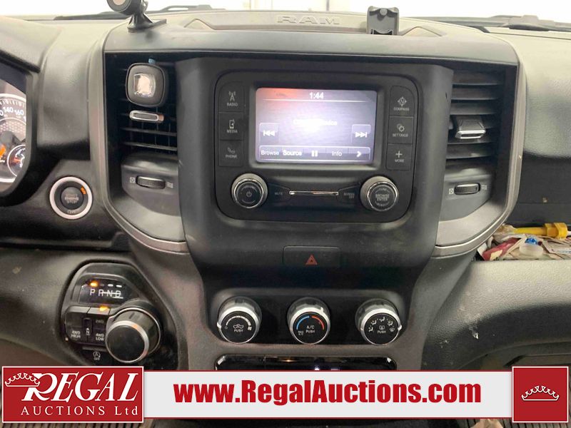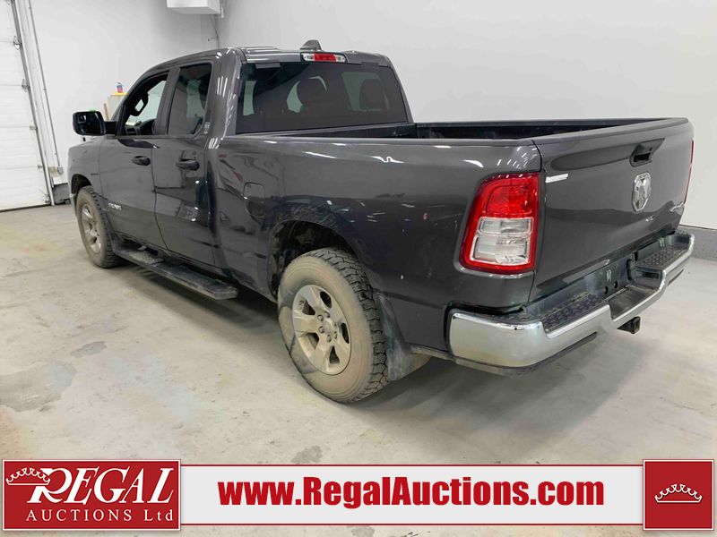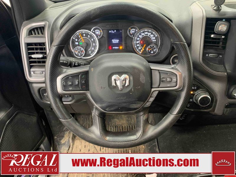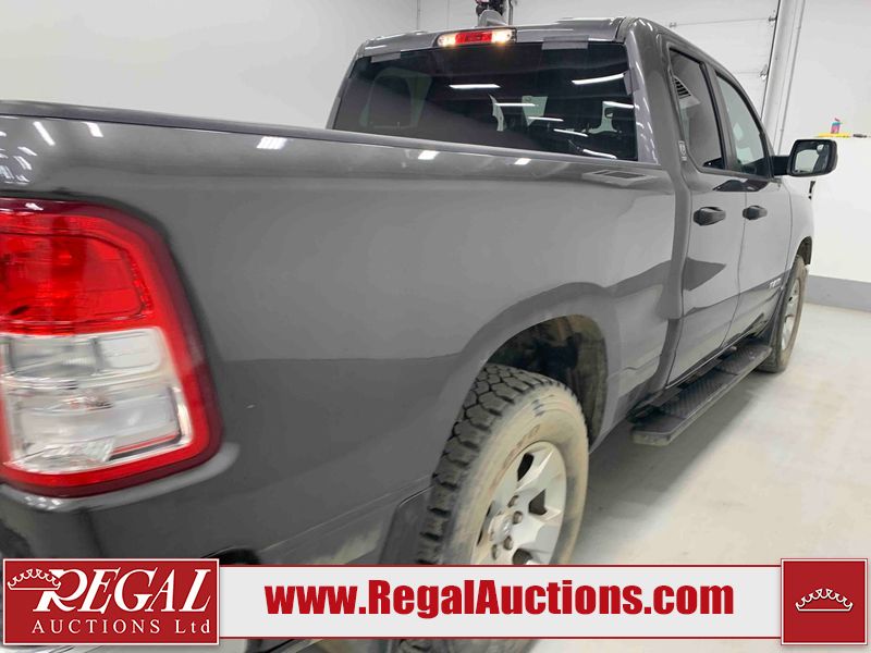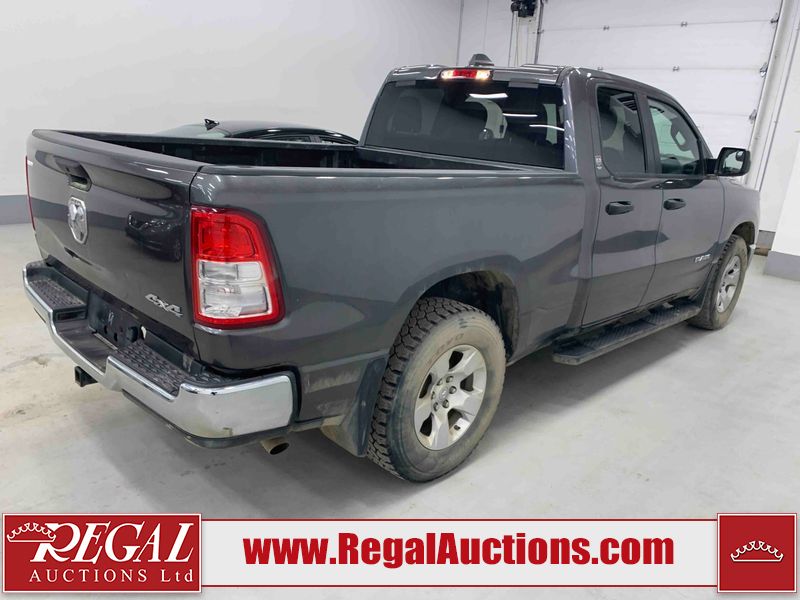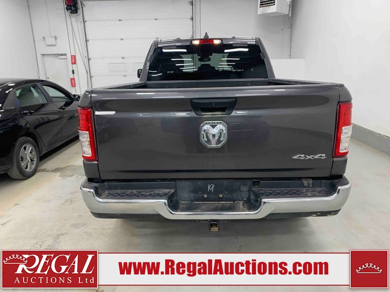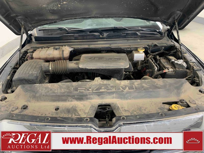 This 2022 RAM 1500 TRADESMAN CREW CAB 4WD 3.6L is powered by a 6 cylinder e-torque gasoline engine and an automatic transmission. It is equipped with four wheel drive. The truck has seats for 6 people. The truck has low mileage for its age. The vehicle has high value options including a backup camera. The body looks to be in fair condition overall. There are scratches on the front bumper and right rear fender. There are minimal chips on the front bumper and grille. There is incidental dent damage on the left front door, left rear door, left rear fender, and right rear door. There are very minor scratches in many areas around the body. There are very minor chips in many areas around the body. The interior looks to be in fair condition overall. The driver's seat and passenger seat are stained. The carpet is dirty. The windshield is cracked. All of the tires have lots of tread remaining.
