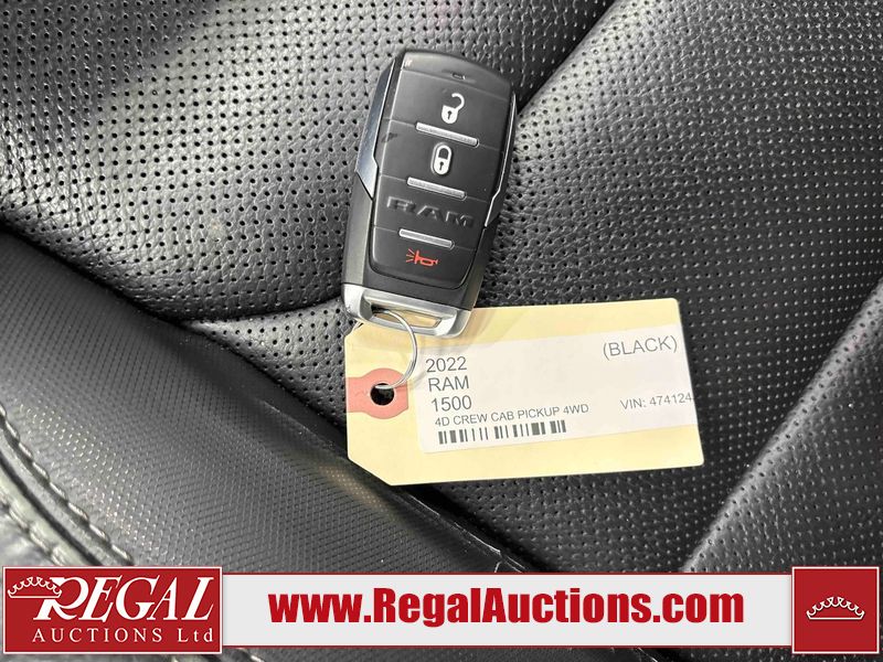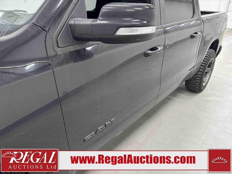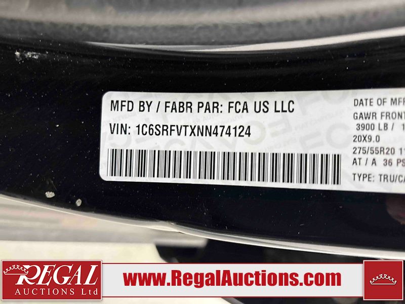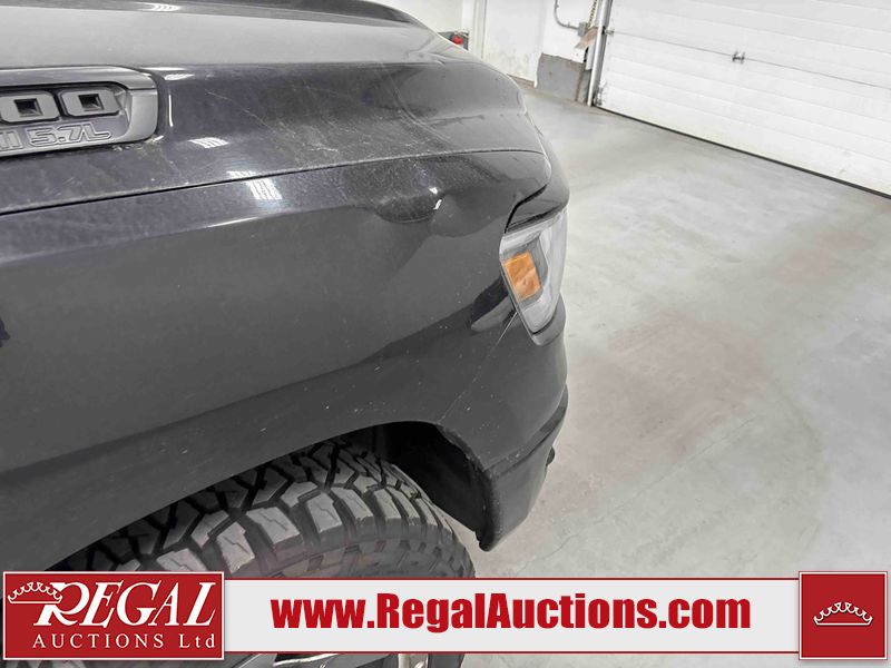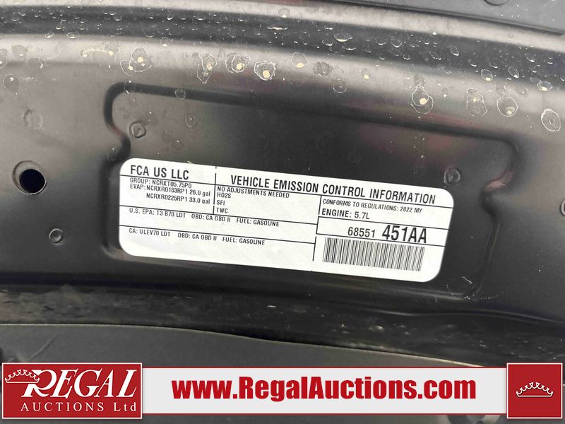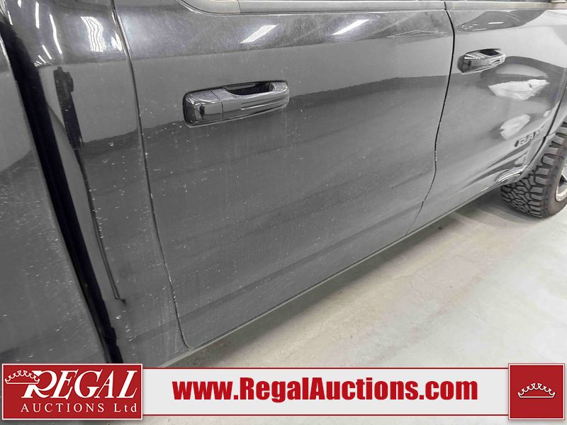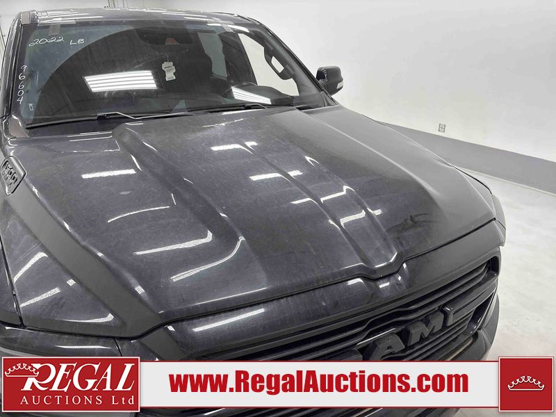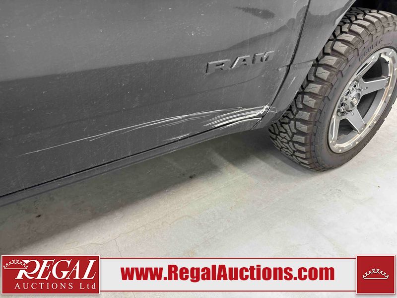 This 2022 RAM 1500 4D CREW CAB PICKUP 4WD is powered by a 5.7L V8 gasoline engine and an automatic transmission. It is equipped with four-wheel drive. The truck has seats for 5 people. The truck has high mileage for its age. The vehicle has high-value options including leather upholstery, power seats, heated seats, navigation, and a backup camera. The Check Engine light is on. The body looks to be in fair condition overall. There is very bad dent damage on the right front door. The rear bumper is broken. There are slight chips on the front bumper. There is dent damage on the hood, tail gate, and right front fender. There are minimal scratches on the left rear fender, right rear fender, right rear door, and right front door. There is slight rust on the tail gate and right front door. There are very minor scratches in many areas around the body. There are very minor chips in many areas around the body. There is very minor dent damage in some areas around the body. The interior looks to be in good condition overall. The dashboard is broken. The windshield looks to be in good condition. All of the tires have lots of tread remaining. This truck is being sold by an automotive broker. The vehicle will be sold with the following declarations: Out of Province - NT (See Footnote 1). Footnotes: 1) The vehicle's last registered jurisdiction is North West Territories. The purchaser must have the vehicle undergo and pass an Out of Province inspection before it can be registered in Alberta. Regal Auctions Ltd. makes no guarantee or warranty, either express or implied, with respect to the data provided in this report. The information has been provided from the consignor and from sources generally believed to be reliable, however the accuracy of this information cannot be guaranteed by Regal Auctions.