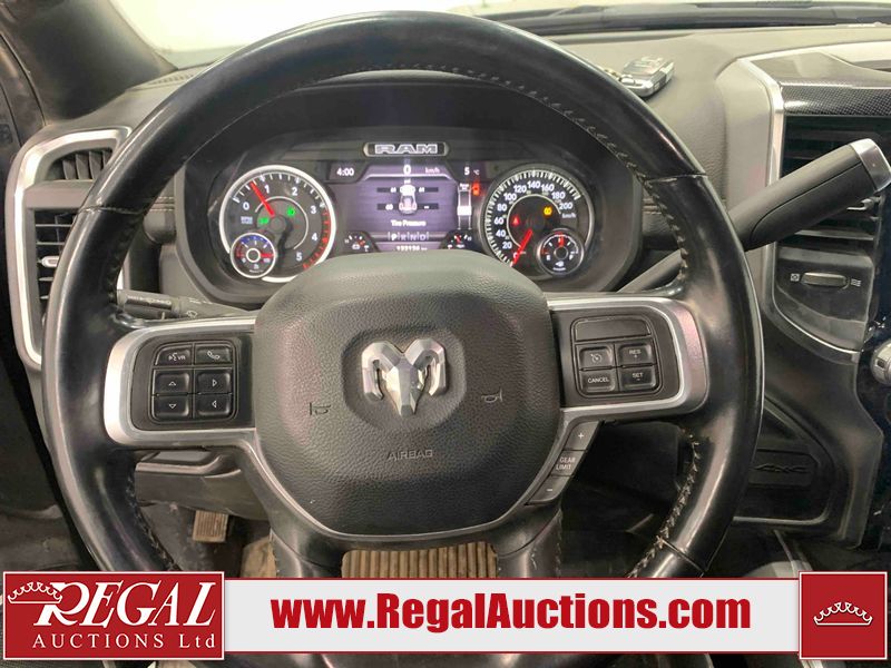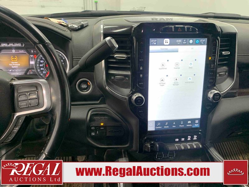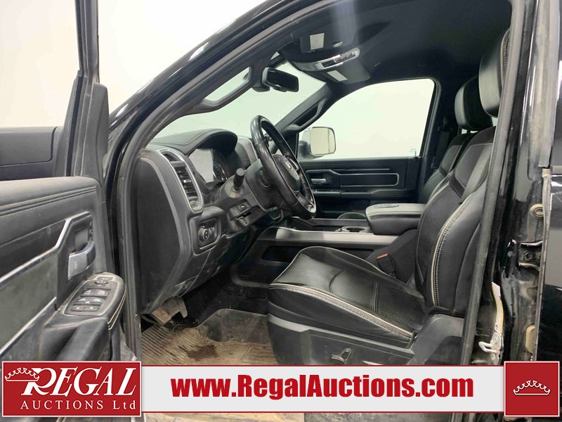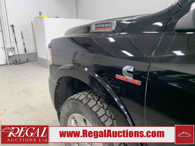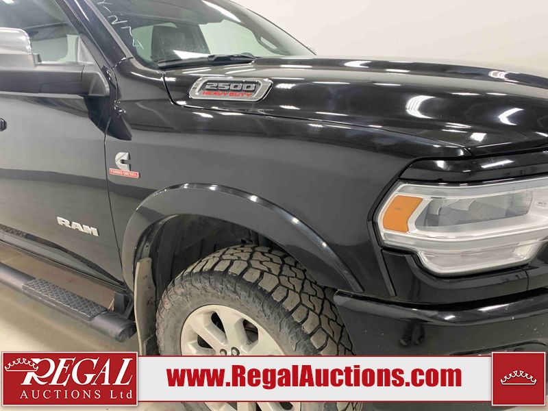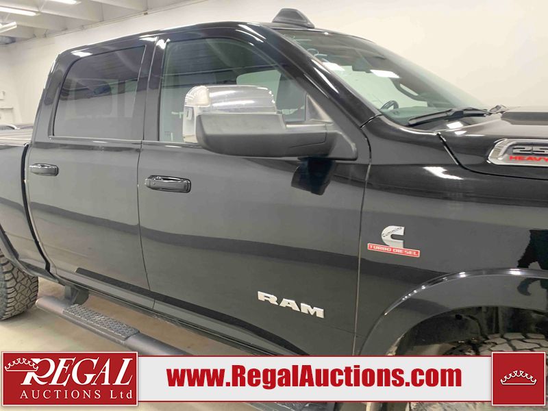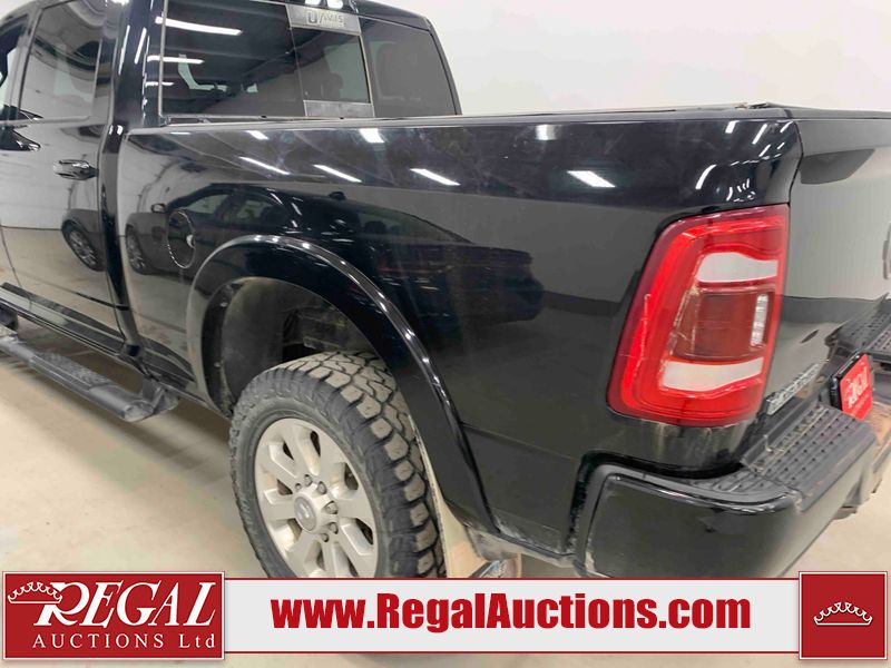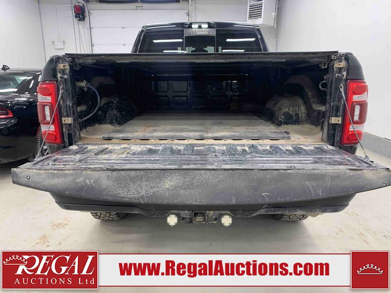 This 2022 RAM 2500 LARAMIE CREW CAB SWB 4WD 6.7L is powered by a turbocharged 6 cylinder diesel engine and an automatic transmission. It is equipped with four wheel drive. The truck has seats for 5 people. The truck has high mileage for its age. LARAMIE is a very popular trim level. The vehicle has high value options including leather upholstery, power seats, heated seats, navigation, and a backup camera. The body looks to be in fair condition overall. There are minimal chips on the front bumper. There is dent damage on the left rear fender, tail gate, and right rear fender. There are very minor scratches in many areas around the body. There are very minor chips in many areas around the body. The interior looks to be in good condition overall. The carpet is dirty. The windshield is cracked. All of the tires have lots of tread remaining.