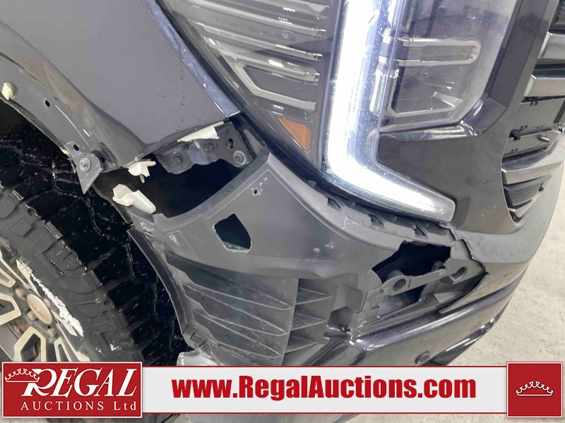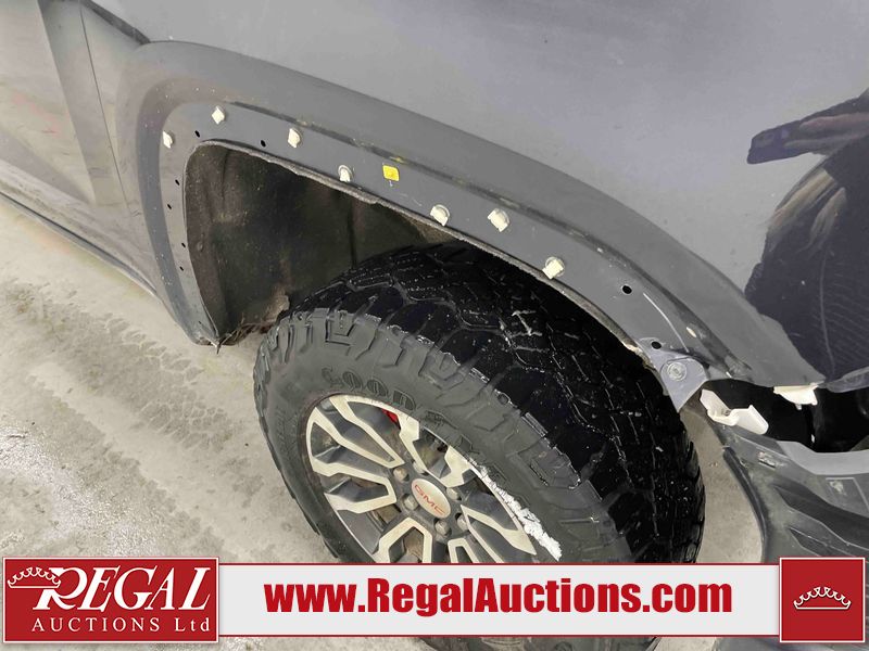 This 2023 GMC SIERRA 1500 AT4 CREW CAB SWB 4WD 3.0L is powered by a turbocharged 6 cylinder diesel engine and an automatic transmission. It is equipped with four wheel drive. The truck has seats for 5 people. The truck has high mileage for its age. The vehicle has high value options including leather upholstery, power seats, heated seats, and a backup camera. The vehicle has some mechanical problems. The vehicle is physically not drivable. One of the main battery fuses are blown, the unit must be boosted with two booster packs in order to start. The battery will need to be replaced. The driveshaft has been disconnected. This unit is dirty, not all damages can be determined. The body looks to be in rough condition overall. The front bumper is broken. The rear bumper has parts missing. There is paint peeling on the grille and tail gate. There are slight chips on the hood, left front fender, left front door, left rear door, left rear fender, rear bumper, tail gate, right rear fender, right rear door, right front door, and right front fender. There are scratches on the left front door, left rear door, left rear fender, rear bumper, right rear fender, right rear door, right front door, and right front fender. There is dent damage on the tail gate and right front fender. The right front fender has parts missing. There are very minor scratches in a few areas around the body. There is very minor dent damage on the right rear fender. The interior looks to be in fair condition overall. The dashboard and doors are dirty. The driver's seat, passenger seat, and rear seats are dirty. The carpet is dirty. The windshield is damaged. The driver side mirror is broken. The passenger side mirror is broken. All of the tires have lots of tread remaining. The left front tire is flat and will not hold air.