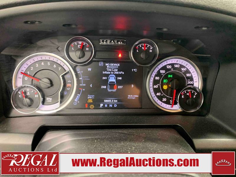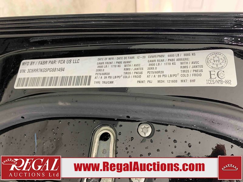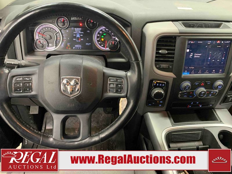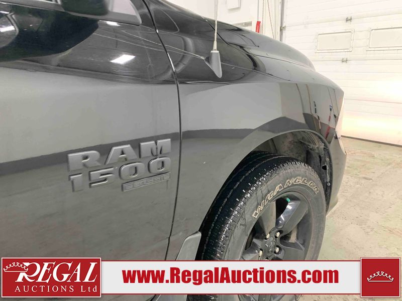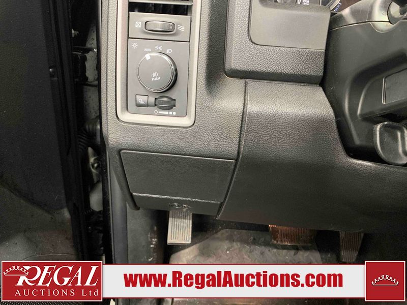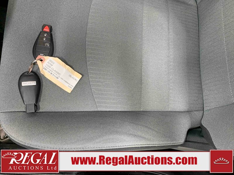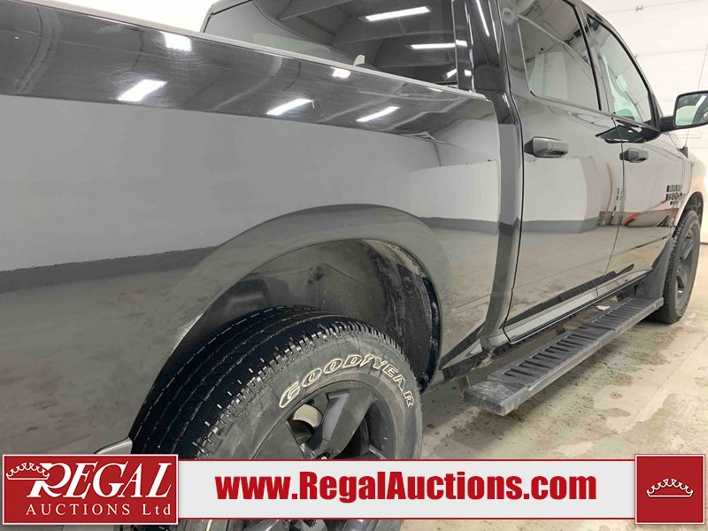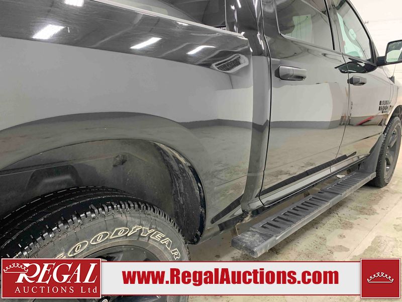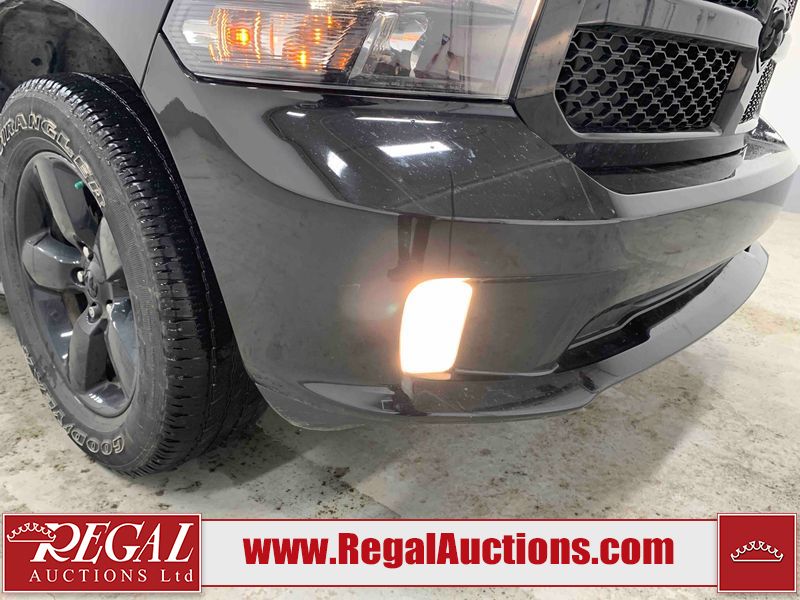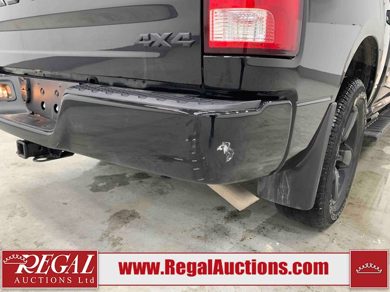 This 2023 RAM 1500 CLASSIC EXPRESS CREW CAB SWB 4WD 3.6L is powered by a 6 cylinder gasoline engine and an automatic transmission. It is equipped with four wheel drive. The truck has seats for 5 people. The truck has high mileage for its age. The vehicle has high value options including power seats, heated seats, and a backup camera. The Tire Pressure light is on. The body looks to be in fair condition overall. There are slight chips on the front bumper, grille, hood, and left front fender. There are scratches on the front bumper, hood, left rear door, left rear fender, rear bumper, tail gate, right rear fender, and right rear door. There is dent damage on the roof. There is paint peeling on the tail gate. There is very minor dent damage on the hood. There are very minor chips in many areas around the body. There are very minor scratches in many areas around the body. The interior looks to be in fair condition overall. The driver's seat and rear seats are stained. The carpet is dirty. The roof liner is dirty. The windshield is cracked. All of the tires have lots of tread remaining.