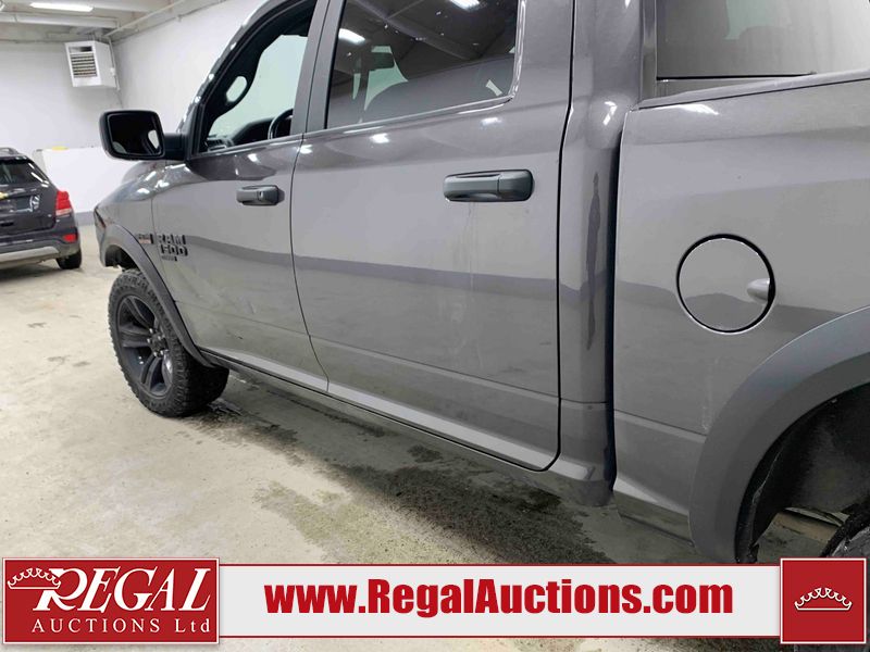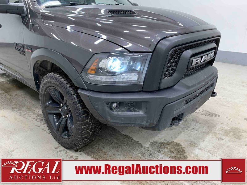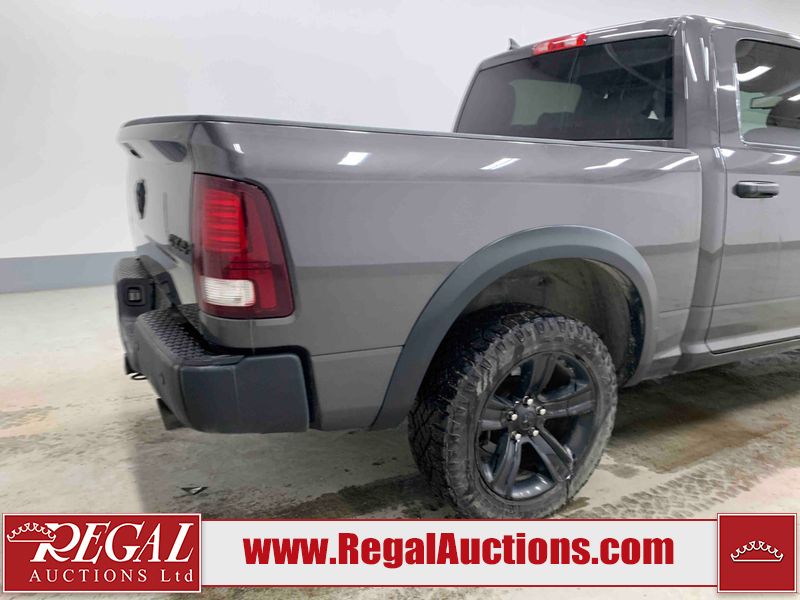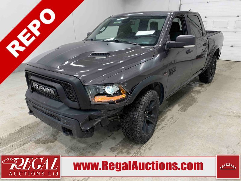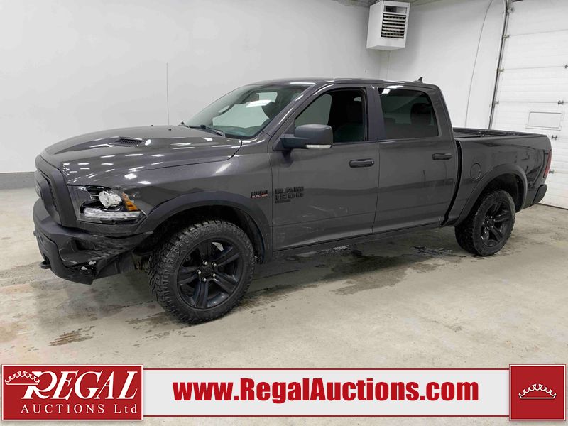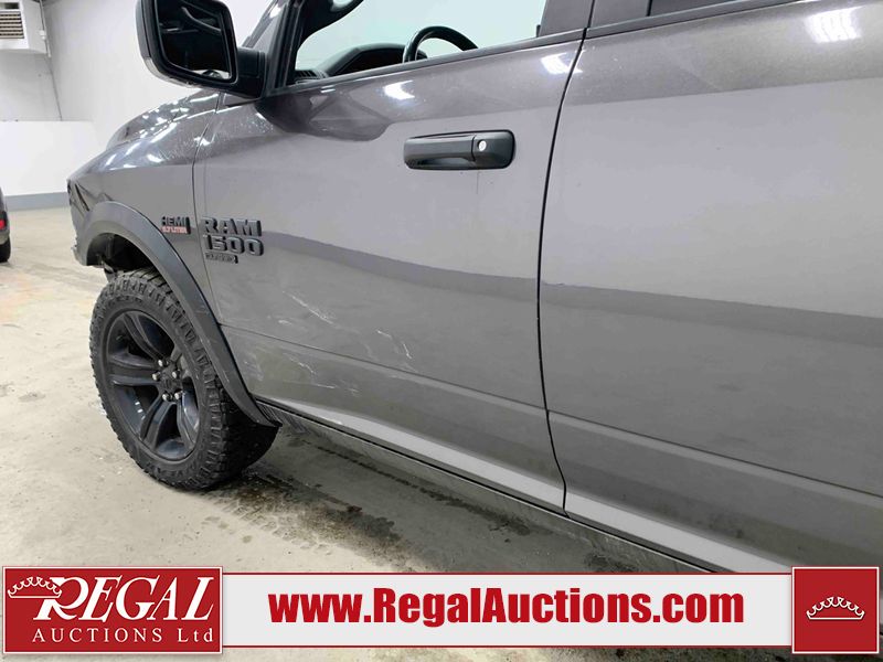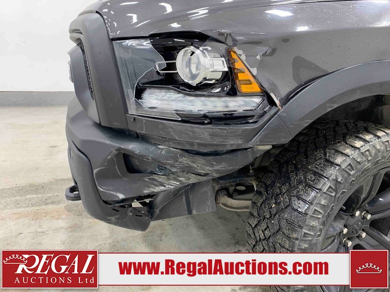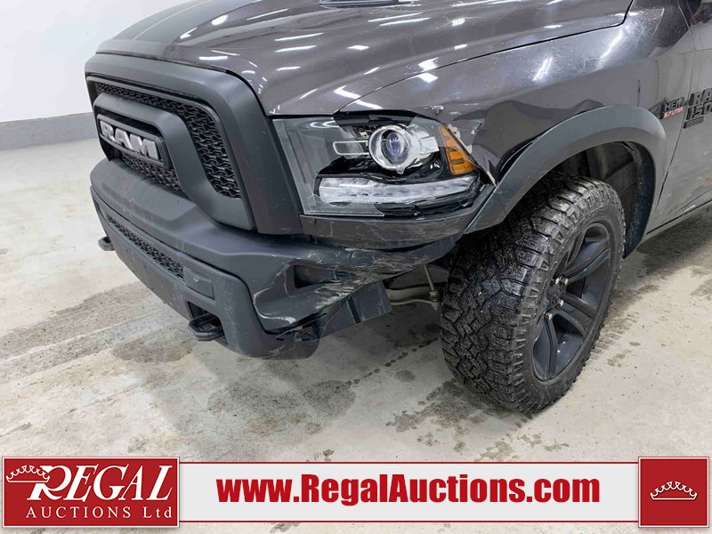 This 2023 RAM 1500 CLASSIC WARLOCK CREW CAB 4WD 5.7L is powered by a 8 cylinder gasoline engine and an automatic transmission. It is equipped with four wheel drive. The truck has seats for 5 people. The truck has high mileage for its age. The vehicle has high value options including power seats, heated seats, and a backup camera. The Tire Pressure light is on. The body looks to be in rough condition overall. The front bumper is broken. There is very bad dent damage on the left front fender and left front door. The fascia is broken on the front bumper. There are slight scratches on the front bumper, left front fender, and left front door. There are chips on the front bumper. The front bumper has parts missing. There is slight paint peeling on the left front fender. There is minimal rust on the left front fender. There is dent damage on the tail gate and right front door. There are very minor chips in many areas around the body. There are very minor scratches in many areas around the body. The left headlight is broken. The tail lights don't work. There is misaligned damage to the left front door. The interior looks to be in good condition overall. The carpet is dirty. The windshield is cracked. All of the tires have lots of tread remaining.