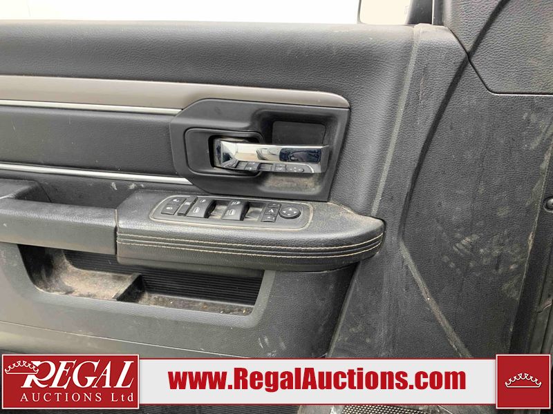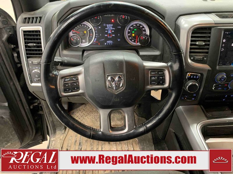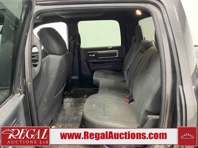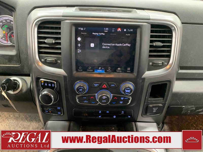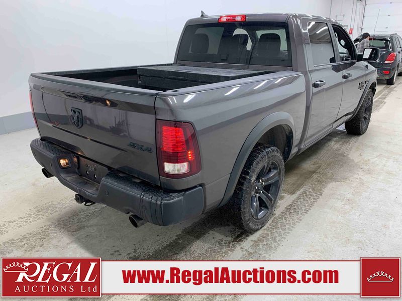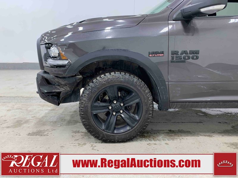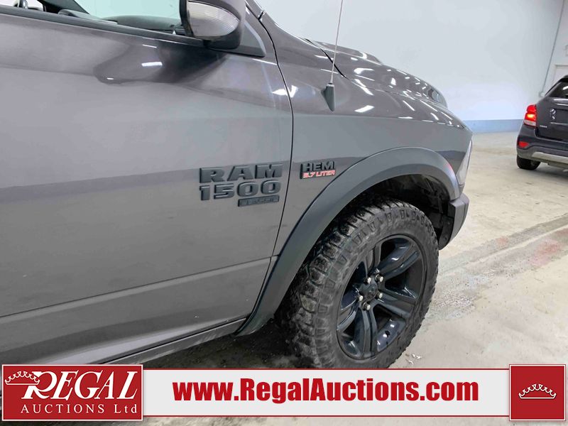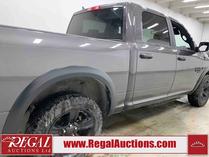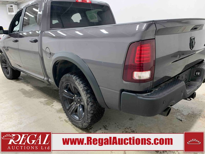 This 2023 RAM 1500 CLASSIC WARLOCK CREW CAB 4WD 5.7L is powered by a 8 cylinder gasoline engine and an automatic transmission. It is equipped with four wheel drive. The truck has seats for 5 people. The truck has high mileage for its age. The vehicle has high value options including power seats, heated seats, and a backup camera. The Tire Pressure light is on. The body looks to be in rough condition overall. The front bumper is broken. There is very bad dent damage on the left front fender and left front door. The fascia is broken on the front bumper. There are slight scratches on the front bumper, left front fender, and left front door. There are chips on the front bumper. The front bumper has parts missing. There is slight paint peeling on the left front fender. There is minimal rust on the left front fender. There is dent damage on the tail gate and right front door. There are very minor chips in many areas around the body. There are very minor scratches in many areas around the body. The left headlight is broken. The tail lights don't work. There is misaligned damage to the left front door. The interior looks to be in good condition overall. The carpet is dirty. The windshield is cracked. All of the tires have lots of tread remaining.