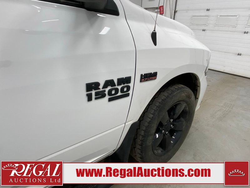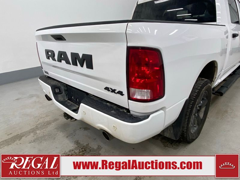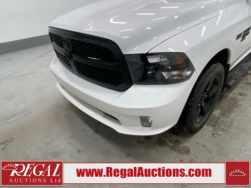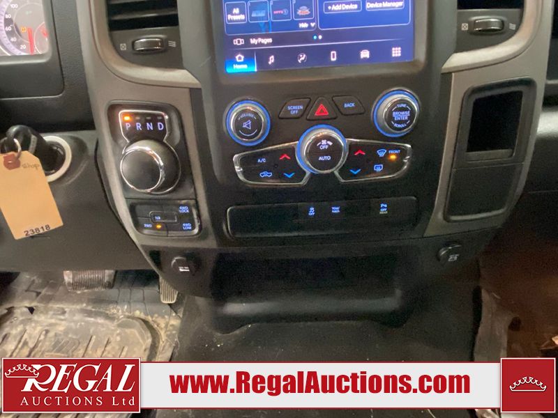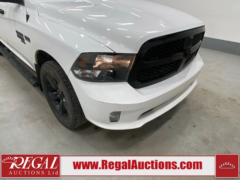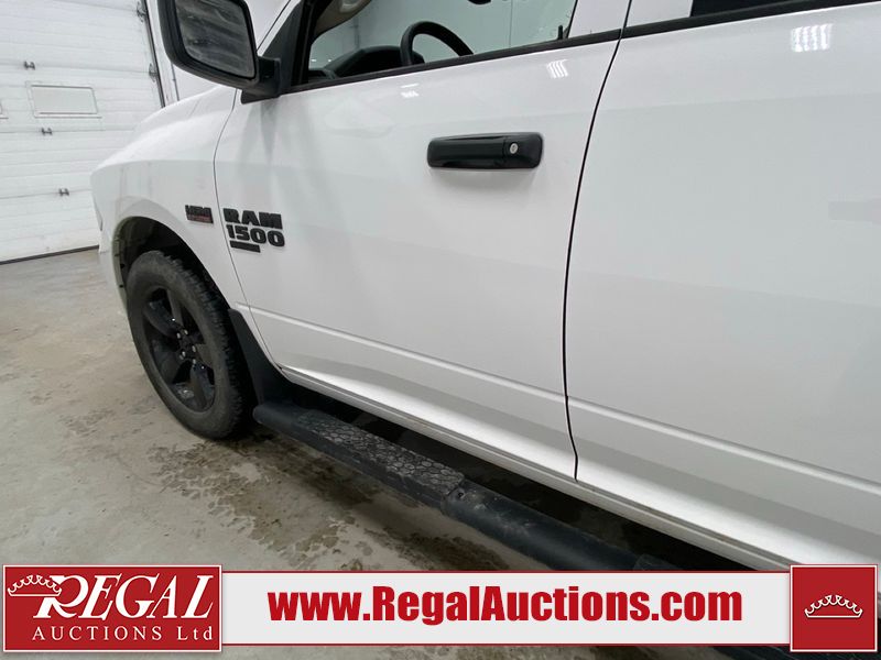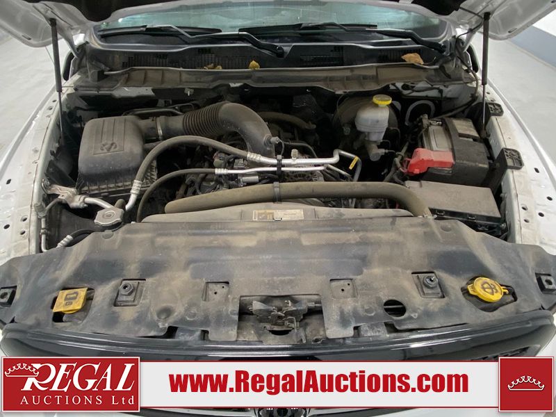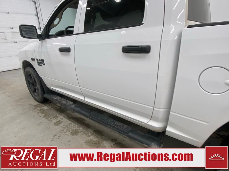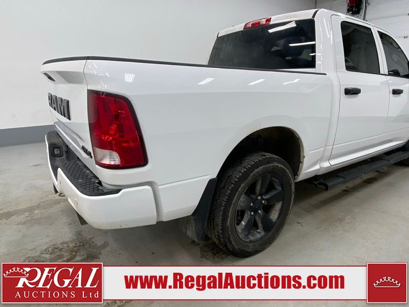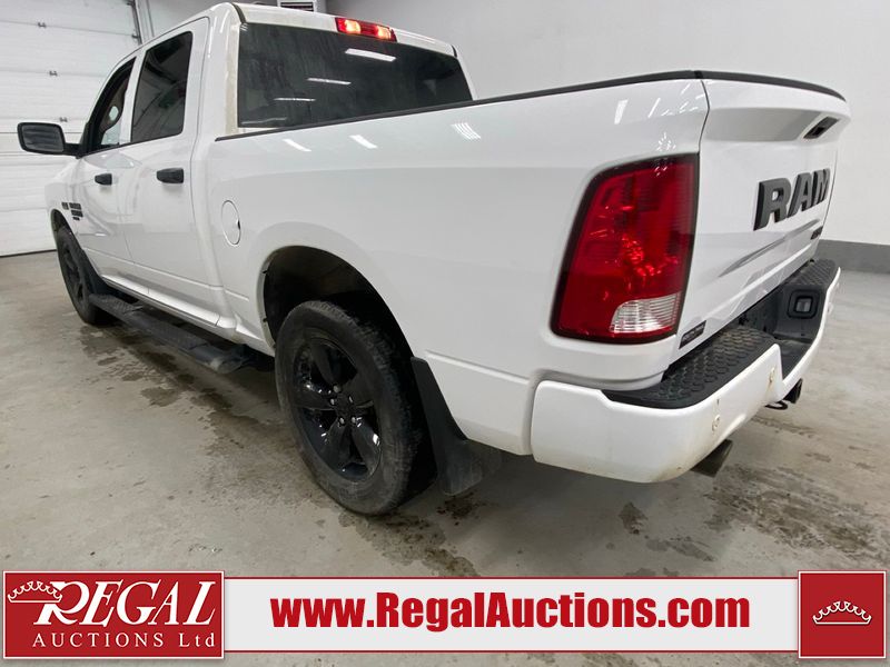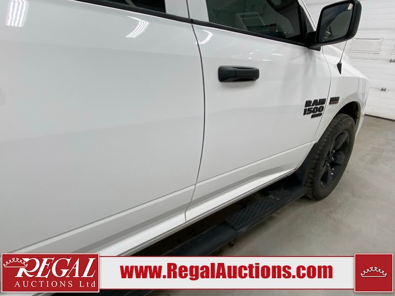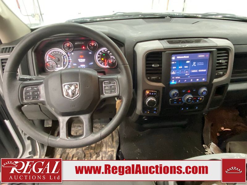 This 2023 RAM 1500 CLASSIC EXPRESS CREW CAB 4WD SWB 5.7L is powered by a 8 cylinder gasoline engine and an automatic transmission. It is equipped with four wheel drive. The truck has seats for 6 people. The truck has high mileage for its age. The vehicle has high value options including a backup camera. The Brake light out light is on. The body looks to be in good condition overall. There are minor chips on the front bumper, rear bumper, and tail gate. There are scratches on the rear bumper. There is incidental dent damage on the right rear fender. There are very minor scratches in many areas around the body. There are very minor chips in many areas around the body. The interior looks to be in fair condition overall. The dashboard, driver's seat, passenger seat, rear seats, and doors are dirty. The windshield is damaged. The front tires and the passenger side rear tire are all worn. The driver's side rear tire has lots of tread left.