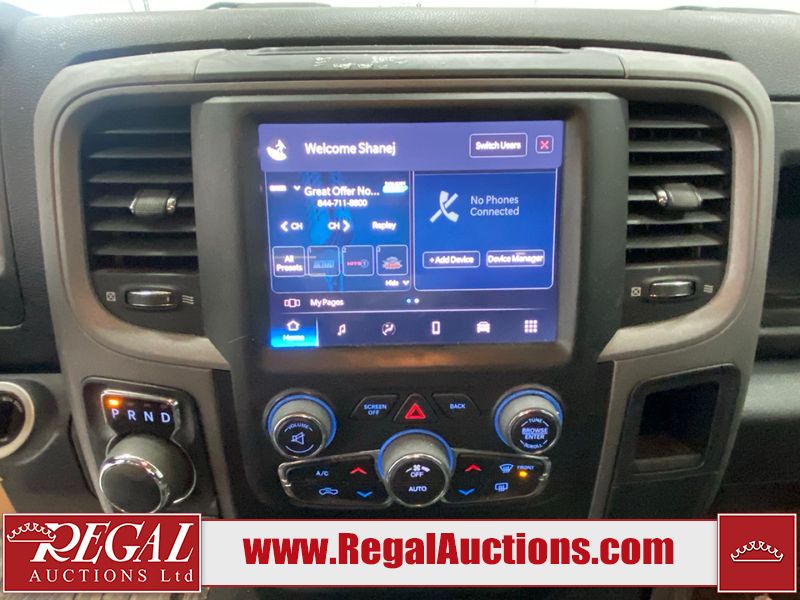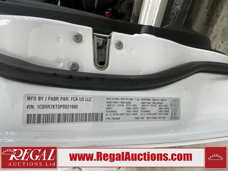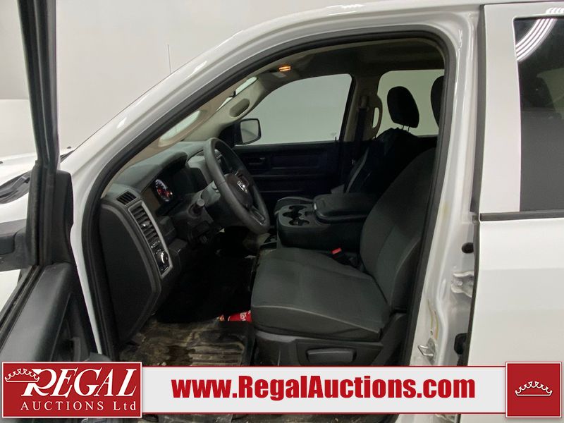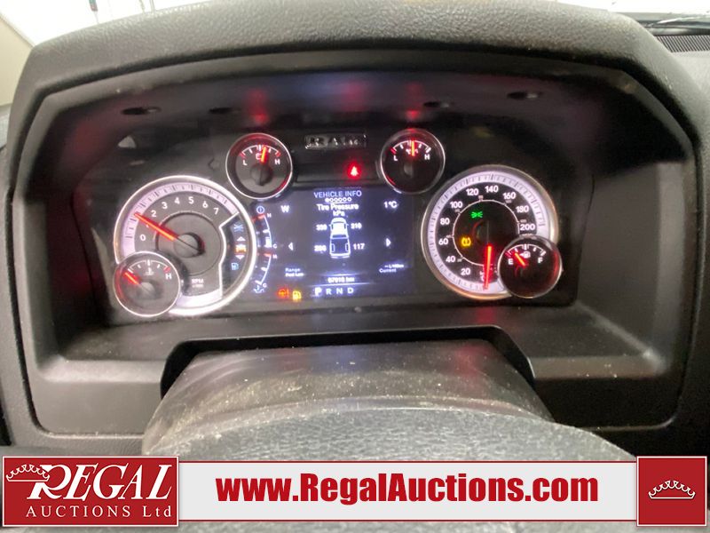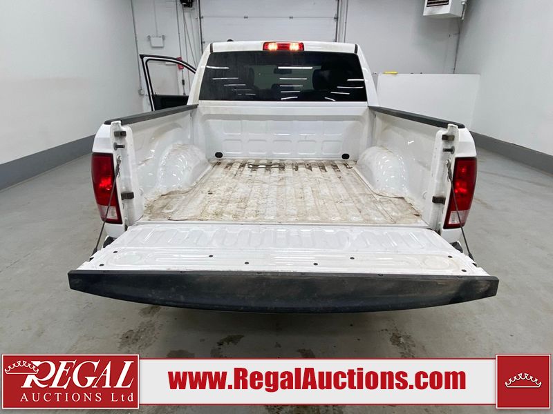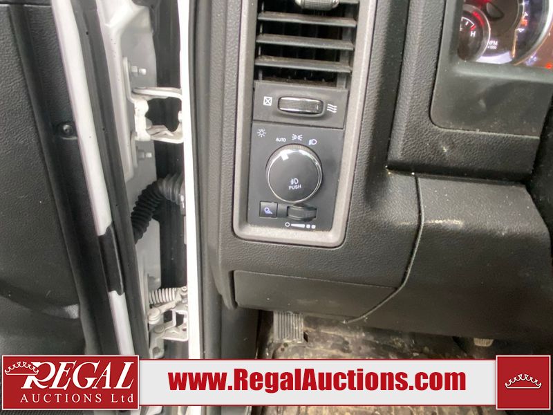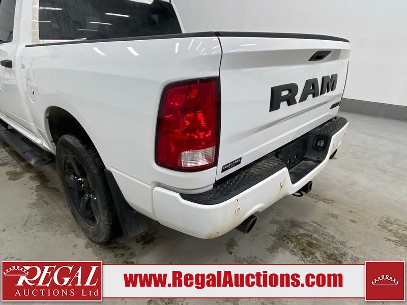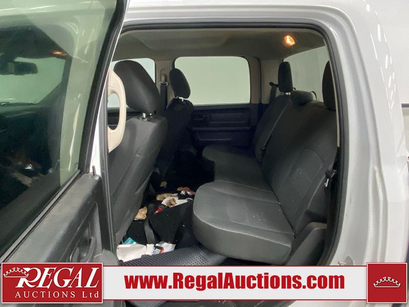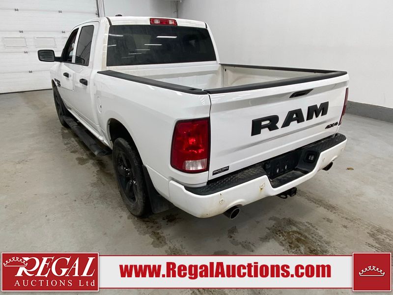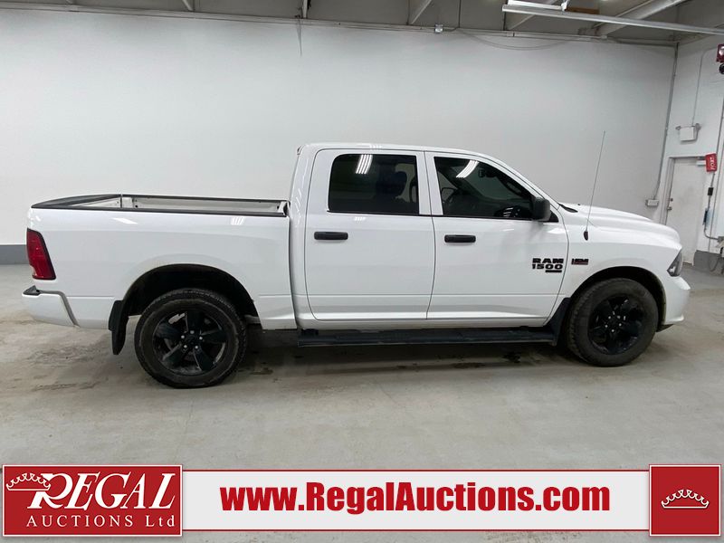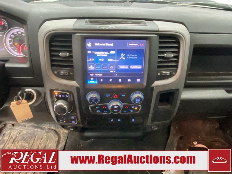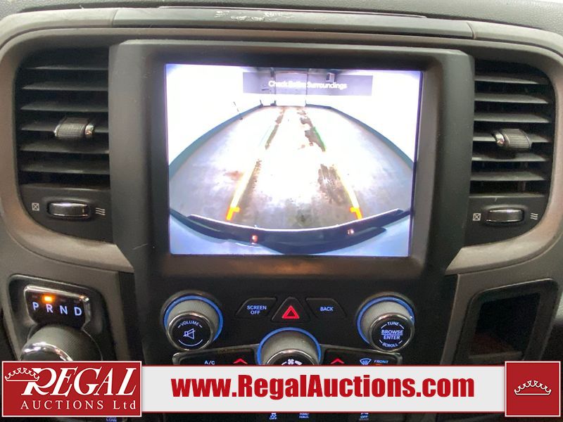 This 2023 RAM 1500 CLASSIC EXPRESS CREW CAB 4WD SWB 5.7L is powered by a 8 cylinder gasoline engine and an automatic transmission. It is equipped with four wheel drive. The truck has seats for 6 people. The truck has high mileage for its age. The vehicle has high value options including a backup camera. The Brake light out light is on. The body looks to be in good condition overall. There are minor chips on the front bumper, rear bumper, and tail gate. There are scratches on the rear bumper. There is incidental dent damage on the right rear fender. There are very minor scratches in many areas around the body. There are very minor chips in many areas around the body. The interior looks to be in fair condition overall. The dashboard, driver's seat, passenger seat, rear seats, and doors are dirty. The windshield is damaged. The front tires and the passenger side rear tire are all worn. The driver's side rear tire has lots of tread left.