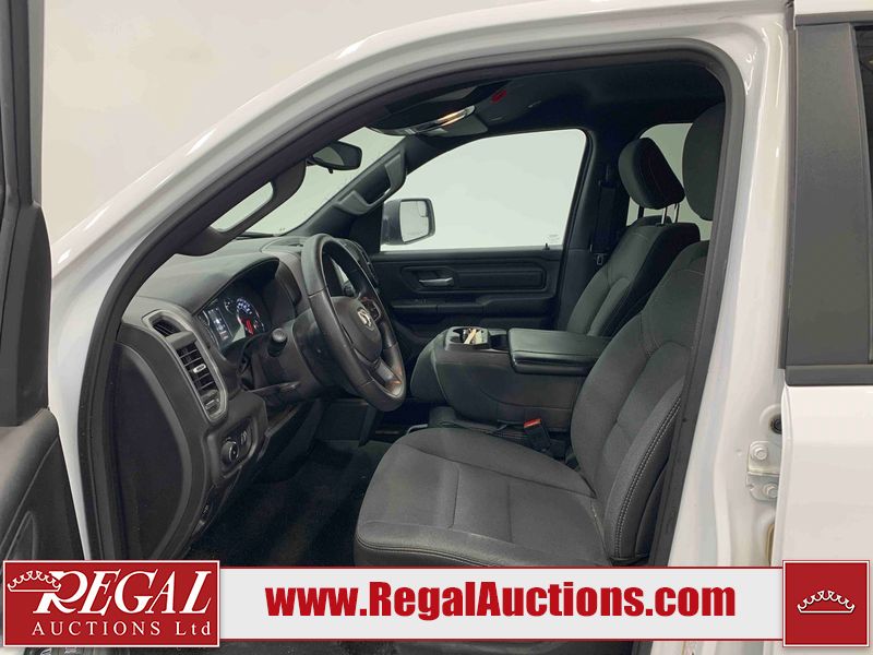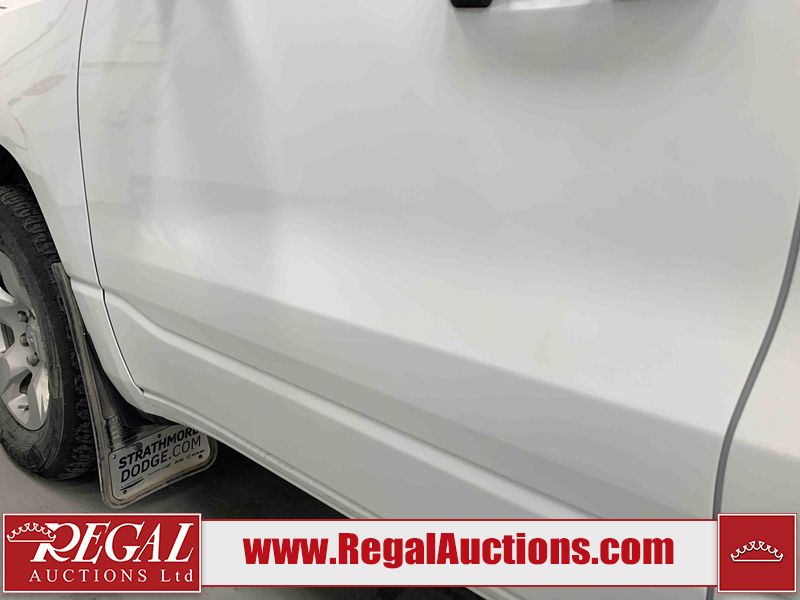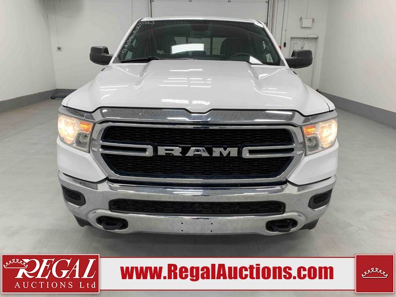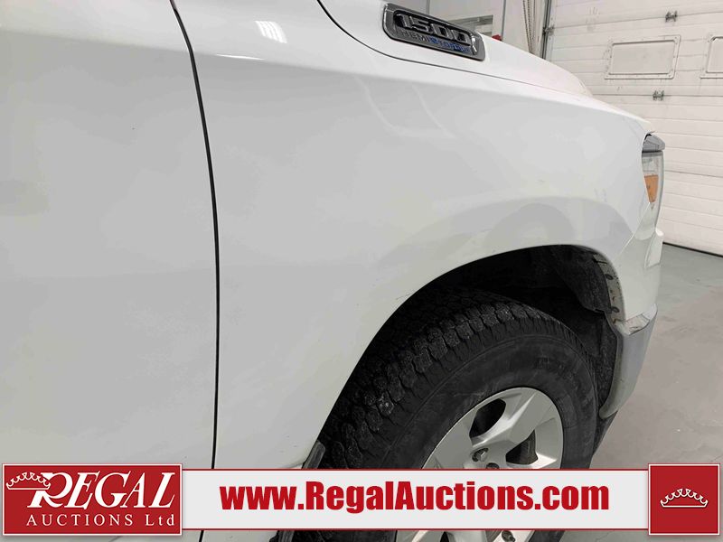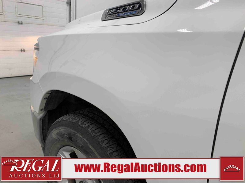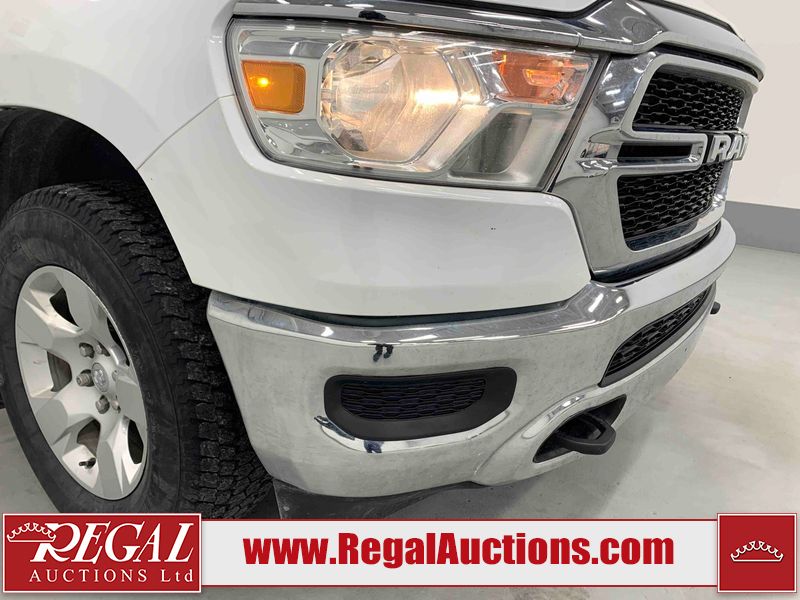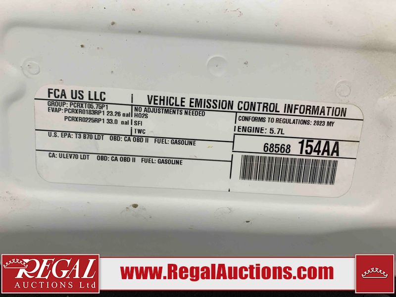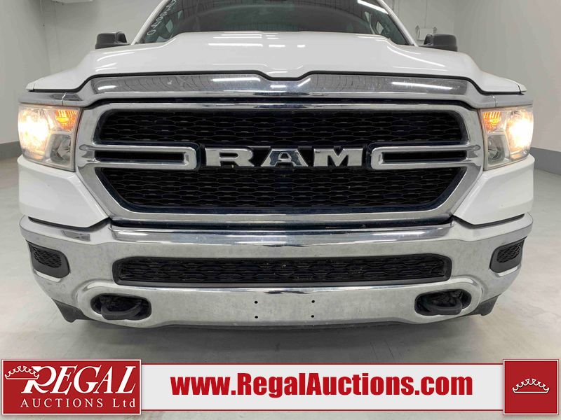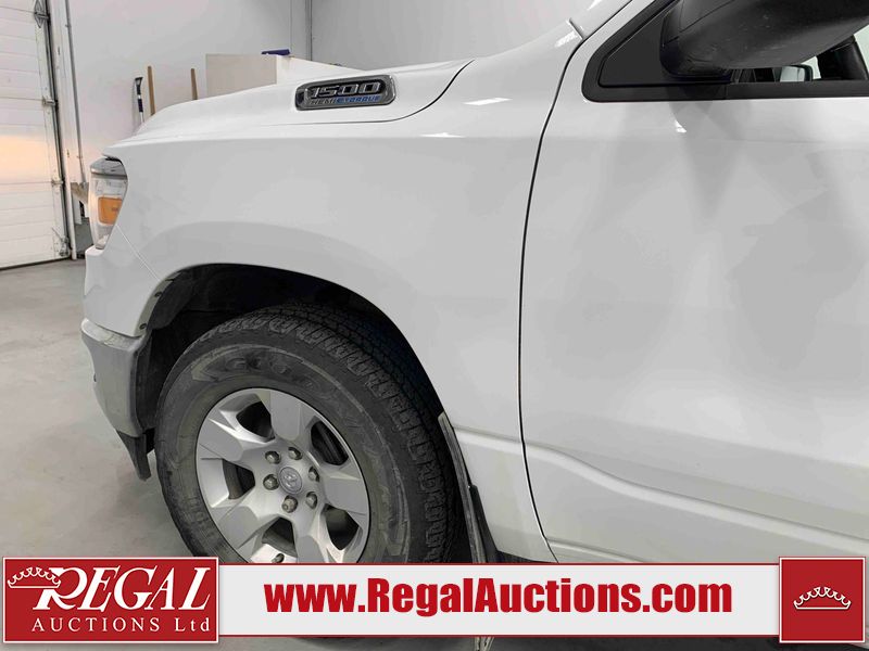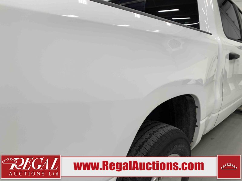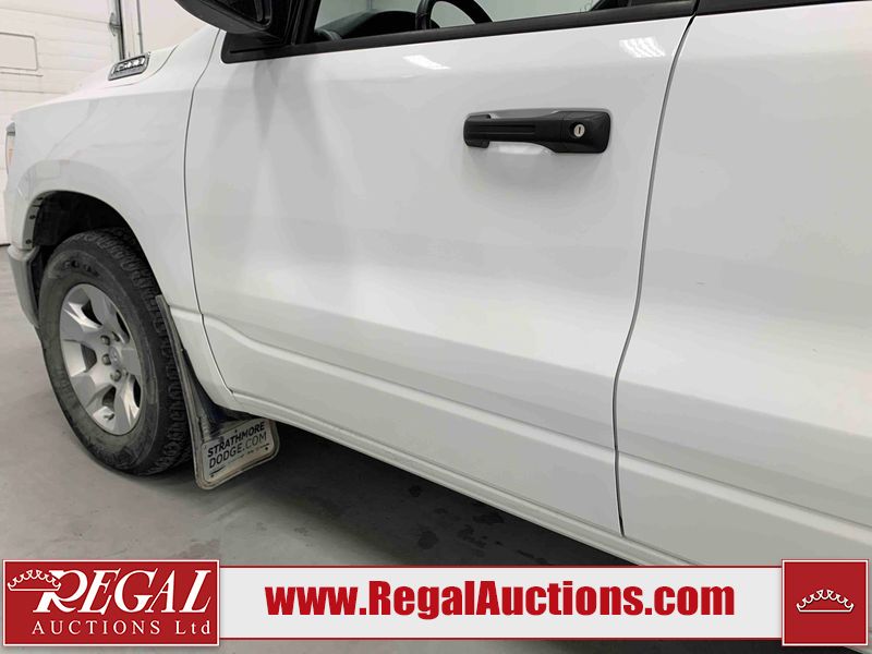 This 2023 RAM 1500 TRADESMAN CREW CAB SWB 4WD 5.7L is powered by a 8 cylinder e-torque gasoline engine and an automatic transmission. It is equipped with four wheel drive. The truck has seats for 6 people. The truck has high mileage for its age. The vehicle has high value options including a backup camera. The body looks to be in good condition overall. There are chips on the front bumper and roof. There are very minor scratches in many areas around the body. There are very minor chips in many areas around the body. There is very minor dent damage on the right rear door. The interior looks to be in fair condition overall. The rear seats are stained. The carpet is dirty. The roofliner is dirty. The windshield is chipped. The rear tires are worn. The front tires have lots of tread remaining.