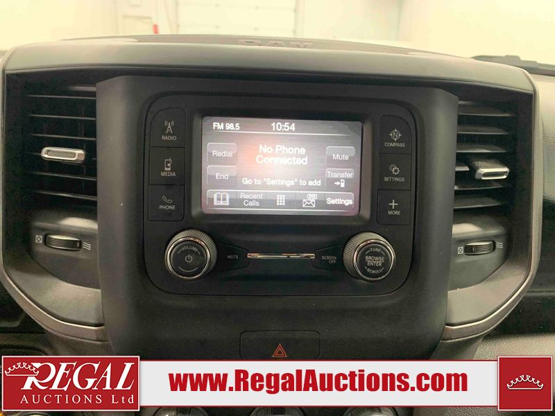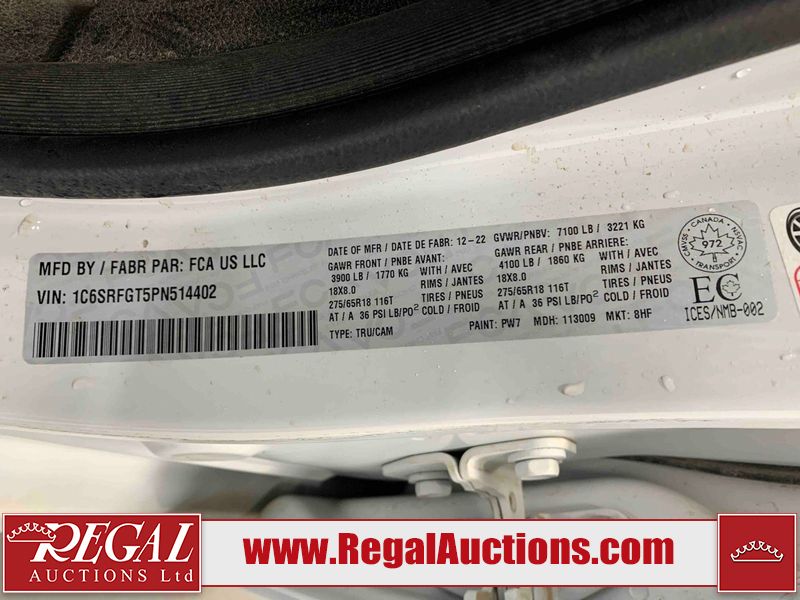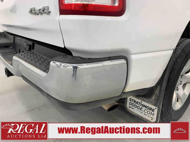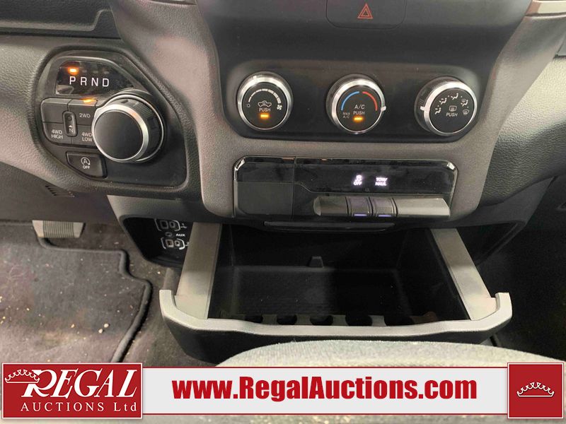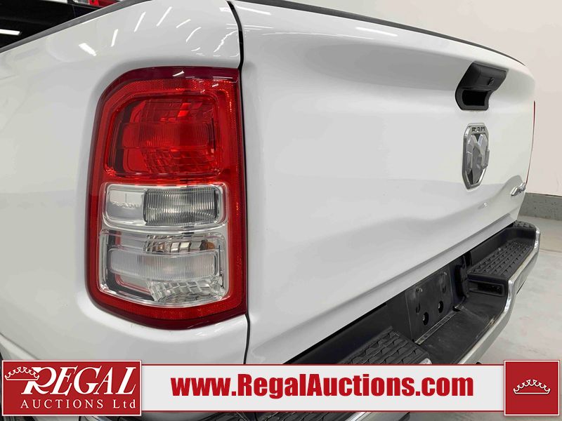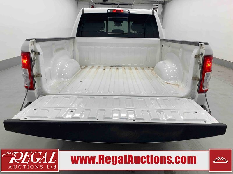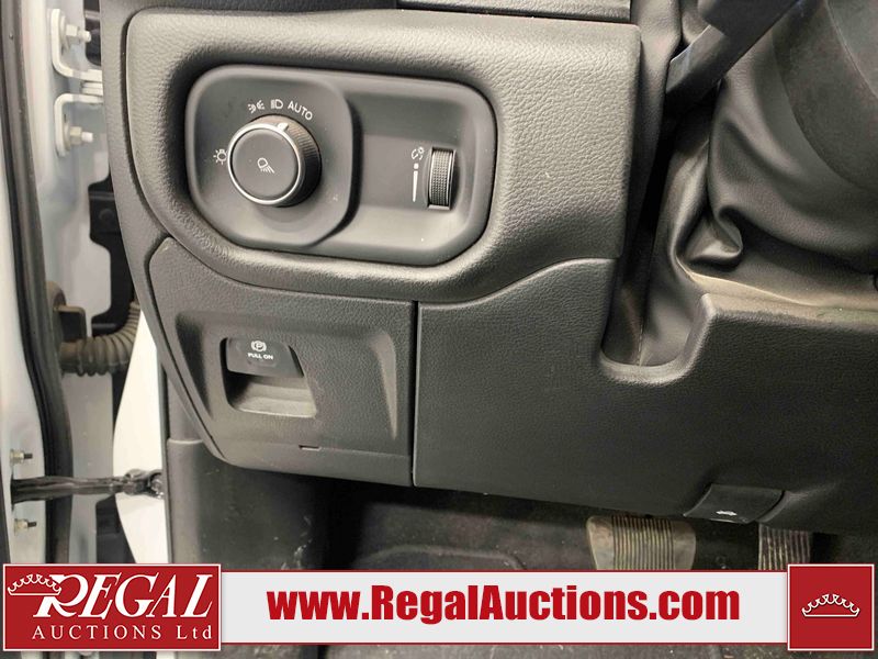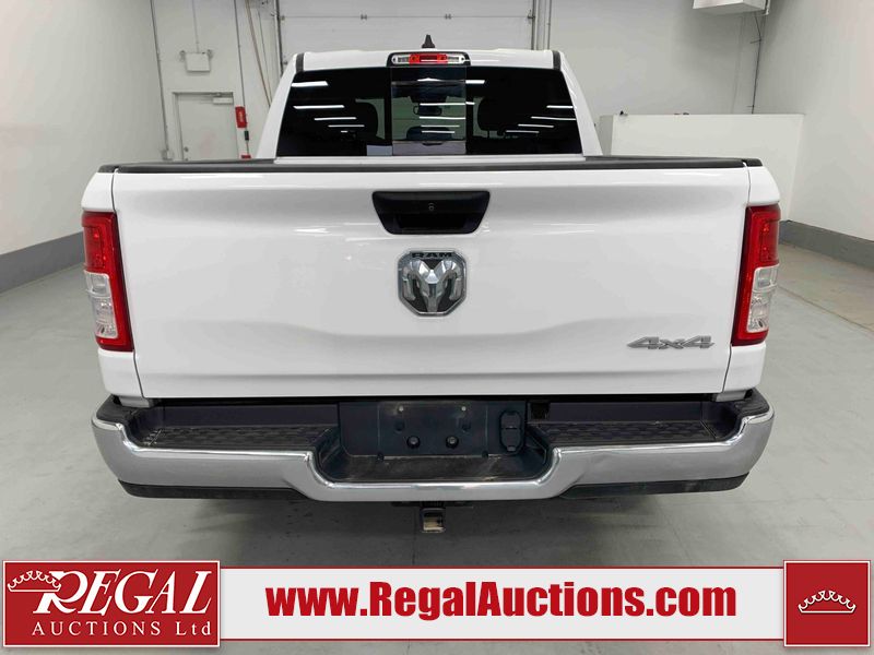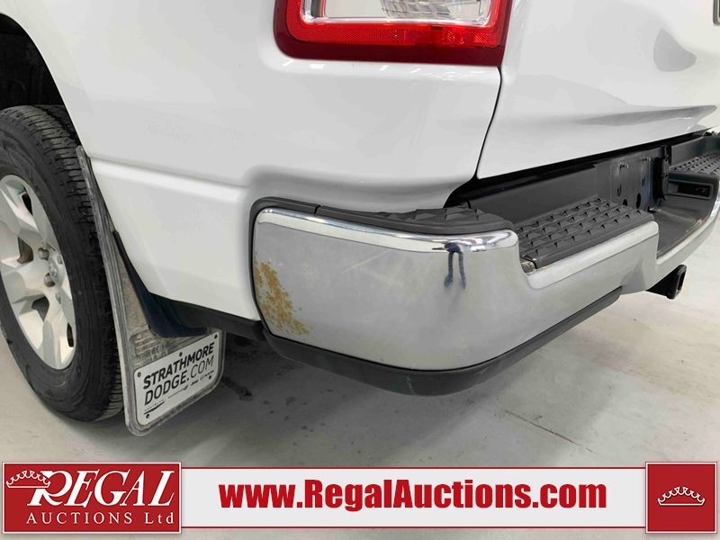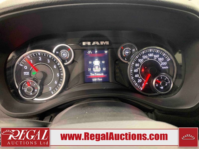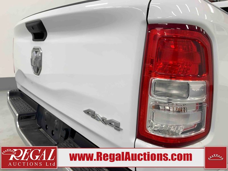 This 2023 RAM 1500 TRADESMAN CREW CAB SWB 4WD 5.7L is powered by a 8 cylinder e-torque gasoline engine and an automatic transmission. It is equipped with four wheel drive. The truck has seats for 6 people. The truck has high mileage for its age. The vehicle has high value options including a backup camera. The body looks to be in good condition overall. There are chips on the front bumper and roof. There are very minor scratches in many areas around the body. There are very minor chips in many areas around the body. There is very minor dent damage on the right rear door. The interior looks to be in fair condition overall. The rear seats are stained. The carpet is dirty. The roofliner is dirty. The windshield is chipped. The rear tires are worn. The front tires have lots of tread remaining.