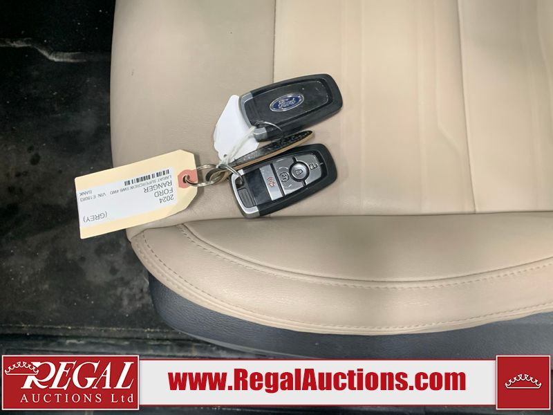 This 2024 FORD RANGER LARIAT SUPERCREW 4WD 2.3L is powered by a turbocharged 4 cylinder gasoline engine and an automatic transmission. It is equipped with four wheel drive. The truck has seats for 5 people. The truck has low mileage for its age. LARIAT is a very popular trim level. The vehicle has high value options including leather upholstery, power seats, heated seats, navigation, and a backup camera. The body looks to be in good condition overall. There are very minor scratches in many areas around the body. The interior looks to be in good condition overall. There is a dent on the R/R Door. The windshield is cracked. All of the tires have lots of tread remaining.