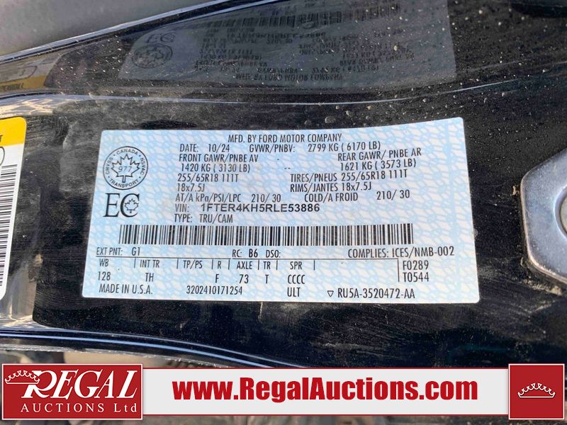 This 2024 FORD RANGER LARIAT SUPERCREW is powered by a 2.3L 4-cylinder gasoline engine and an automatic transmission. It is equipped with four-wheel drive. The truck has seats for 5 people. LARIAT is a very popular trim level. The vehicle has high-value options including leather upholstery, power seats, heated seats, and a backup camera. The Airbag light is on. The vehicle has some mechanical problems. The engine doesn't start and the vehicle is not drivable. It will have to be towed. The suspension is broken. The Air Bags have been deployed. (See Footnote 1) The body looks to be in rough condition overall. The front bumper is broken. There is substantial dent damage on the left rear door. There are minimal chips on the left front fender, left front door, left rear door, left rear fender, right rear fender, right rear door, right front door, and right front fender. There are minimal scratches on the left rear door, left rear fender, right rear fender, right rear door, and right front door. There is paint peeling on the left rear door. There is dent damage on the left rear fender. There are very minor chips in some areas around the body. There are very minor scratches in many areas around the body. The interior looks to be in fair condition overall. The dashboard, driver's seat, passenger seat, rear seats, and doors are dirty. The carpet is dirty. The roofliner is sagging. The roofliner is dirty. The passenger side mirror housing is broken. The passenger side mirror is broken. All of the tires have lots of tread remaining. The right front alloy rim is damaged. This truck is being sold by the fleet department of a company or government body. The vehicle will be sold with the following declarations: Abandoned Vehicle (See Footnote 2), As Is - Where Is (See Footnote 3), Frame Damage (See Footnote 4), Mechanical Problems (See Footnote 1), and True Mileage Unknown (See Footnote 5). Footnotes: 1) We've identified some mechanical problems with the vehicle. However, the vehicle has not undergone a mechanical inspection and our findings are not to be considered a complete evaluation of the vehicle's mechanical condition. Review our Buyer Protection Policy to see how Regal Auctions protects you from undisclosed mechanical problems. 2) This vehicle has been abandoned by its owner and is being sold by the government. The Vehicle Seizure and Removal Regulation of the Traffic Safety Act of Alberta provides that the purchaser will get good title to the vehicle. Any liens registered against the vehicle will be unenforceable by the creditor. However, the vehicle may continue to have lien registrations against it in the Alberta Registries System. It is the the responsibility of the purchaser to have any lien registrations removed. Regal Auctions will not provide any lien discharge or other paperwork with the exception of a letter from the Government of Alberta authorizing the sale of the vehicle. 3) This vehicle will be sold "AS IS and WHERE IS". The sale will be final. The Buyer Protection Policy will not apply to the purchase of this vehicle. This vehicle is not eligible for return. 4) This vehicle's frame has been damaged and will require repair. 5) The accuracy and history of the odometer reading cannot be verified and the current odometer reading is not believed to be correct. Regal Auctions Ltd. makes no guarantee or warranty, either express or implied, with respect to the data provided in this report. The information has been provided from the consignor and from sources generally believed to be reliable, however the accuracy of this information cannot be guaranteed by Regal Auctions.