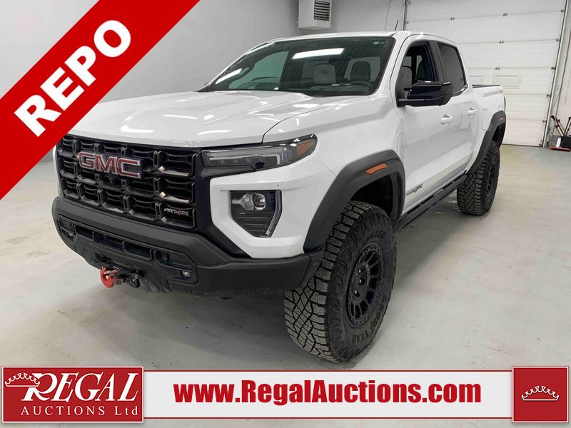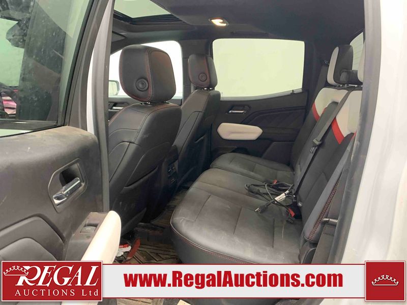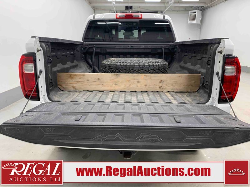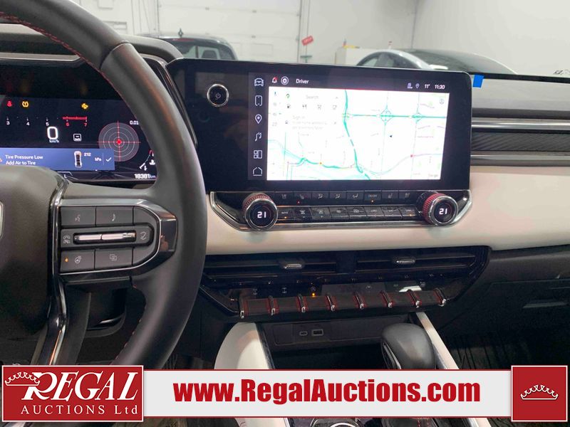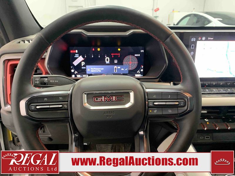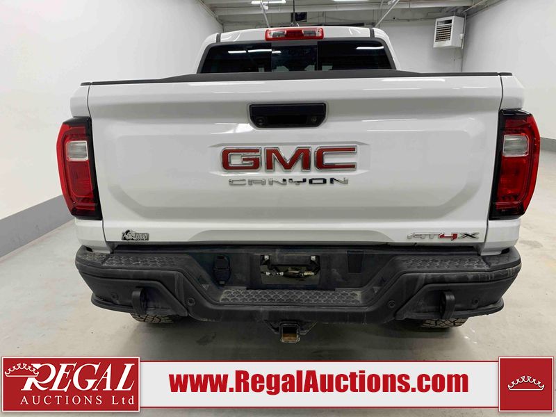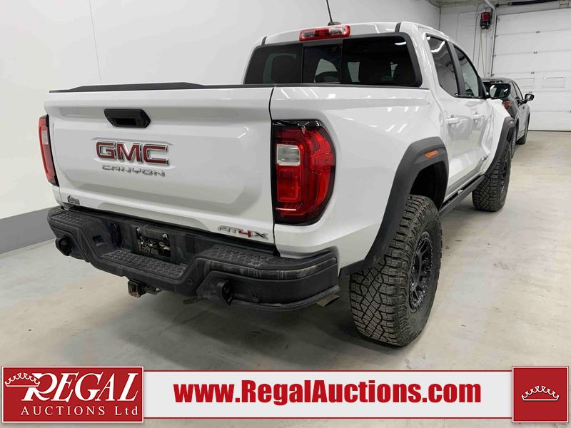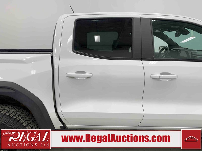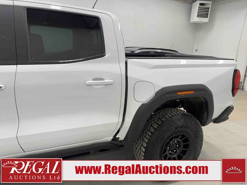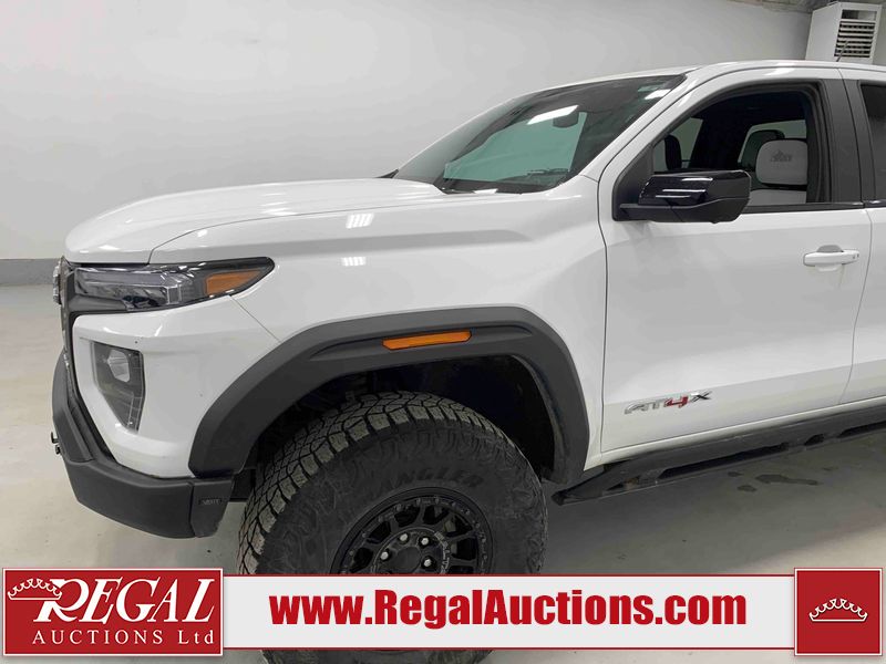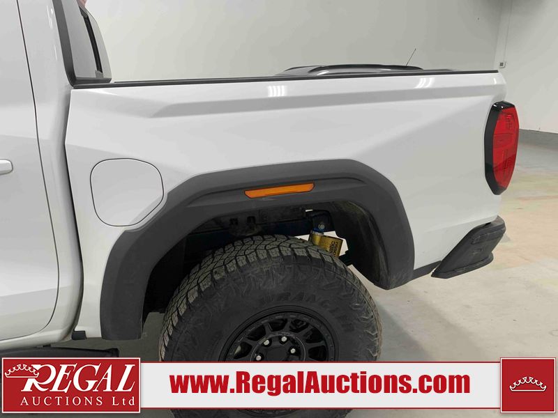 This 2024 GMC CANYON AT4X CREW CAB SWB 4WD 2.7L is powered by a turbocharged 4 cylinder gasoline engine and an automatic transmission. It is equipped with four wheel drive. The truck has seats for 5 people. The truck has low mileage for its age. The vehicle has high value options including leather upholstery, power seats, heated seats, navigation, and a backup camera. The body looks to be in good condition overall. There are slight chips on the left rear fender. There are very minor chips in many areas around the body. There are very minor scratches in many areas around the body. The interior looks to be in good condition overall. The carpet is dirty. The windshield looks to be in good condition. All of the tires have lots of tread remaining.