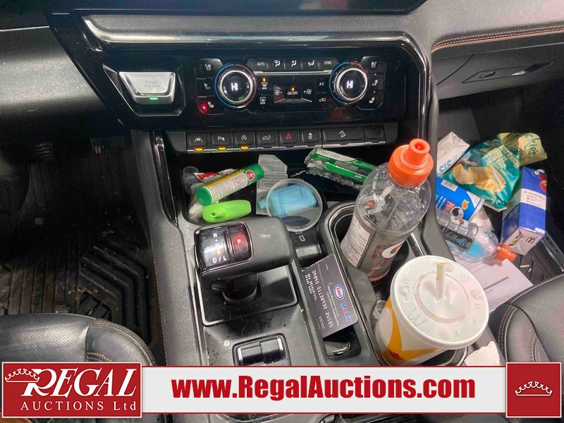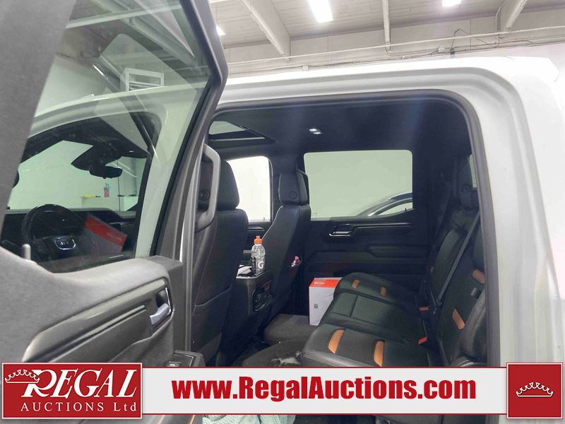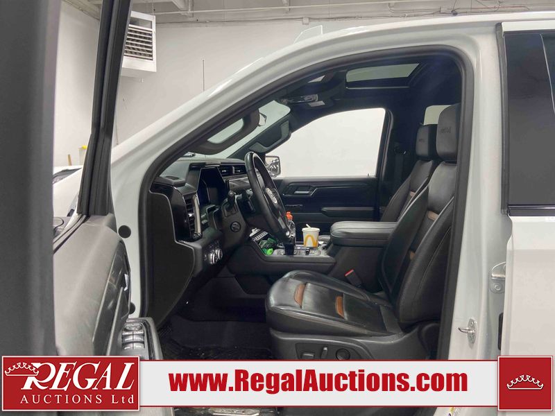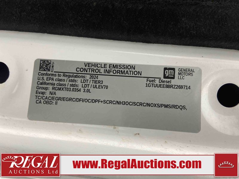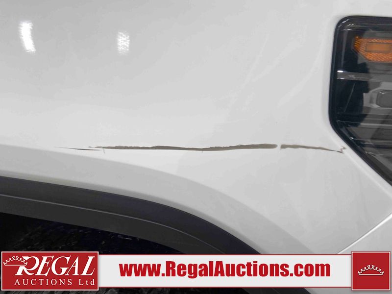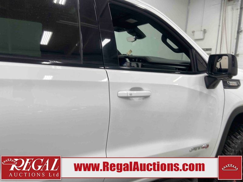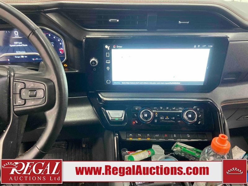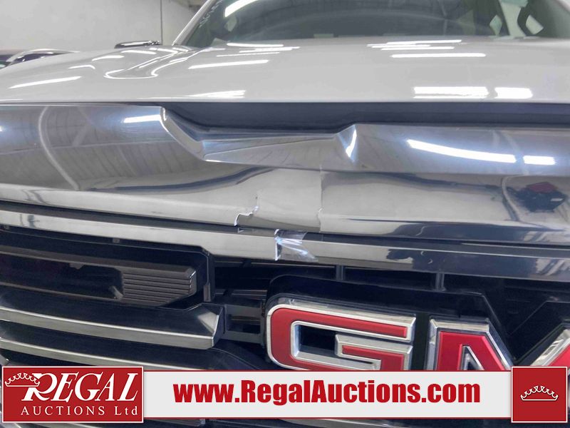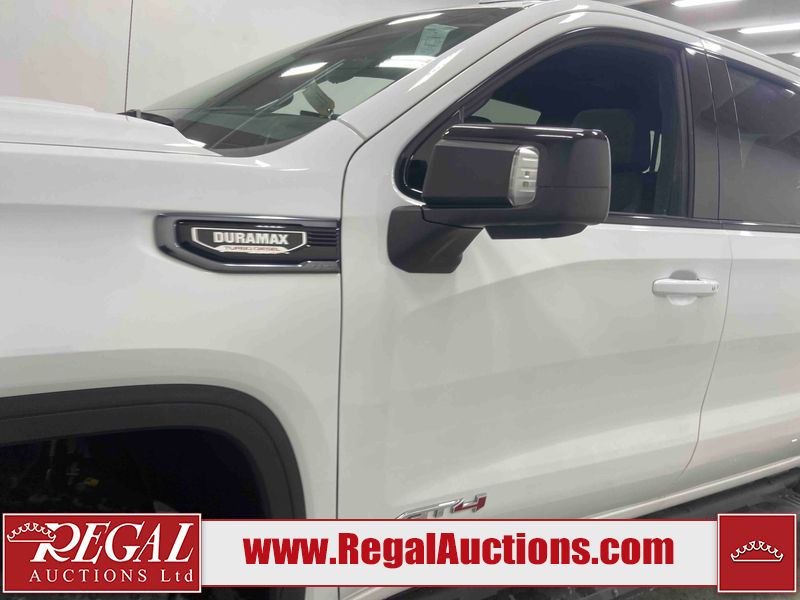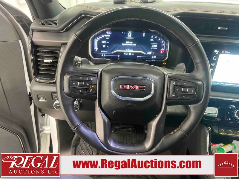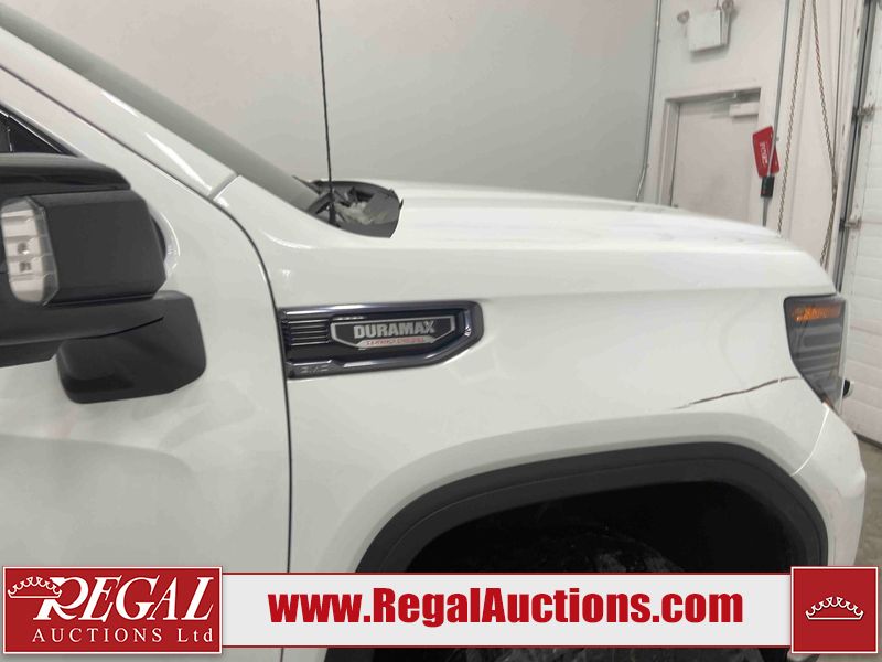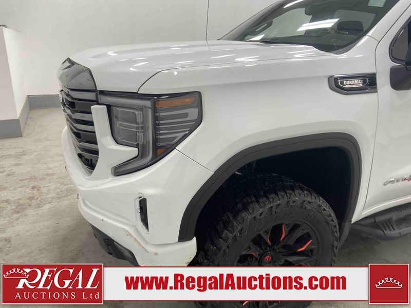 This 2024 GMC SIERRA 1500 AT4 CREW CAB SWB 4WD 3.0L is powered by a turbocharged 6 cylinder diesel engine and an automatic transmission. It is equipped with four wheel drive. The truck has seats for 5 people. The truck has low mileage for its age. The vehicle has high value options including leather upholstery, power seats, heated seats, navigation, and a backup camera. The Check Engine light is on. This unit has been in the front and collision, not all damages can be determined. The body looks to be in fair condition overall. There is misaligned damage to the front bumper. There is very bad dent damage on the front bumper. There is noteworthy paint peeling on the front bumper. The fascia is broken on the front bumper. The grille is cracked. There are slight scratches on the front bumper. There are very minor chips in many areas around the body. There are very minor scratches in many areas around the body. The interior looks to be in fair condition overall. The dashboard is dirty. The carpet is dirty. The windshield is cracked. All of the tires have lots of tread remaining. Aftermarket all the way rims with tires have been mounted, the factory alloys are missing.