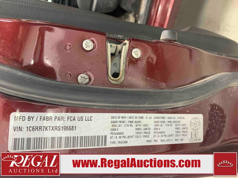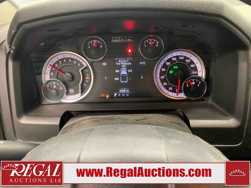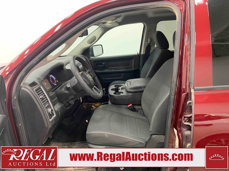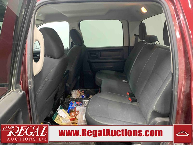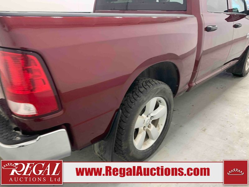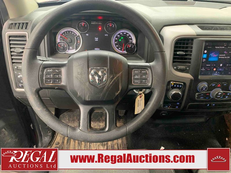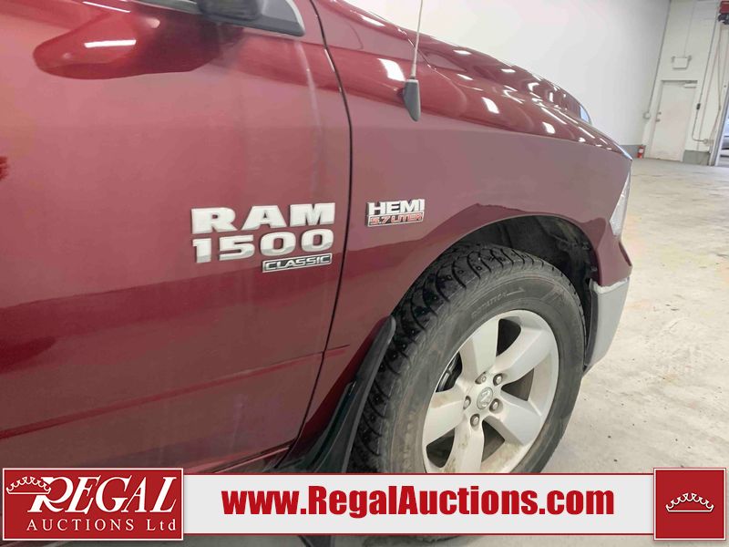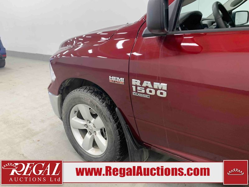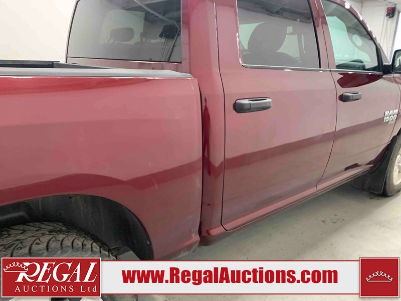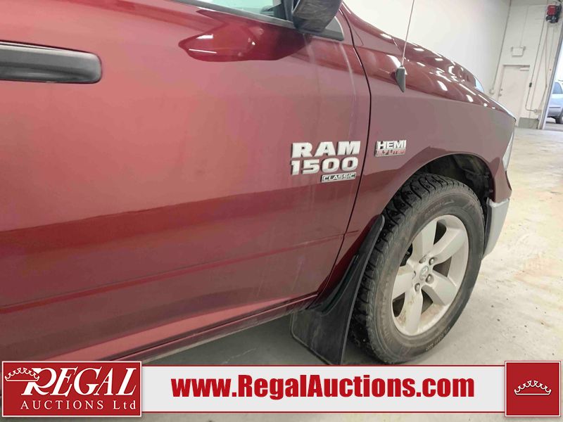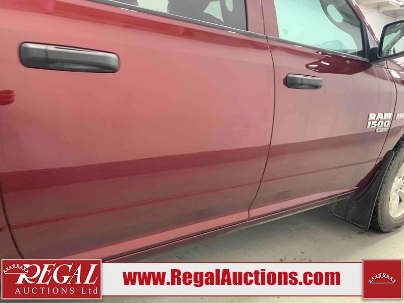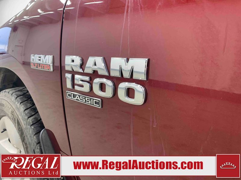 This 2024 RAM 1500 CLASSIC TRADESMAN CREW CAB SWB 4WD 5.7L is powered by a 8 cylinder gasoline engine and an automatic transmission. It is equipped with four wheel drive. The truck has seats for 6 people. The mileage is average considering the truck's age. The vehicle has high value options including a backup camera. The Tire Pressure light is on. The body looks to be in fair condition overall. There are slight chips on the front bumper and hood. There is incidental dent damage on the hood and tail gate. There are scratches on the hood, left rear fender, tail gate, and right rear fender. There are very minor scratches in many areas around the body. There are very minor chips in many areas around the body. The interior looks to be in rough condition overall. The driver's seat, passenger seat, and rear seats are stained. The dashboard, driver's seat, passenger seat, rear seats, and doors are dirty. The carpet is dirty. The windshield is damaged. All of the tires have lots of tread remaining.