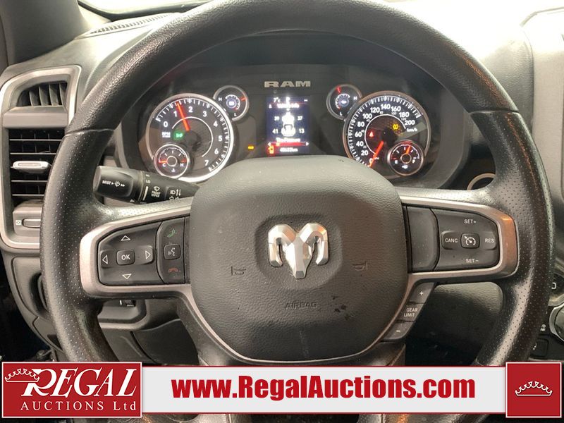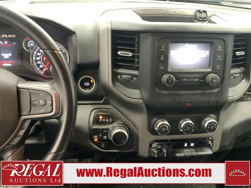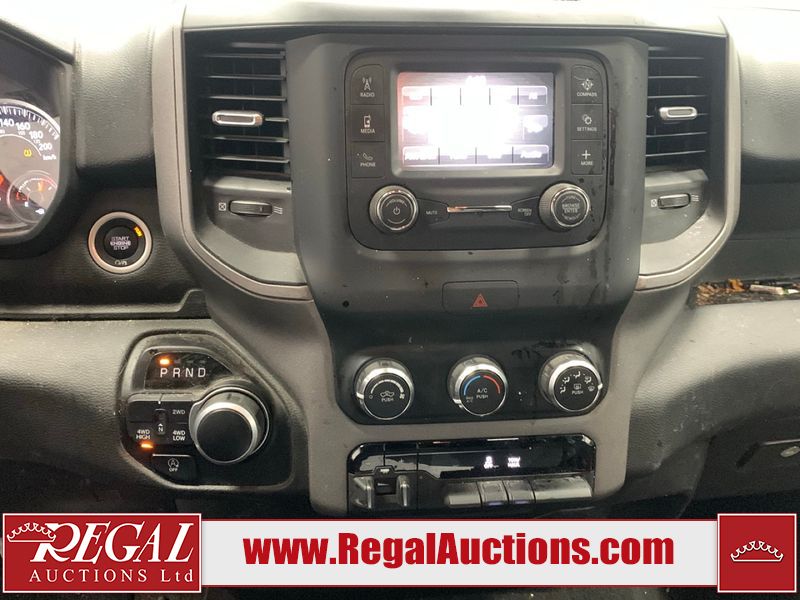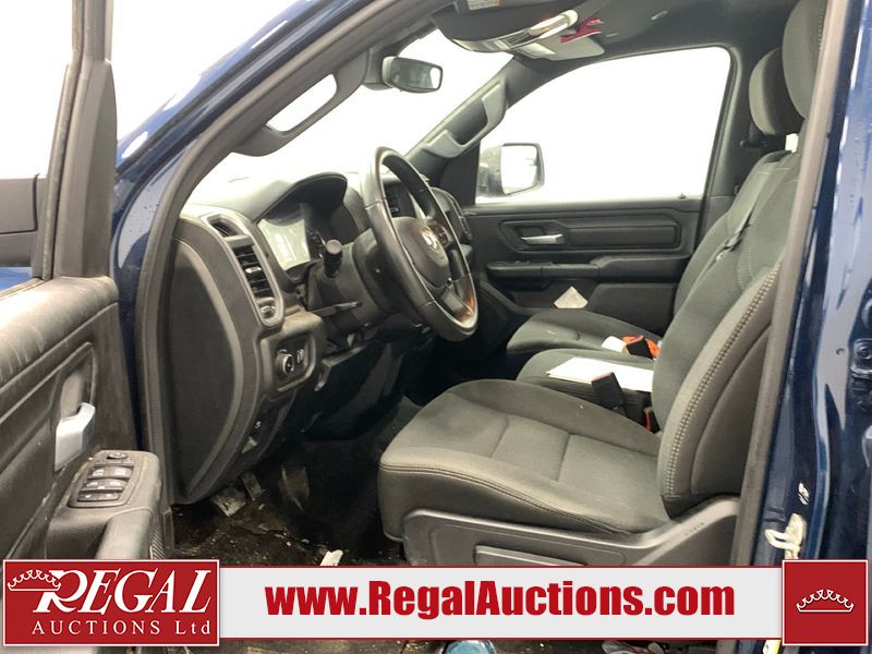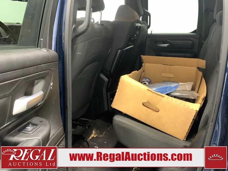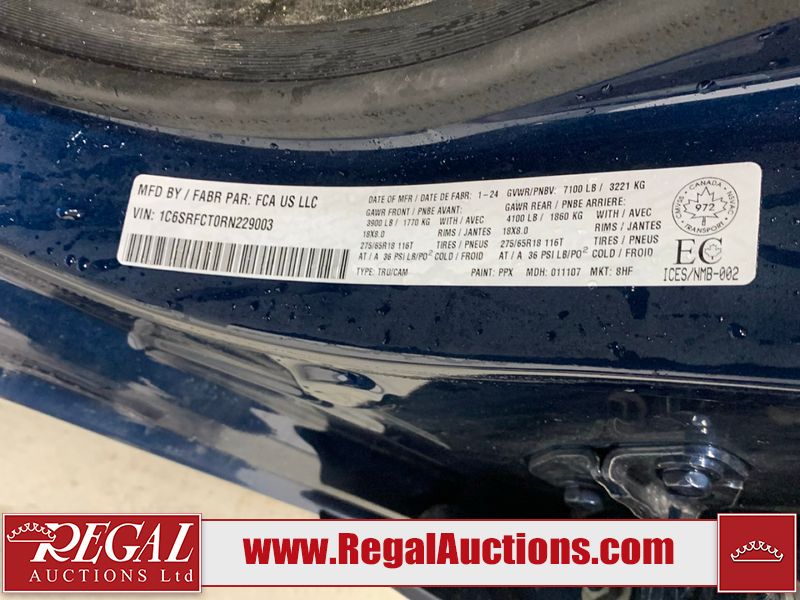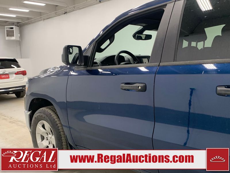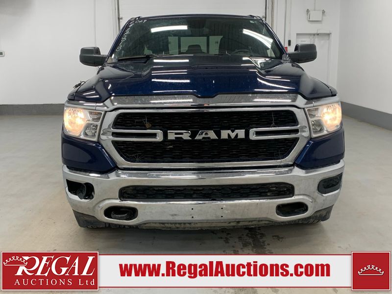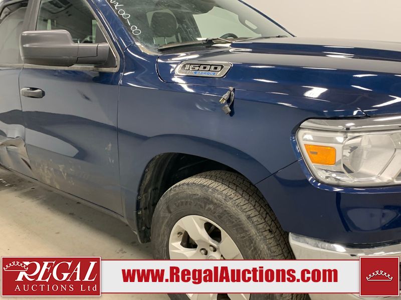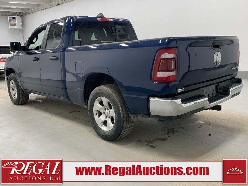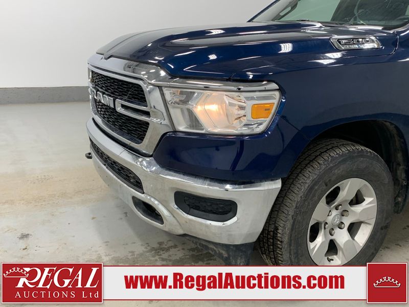This 2024 RAM 1500 TRADESMAN QUAD CAB 4WD SWB 5.7L is powered by a 8 cylinder gasoline engine and an automatic transmission. It is equipped with four wheel drive. The truck has seats for 4 people. The mileage is average considering the truck's age. The body looks to be in fair condition overall. There is extensive dent damage on the right rear door. There are moderate scratches on the right rear door. There are scratches on the hood, left front door, left rear door, left rear fender, tail gate, right rear fender, right front door, and right front fender. There is dent damage on the left front fender and right rear fender. There are slight chips on the right rear door. There are very minor scratches in a few areas around the body. There are very minor chips in many areas around the body. The interior looks to be in fair condition overall. The dashboard, driver's seat, passenger seat, rear seats, and doors are dirty. The windshield is cracked. The rear tires are worn. The front tires have lots of tread remaining.