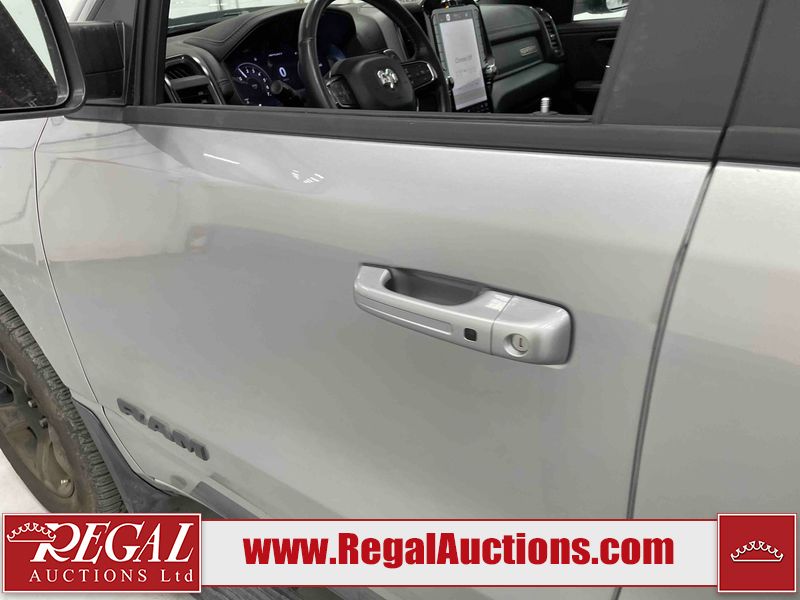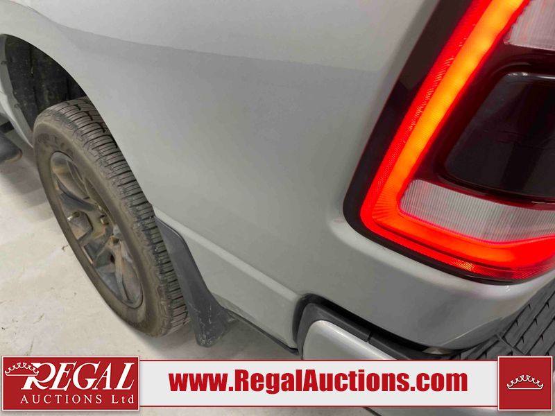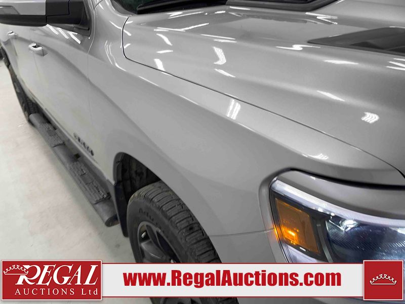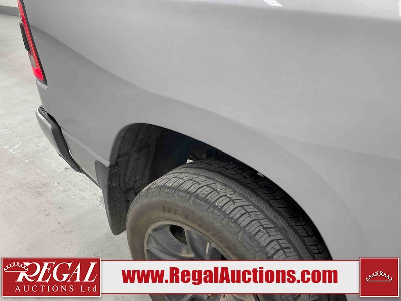 This 2024 RAM 1500 SPORT CREW CAB SWB 4WD 5.7L is powered by a 8 cylinder e-torque gasoline engine and an automatic transmission. It is equipped with four wheel drive. The truck has seats for 5 people. The truck has high mileage for its age. The vehicle has high value options including leather upholstery, power seats, heated seats, navigation, and a backup camera. The body looks to be in rough condition overall. There are conspicuous chips on the front bumper. There are scratches on the front bumper, hood, left front fender, left front door, left rear door, left rear fender, rear bumper, tail gate, right rear fender, right rear door, right front door, and right front fender. There are chips on the grille, hood, left front fender, left front door, left rear door, left rear fender, rear bumper, right rear fender, right rear door, right front door, and right front fender. There is slight dent damage on the left rear fender and rear bumper. There are very minor chips in a few areas around the body. There are very minor scratches on the roof. There is very minor dent damage on the right rear door. The interior looks to be in fair condition overall. The passenger seat, rear seats, and doors are worn. The carpet is dirty. The windshield is cracked. The tires are all worn.