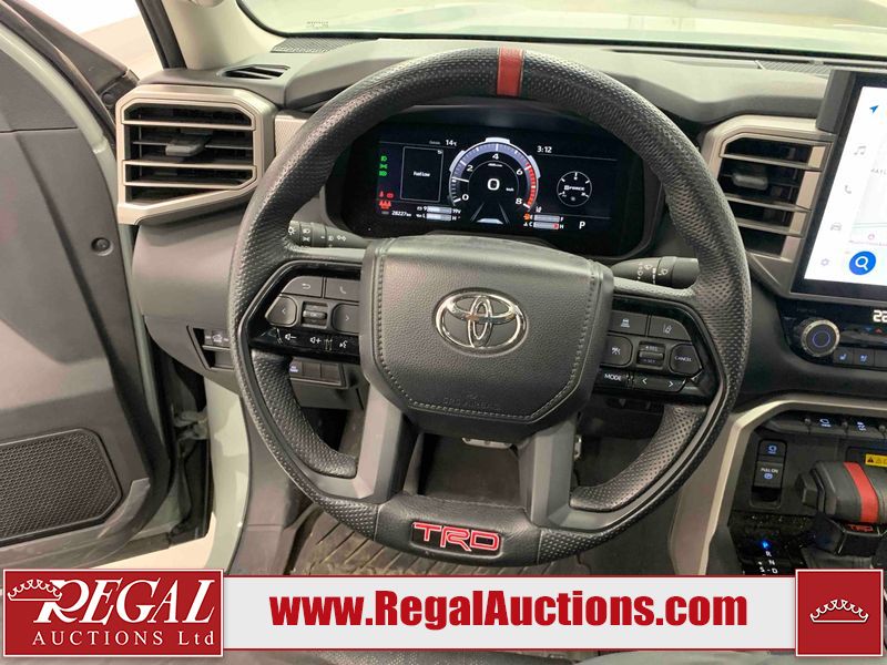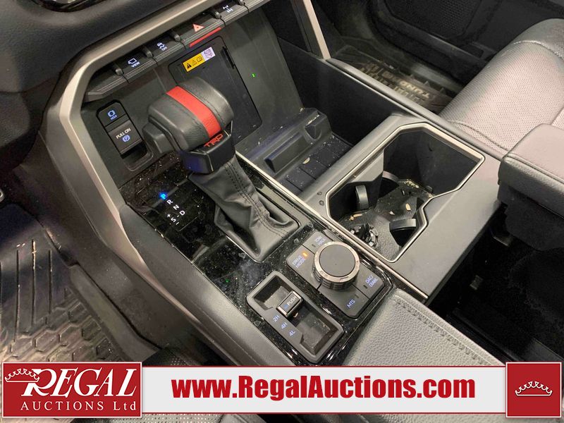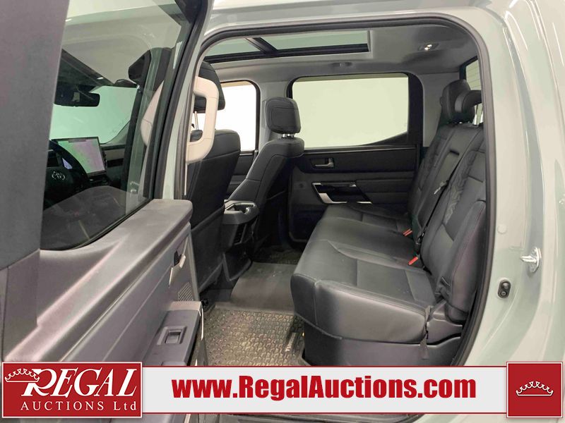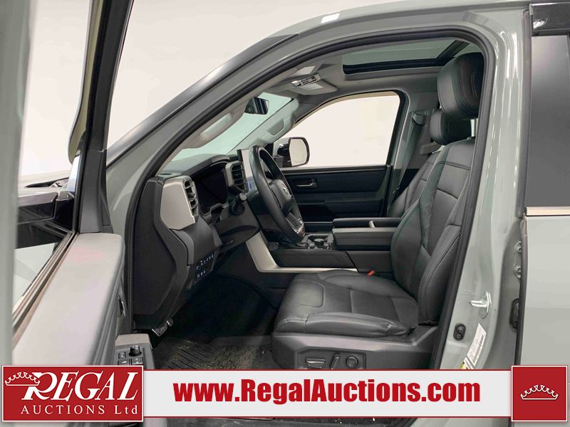 This 2024 TOYOTA TUNDRA LIMITED CREWMAX SWB 4WD 3.4L is powered by a turbocharged 6 cylinder gasoline engine and an automatic transmission. It is equipped with four wheel drive. The truck has seats for 5 people. The mileage is average considering the truck's age. LIMITED is a very popular trim level. The vehicle has high value options including leather upholstery, power seats, heated seats, navigation, and a backup camera. The body looks to be in good condition overall. There are very minor chips in many areas around the body. There are very minor scratches in many areas around the body. There is fascia peeling damage to the left rear door. The interior looks to be in good condition overall. The carpet is dirty. The windshield is cracked. All of the tires have lots of tread remaining.