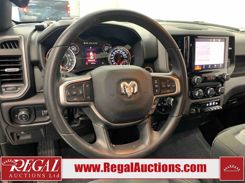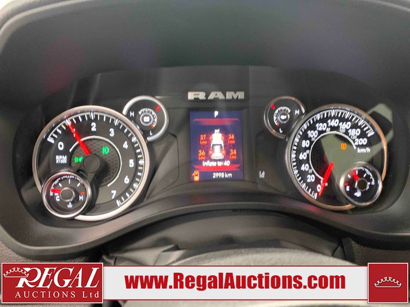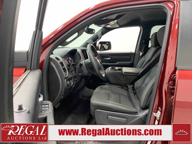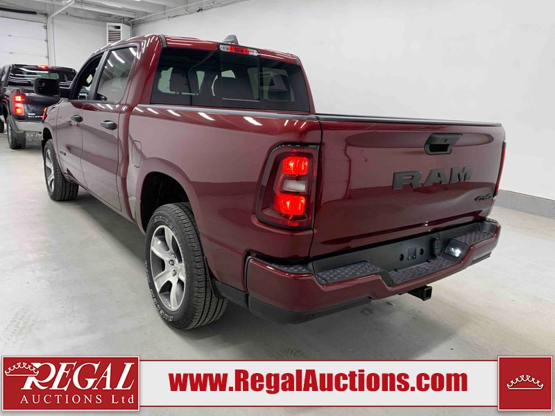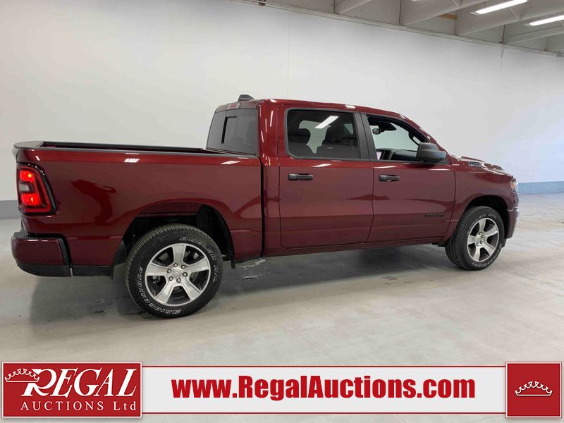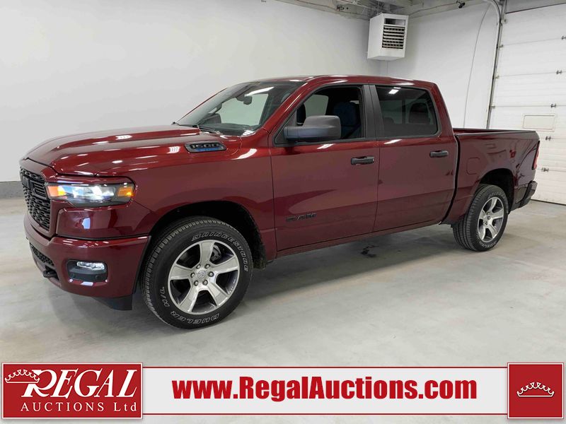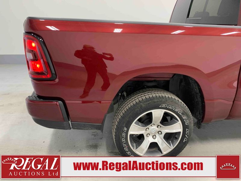 This 2025 RAM 1500 TRADESMAN CREW CAB SWB 4WD 3.6L is powered by a 6 cylinder gasoline engine and an automatic transmission. It is equipped with four wheel drive. The truck has seats for 6 people. The vehicle has high value options including a backup camera. The body looks to be in good condition overall. There are very minor scratches in many areas around the body. There are very minor chips in many areas around the body. The interior looks to be in good condition overall. The carpet is dirty. The windshield looks to be in good condition. All of the tires have lots of tread remaining.