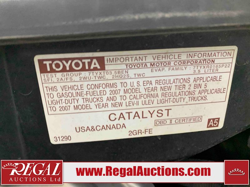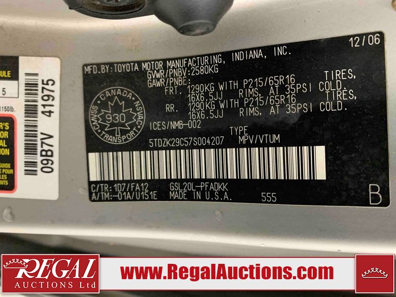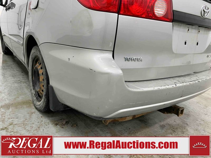 This 2007 TOYOTA SIENNA 4D VAN is powered by a 3.5L 6 cylinder gasoline engine and an automatic transmission. The van has seats for 7 people. The van has high mileage for its age. The vehicle does not have power windows, power locks, a radio, or air conditioning. The Check Engine light and Airbag lights are on. The body looks to be in rough condition overall. There are slight chips on the front bumper, left rear fender, rear bumper, right rear door, and right front fender. There are slight scratches on the front bumper, left rear door, left rear fender, rear bumper, rear door, right rear fender, right rear door, right front door, and right front fender. There is rust on the left front fender, right rear door, and right front fender. There is incidental dent damage on the left rear door, left rear fender, rear door, right rear fender, right rear door, and right front door. There are very minor chips in many areas around the body. There are very minor scratches in some areas around the body. There is very minor dent damage in a few areas around the body. The interior looks to be in good condition overall. The windshield looks to be in good condition. The front tires and the passenger side rear tire are all worn. The driver's side rear tire has lots of tread left. This van is being sold by an automotive broker. Footnotes: 1) We've identified some mechanical problems with the vehicle. However, the vehicle has not undergone a mechanical inspection and our findings are not to be considered a complete evaluation of the vehicle's mechanical condition. Review our Buyer Protection Policy to see how Regal Auctions protects you from undisclosed mechanical problems. Regal Auctions Ltd. makes no guarantee or warranty, either express or implied, with respect to the data provided in this report. The information has been provided from the consignor and from sources generally believed to be reliable, however the accuracy of this information cannot be guaranteed by Regal Auctions.