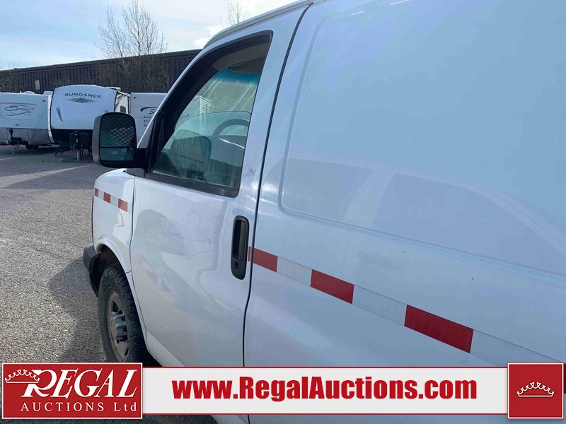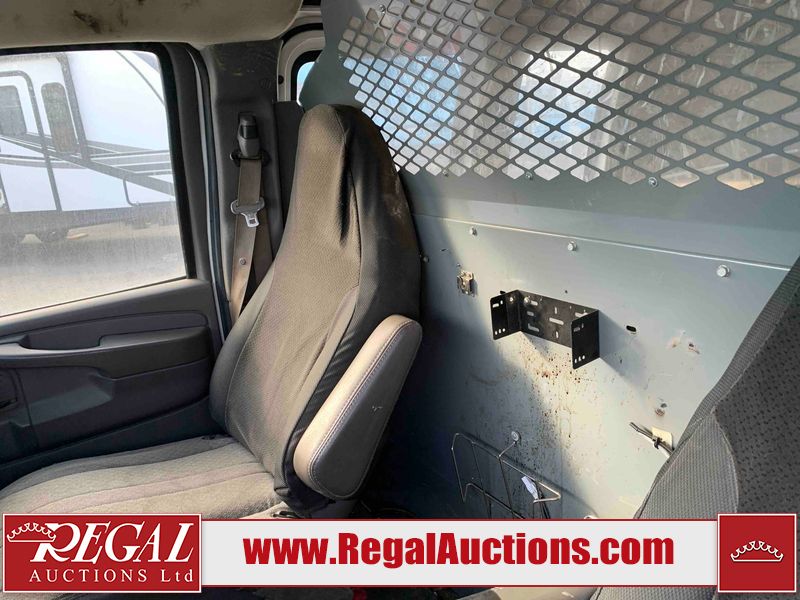 This 2008 CHEVROLET EXPRESS 3500 CARGO VAN RWD is powered by a 8 cylinder gasoline engine and an automatic transmission. The van has seats for 2 people. The mileage is average considering the van 's age. The odometer is in miles and its reading, 159,711 miles, translates into 255,537 kilometers. The vehicle does not have power windows. The vehicle has some mechanical problems. The engine doesn't start and the vehicle is not drivable. It will have to be towed. The body looks to be in rough condition overall. There is moderate rust on the front bumper and right rear fender. There is some paint peeling on the hood, left front fender, left front door, left rear fender, rear door, right rear fender, right rear door, and right front door. There are chips on the front bumper, hood, roof, left front fender, left front door, left rear fender, rear bumper, rear door, right rear fender, right rear door, right front door, and right front fender. There are incidental scratches on the front bumper, hood, left front door, left rear fender, rear bumper, rear door, right rear fender, right rear door, right front door, and right front fender. There is incidental dent damage on the roof, rear bumper, and rear door. There are chips on the grille. There are scratches on the left front fender. The interior looks to be in fair condition overall. The dashboard, driver's seat, passenger seat, rear seats, and doors are dirty. The windshield looks to be in good condition. All of the tires have lots of tread remaining.