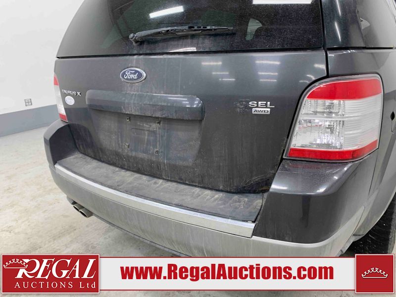 This 2008 FORD TAURUS X SEL 4D VAN is powered by a 263HP 3.5L 6 cylinder gasoline engine and an automatic transmission. It is equipped with four wheel drive. The van has seats for 5 people. The van has high mileage for its age. The vehicle has high value options including power seats and a backup camera. The Tire Pressure light is on. The body looks to be in rough condition overall. There are a fair amount of chips on the front bumper. There is noteworthy paint peeling on the right rear door. There are minor scratches on the front bumper, hood, roof, left front fender, left front door, left rear door, left rear fender, rear bumper, rear door, right rear fender, right rear door, right front door, and right front fender. There are chips on the hood, roof, left front fender, left front door, left rear door, left rear fender, rear bumper, rear door, right rear fender, right rear door, right front door, and right front fender. There is paint peeling on the hood. There are very minor chips on the grille. The fog lights are broken. The interior looks to be in fair condition overall. There are moderate stained on the driver's seat, passenger seat, and rear seats. The windshield is chipped. The tires are all worn. This van is being sold by a franchise dealership. The vehicle will be sold with the following declarations: Dealership Trade-In (See Footnote 1). Footnotes: 1) This vehicle is being sold on behalf of a franchise dealership. Franchise Dealerships are automotive sales companies who are directly connected to an automotive manufacturer like Ford, Tesla, Honda, BMW, or similar. Regal Auctions Ltd. makes no guarantee or warranty, either express or implied, with respect to the data provided in this report. The information has been provided from the consignor and from sources generally believed to be reliable, however the accuracy of this information cannot be guaranteed by Regal Auctions.