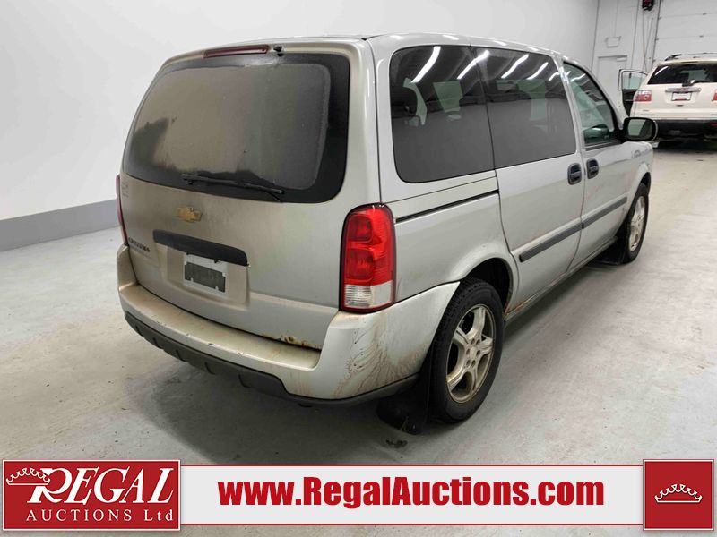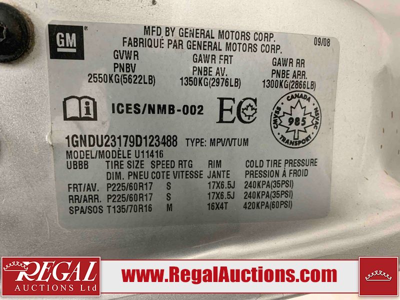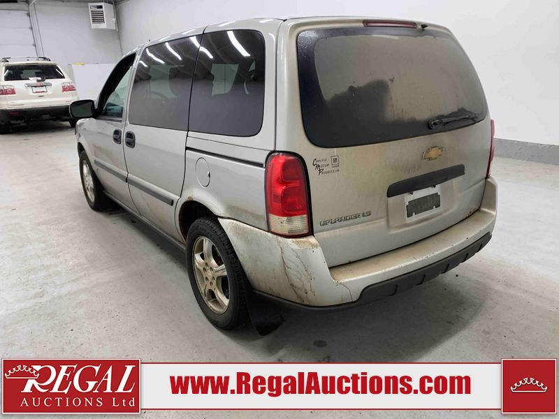 This 2009 CHEVROLET UPLANDER 4D SPORTS VAN is powered by a 3.9L V6 gasoline engine and an automatic transmission. The van has seats for 7 people. The van has high mileage for its age. The ABS light is on. The body looks to be in fair condition overall. There is conspicuous rust on the left rear fender and right rear fender. There are some scratches on the rear bumper. There are slight chips on the front bumper, hood, and left front fender. There is paint peeling on the front bumper. There is incidental dent damage on the hood and rear bumper. There are scratches on the left front door, left rear door, left rear fender, right rear fender, right rear door, right front door, and right front fender. There are very minor chips on the right front door. The interior looks to be in good condition overall. There are minor cigarette burns on the driver's seat. The carpet is dirty. The windshield looks to be in good condition. All of the tires have lots of tread remaining. This van is being sold by a franchise dealership. The vehicle will be sold with the following declarations: Dealership Trade-In (See Footnote 1). Footnotes: 1) This vehicle is being sold on behalf of a franchise dealership. Franchise Dealerships are automotive sales companies who are directly connected to an automotive manufacturer like Ford, Tesla, Honda, BMW, or similar. Regal Auctions Ltd. makes no guarantee or warranty, either express or implied, with respect to the data provided in this report. The information has been provided from the consignor and from sources generally believed to be reliable, however the accuracy of this information cannot be guaranteed by Regal Auctions.