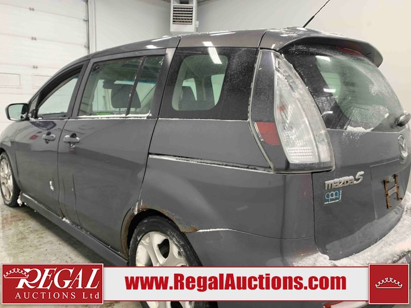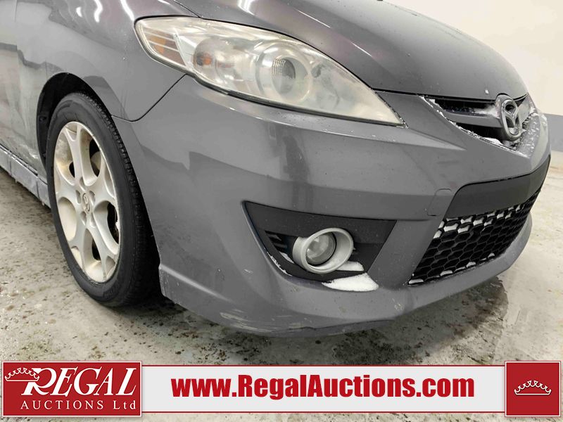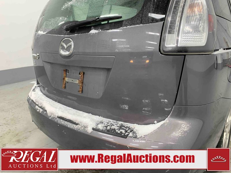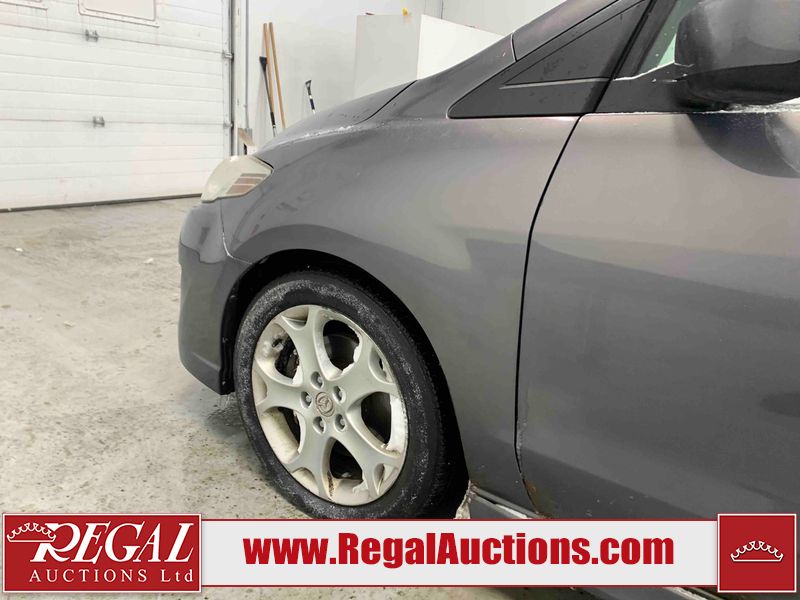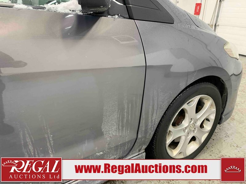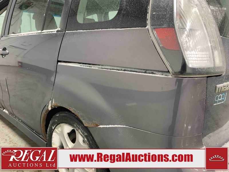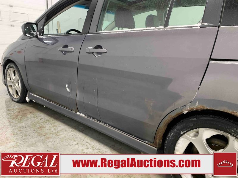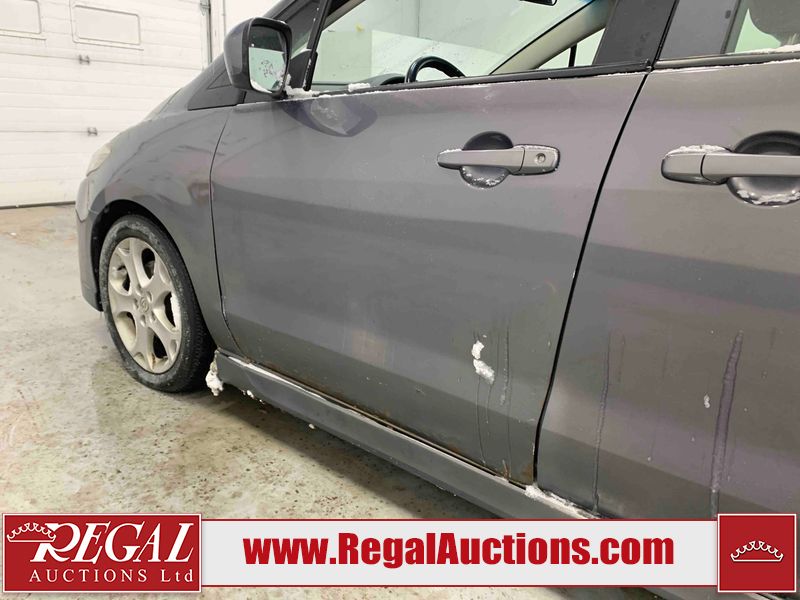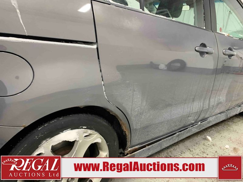 This 2010 MAZDA MAZDA5 4D WAGON is powered by a 2.3L 4-cylinder gasoline engine and an automatic transmission. The van has seats for 6 people. The van has high mileage for its age. The vehicle has high-value options including a sunroof, leather upholstery, and heated seats. The body looks to be in fair condition overall. There is some rust on the left front door, left rear door, left rear fender, right rear fender, and right rear door. There are minor chips on the front bumper, hood, roof, and rear bumper. There are minimal scratches on the front bumper and rear bumper. There is slight rust on the left front fender. There are very minor chips in many areas around the body. There are very minor scratches in many areas around the body. The interior looks to be in good condition overall. The windshield looks to be in good condition. The front tires and the passenger side rear tire are all worn. The driver's side rear tire has lots of tread left. This van is being sold by an automotive broker. Regal Auctions Ltd. makes no guarantee or warranty, either express or implied, with respect to the data provided in this report. The information has been provided from the consignor and from sources generally believed to be reliable, however the accuracy of this information cannot be guaranteed by Regal Auctions.