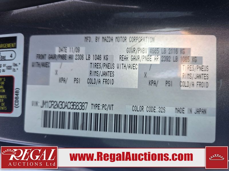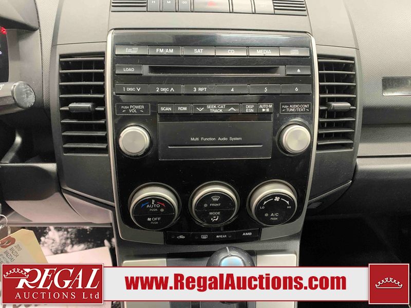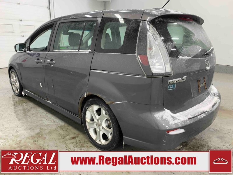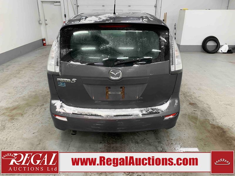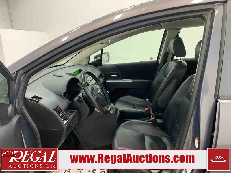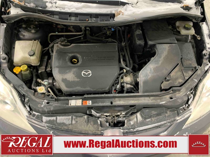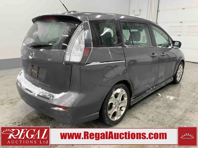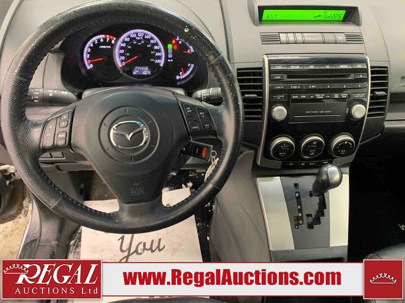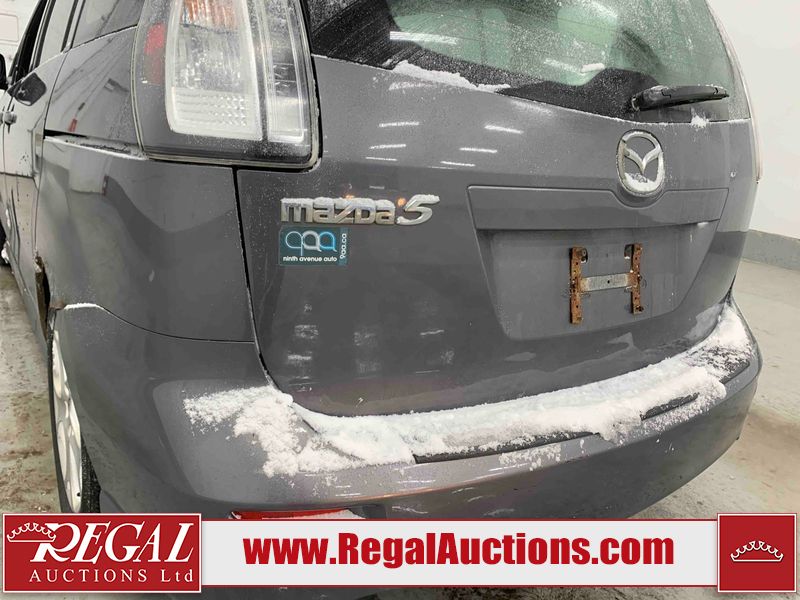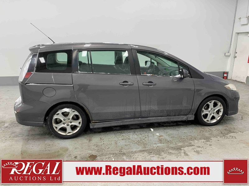 This 2010 MAZDA MAZDA5 4D WAGON is powered by a 2.3L 4-cylinder gasoline engine and an automatic transmission. The van has seats for 6 people. The van has high mileage for its age. The vehicle has high-value options including a sunroof, leather upholstery, and heated seats. The body looks to be in fair condition overall. There is some rust on the left front door, left rear door, left rear fender, right rear fender, and right rear door. There are minor chips on the front bumper, hood, roof, and rear bumper. There are minimal scratches on the front bumper and rear bumper. There is slight rust on the left front fender. There are very minor chips in many areas around the body. There are very minor scratches in many areas around the body. The interior looks to be in good condition overall. The windshield looks to be in good condition. The front tires and the passenger side rear tire are all worn. The driver's side rear tire has lots of tread left. This van is being sold by an automotive broker. Regal Auctions Ltd. makes no guarantee or warranty, either express or implied, with respect to the data provided in this report. The information has been provided from the consignor and from sources generally believed to be reliable, however the accuracy of this information cannot be guaranteed by Regal Auctions.