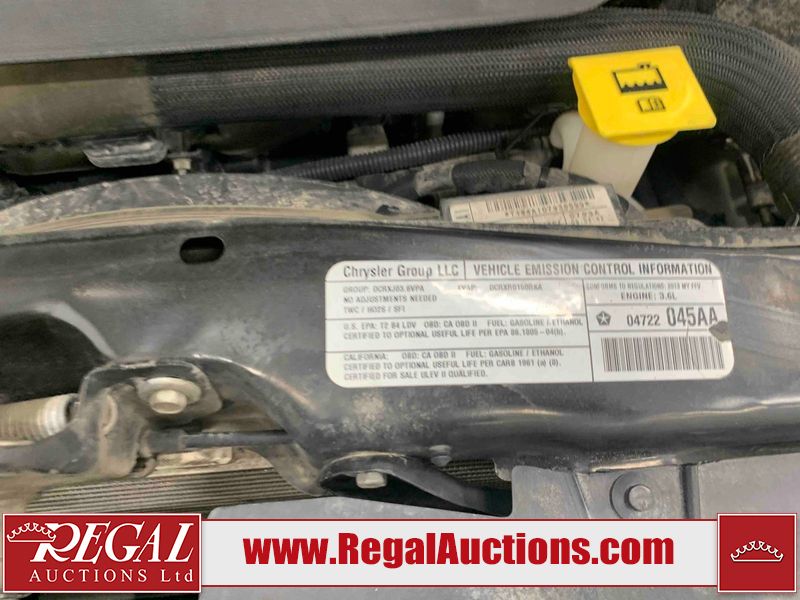 This 2013 DODGE GRAND CARAVAN SE SPORTS VAN is powered by a 3.6L V6 gasoline engine and an automatic transmission. The van has seats for 7 people. The van has low mileage for its age. The body looks to be in fair condition overall. There are incidental scratches on the front bumper, hood, roof, and rear bumper. There is slight paint peeling on the hood. There is minimal rust on the roof, left front fender, left rear fender, and right rear fender. There are chips on the rear bumper. There are very minor chips in many areas around the body. There are very minor scratches in many areas around the body. The rear bumper is misaligned. The interior looks to be in good condition overall. There are obvious cigarette burns on the driver's seat. The windshield is cracked. The front tires are nearly bald and should be replaced. The rear tires have lots of tread. This van is being sold by a franchise dealership. The vehicle will be sold with the following declarations: Dealership Trade-In (See Footnote 1). Footnotes: 1) This vehicle is being sold on behalf of a franchise dealership. Franchise Dealerships are automotive sales companies who are directly connected to an automotive manufacturer like Ford, Tesla, Honda, BMW, or similar. Regal Auctions Ltd. makes no guarantee or warranty, either express or implied, with respect to the data provided in this report. The information has been provided from the consignor and from sources generally believed to be reliable, however the accuracy of this information cannot be guaranteed by Regal Auctions.
