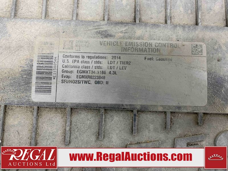 This 2014 CHEVROLET EXPRESS 1500 CARGO VAN RWD is powered by a 4.3 liter 6-cylinder gasoline engine and an automatic transmission. The van has seats for 2 people. The mileage is average considering the van's age. The body looks to be in fair condition overall. There are pronounced chips on the front bumper. There is pronounced rust on the roof and rear bumper. There are minor chips on the hood. There is slight dent damage on the hood and left rear fender. There is slight rust on the left front door, left rear fender, rear door, right rear fender, and right front door. There are incidental scratches on the left front door, left rear fender, rear door, right rear door, and right front door. There are very minor chips in some areas around the body. There are very minor scratches in a few areas around the body. The headlights are broken. The interior looks to be in fair condition overall. The driver's seat is worn. The roofliner is dirty. The windshield is cracked. All of the tires have lots of tread remaining. This van is being sold by the fleet department of a corporation or government body. The vehicle will be sold with the following declarations: Fleet Vehicle (See Footnote 1). Footnotes: 1) This vehicle is a commercially owned work vehicle. Regal Auctions Ltd. makes no guarantee or warranty, either express or implied, with respect to the data provided in this report. The information has been provided from the consignor and from sources generally believed to be reliable, however the accuracy of this information cannot be guaranteed by Regal Auctions.