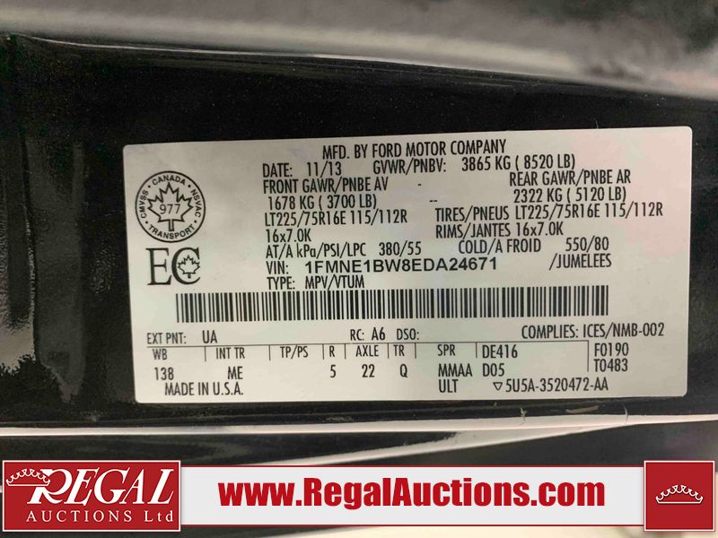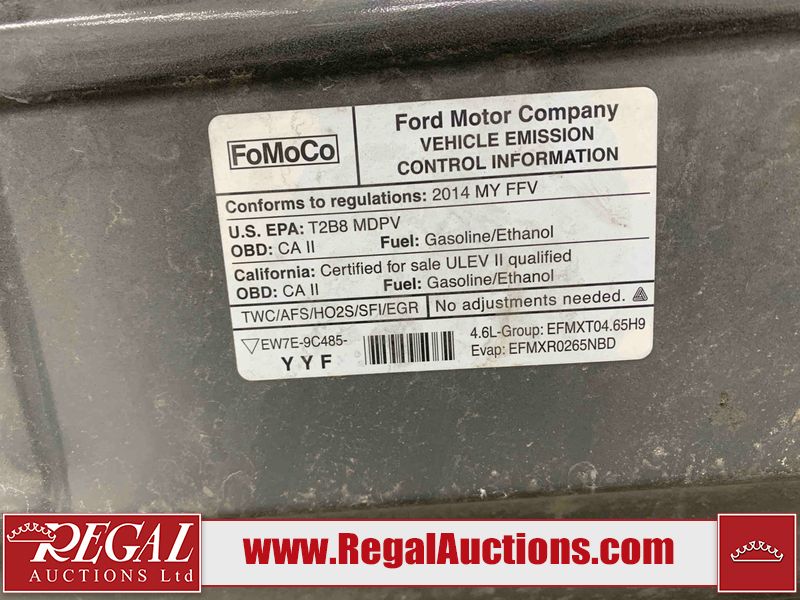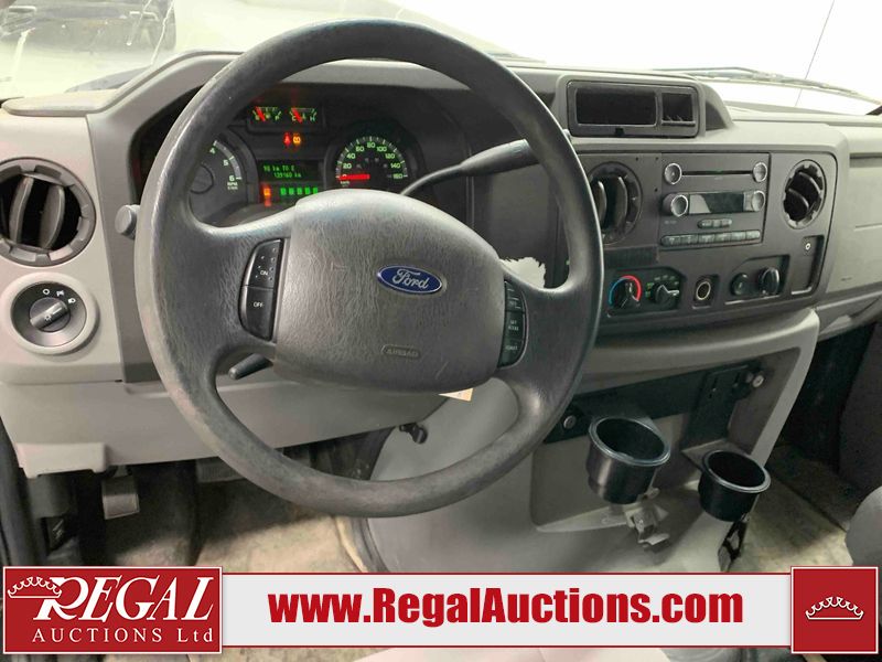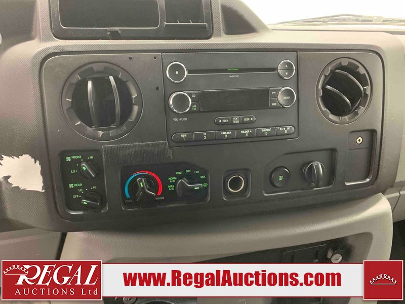 This 2014 FORD E-SERIES E150 PASSENGER VAN is powered by a 4.6L V8 gasoline engine and an automatic transmission. The van has seats for 8 people. The van has low mileage for its age. The vehicle has high-value options including power seats. The vehicle does not have a radio. The Tire Pressure light is on. The body looks to be in fair condition overall. The front bumper has drill holes. There is noteworthy paint peeling on the left rear fender. There are pronounced scratches on the left rear fender and right rear fender. There is incidental rust on the front bumper. There are minor chips on the hood, left front fender, and right rear door. There are scratches on the left front door, rear door, right rear door, and right front door. There are very minor chips in a few areas around the body. There are very minor scratches in a few areas around the body. The interior looks to be in good condition overall. The roofliner is torn. There is a hole in the roof. The windshield looks to be in good condition. All of the tires have lots of tread remaining. This van is being sold by an automotive broker. Regal Auctions Ltd. makes no guarantee or warranty, either express or implied, with respect to the data provided in this report. The information has been provided from the consignor and from sources generally believed to be reliable, however the accuracy of this information cannot be guaranteed by Regal Auctions.