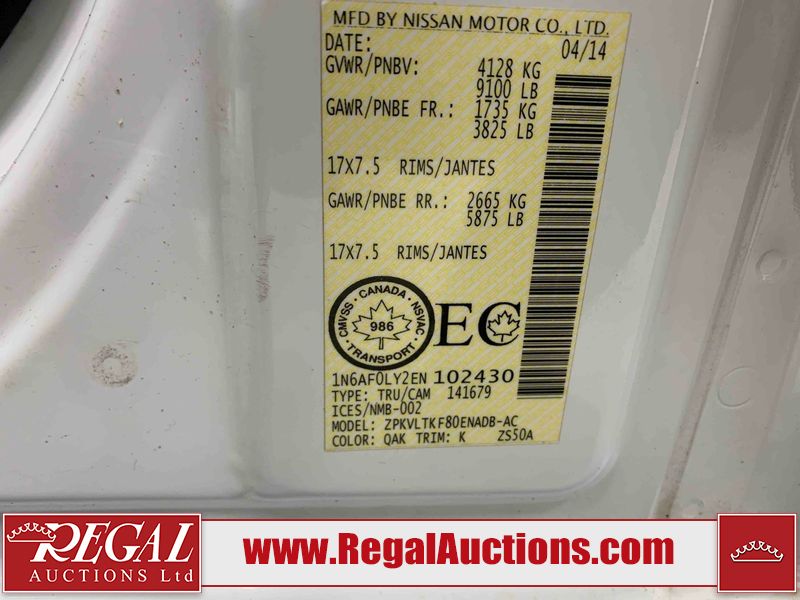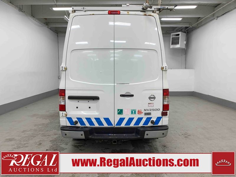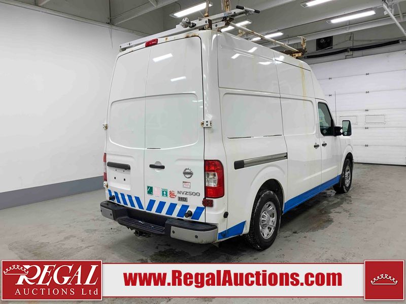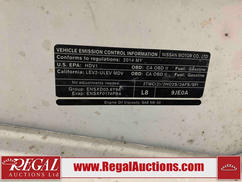 This 2014 NISSAN NV 2500 HD CARGO VAN is powered by a 8 cylinder gasoline engine and an automatic transmission. The van has seats for 2 people. The van has high mileage for its age. The vehicle has high value options including leather upholstery and a backup camera. The Check Engine light is on. The body looks to be in rough condition overall. There is moderate rust on the roof, right rear fender, and right rear door. There is a fair amount of paint overspray on the roof. There is a fair amount of paint peeling on the right rear fender. There is slight rust on the front bumper, left front fender, left rear fender, and right front fender. There are minimal chips on the front bumper, hood, left rear fender, right rear fender, and right rear door. There is incidental paint overspray on the hood. There is minimal paint peeling on the left rear fender and rear door. There are slight scratches on the rear door. There is dent damage on the rear door. There are chips in some areas around the body. There are scratches in a few areas around the body. The interior looks to be in fair condition overall. The driver's seat is worn. The driver's seat and passenger seat are stained. The windshield is cracked. The passenger side mirror is broken. All of the tires have lots of tread remaining. This van is being sold by the fleet department of a corporation or government body. The vehicle will be sold with the following declarations: Fleet Vehicle (See Footnote 1). Footnotes: 1) This vehicle is a commercially owned work vehicle. Regal Auctions Ltd. makes no guarantee or warranty, either express or implied, with respect to the data provided in this report. The information has been provided from the consignor and from sources generally believed to be reliable, however the accuracy of this information cannot be guaranteed by Regal Auctions.