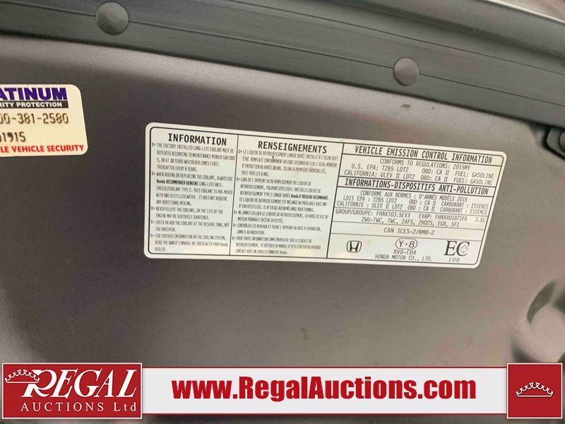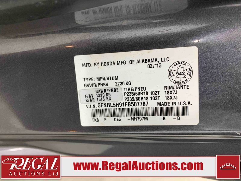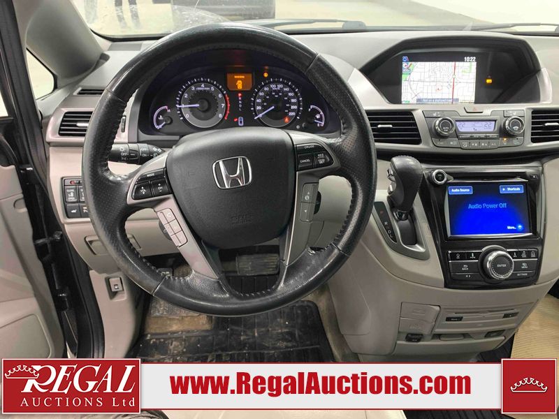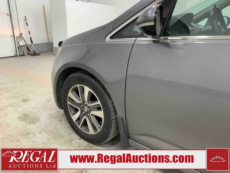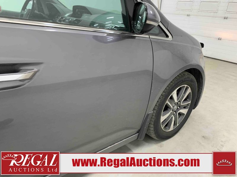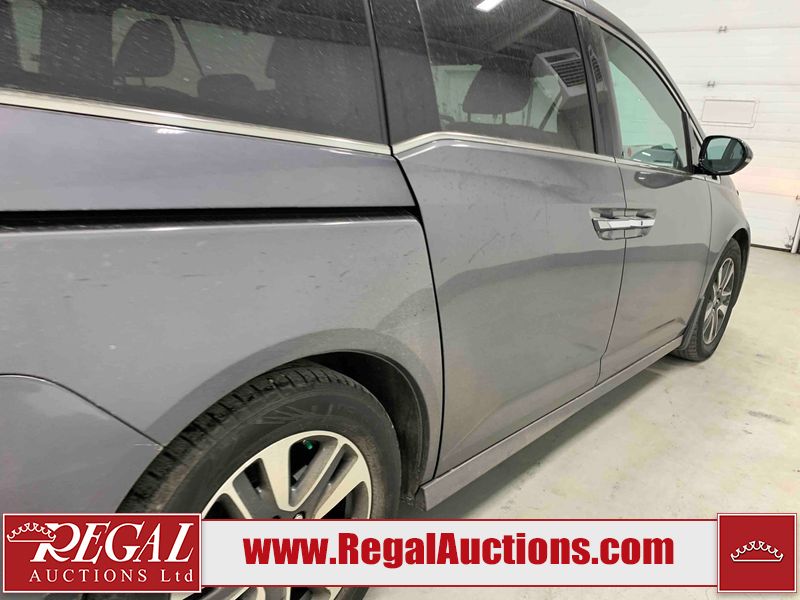 This 2015 HONDA ODYSSEY TOURING SPORTS VAN is powered by a 3.5L V6 gasoline engine and an automatic transmission. The van has seats for 8 people. The mileage is average considering the van's age. The vehicle has high-value options including a sunroof, leather upholstery, power/heated seats, a DVD Player, navigation, and a backup camera. The body looks to be in good condition overall. There are scratches on the rear bumper. There are very minor chips in many areas around the body. There are very minor scratches in many areas around the body. The interior looks to be in good condition overall. The windshield is damaged. All of the tires are nearly bald and should be replaced. This van is being sold by an automotive broker. Regal Auctions Ltd. makes no guarantee or warranty, either express or implied, with respect to the data provided in this report. The information has been provided from the consignor and from sources generally believed to be reliable, however the accuracy of this information cannot be guaranteed by Regal Auctions.