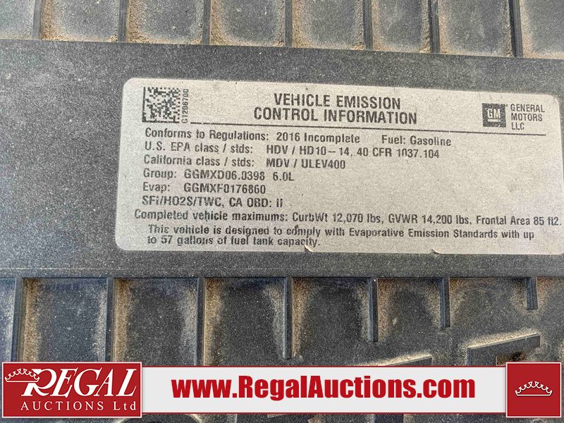 This 2016 GMC SAVANA 2 DR CUBE VAN is powered by a 6.0 liter 8-cylinder gasoline engine and an automatic transmission. The van has seats for 2 people. The van has low mileage for its age. The vehicle does not have power windows or power locks. The body looks to be in good condition overall. There are chips on the front bumper, hood, and left front fender. There are scratches on the front bumper. There are chips in a few areas around the body. The interior looks to be in good condition overall. The windshield looks to be in good condition. All of the tires have lots of tread remaining. This van is being sold by the fleet department of a corporation or government body. The vehicle will be sold with the following declarations: Fleet Vehicle (See Footnote 1). Footnotes: 1) This vehicle is a commercially owned work vehicle. Regal Auctions Ltd. makes no guarantee or warranty, either express or implied, with respect to the data provided in this report. The information has been provided from the consignor and from sources generally believed to be reliable, however the accuracy of this information cannot be guaranteed by Regal Auctions.